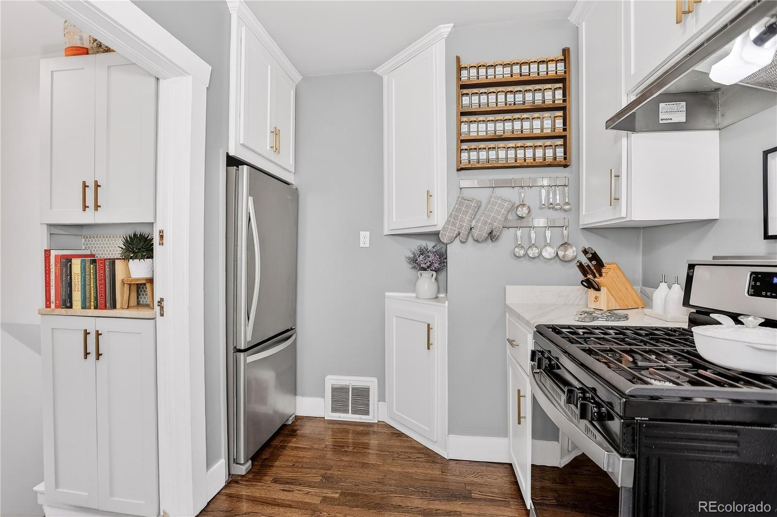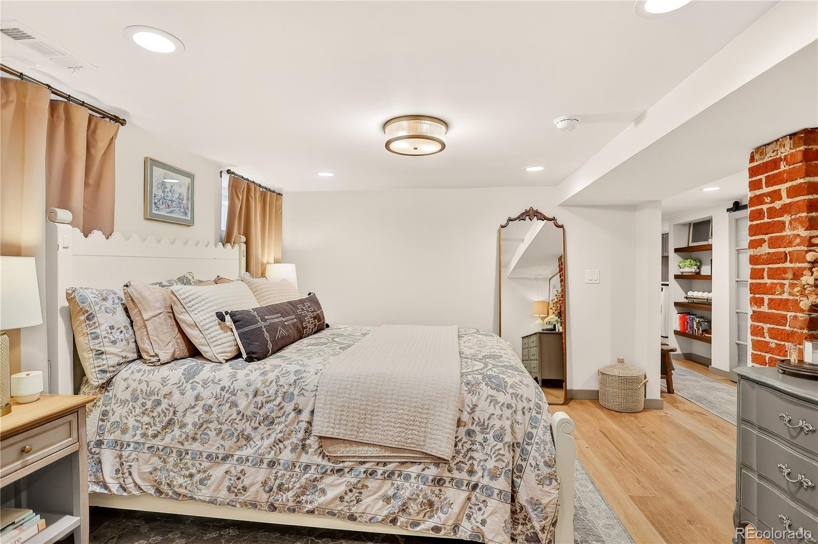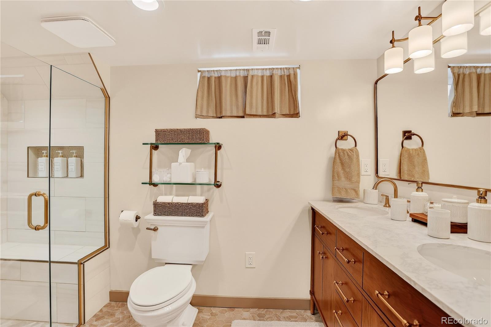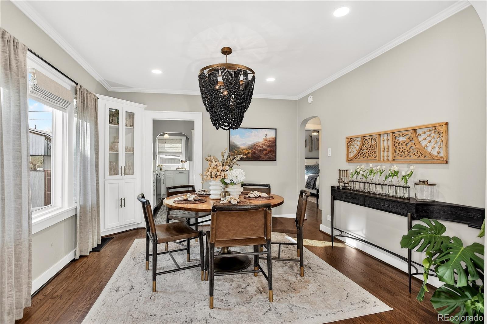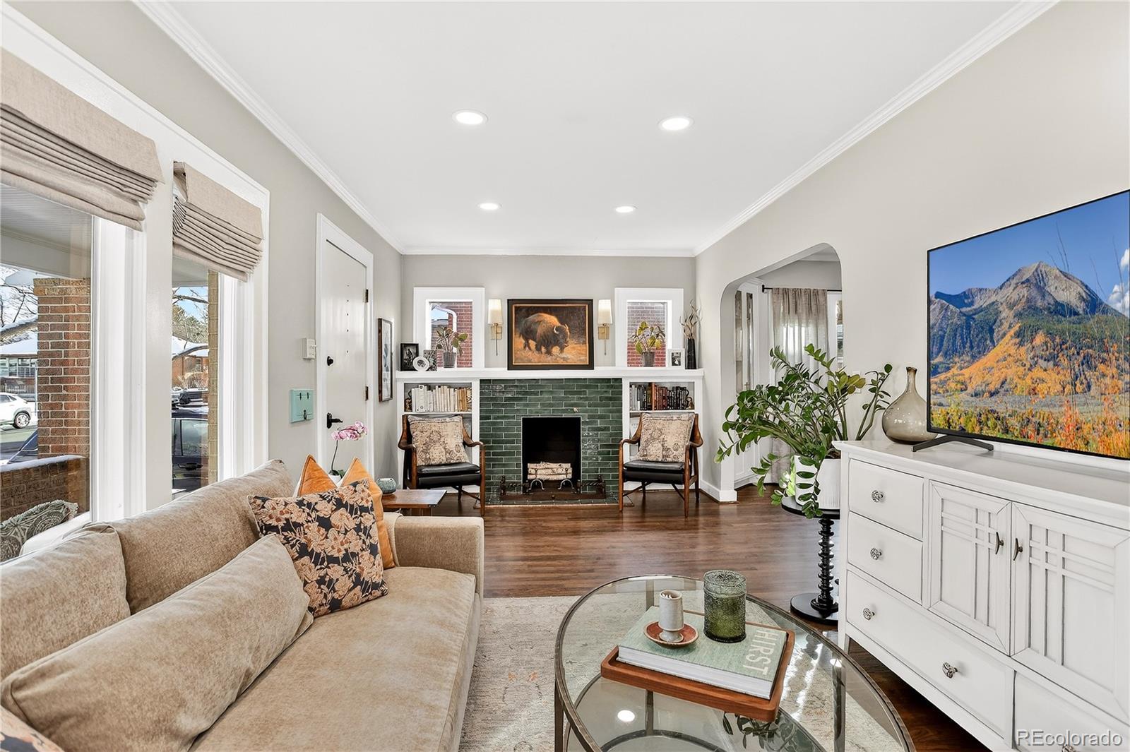 Renovated 1928 Craftsman in Denver’s iconic Platt Park neighborhood, just steps from the boutiques, restaurants, and amenities of South Pearl Street. This expertly remodeled bungalow blends historic charm with modern functionality and abundant natural light. Interior features include refinished hardwood floors, dimmable can lighting, and updated kitchen and bathrooms with designer-level finishes. The remodeled kitchen offers Cambria Brittanicca Warm quartz countertops, gas range, updated lighting, modern hardware, and new sink and faucet. Built-ins flank the formal dining room, creating a seamless connection between the living space and kitchen, ideal for everyday living and entertaining. The renovated main-level bathroom includes a new tub, toilet, and designer vanity and serves two bedrooms, or a bedroom plus office/media/flex space. New hardwood stairs lead to a finished basement with two additional (non-conforming) bedrooms, including a private lower-level primary retreat. The primary suite features a walk-in closet with ELFA system, custom laundry area with walnut open shelving, quartz countertops, porcelain farmhouse sink, and custom cabinetry. The primary bathroom includes a dual vanity and walk-in shower with Delta fixtures and high-end porcelain tile. Double doors open to a nursery or en-suite office. Additional upgrades include new windows and window treatments, central heating and air, new furnace, new insulation, updated exterior trim paint, and a new garage door. The fully fenced, low-maintenance backyard features custom hardscaping, dining area, fire pit, and string lighting, perfect for Colorado living. Convenient access to Light Rail, downtown, and DTC completes this exceptional home.