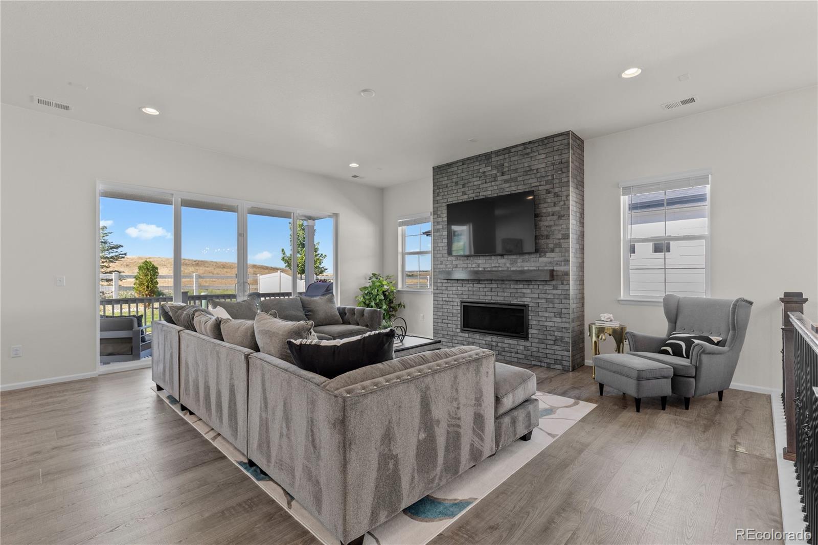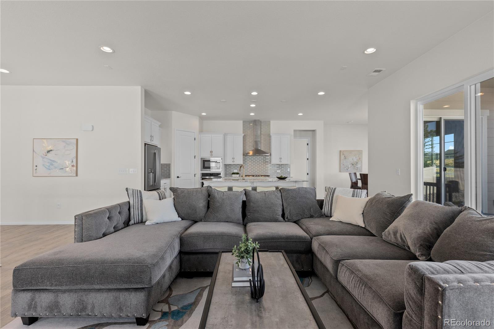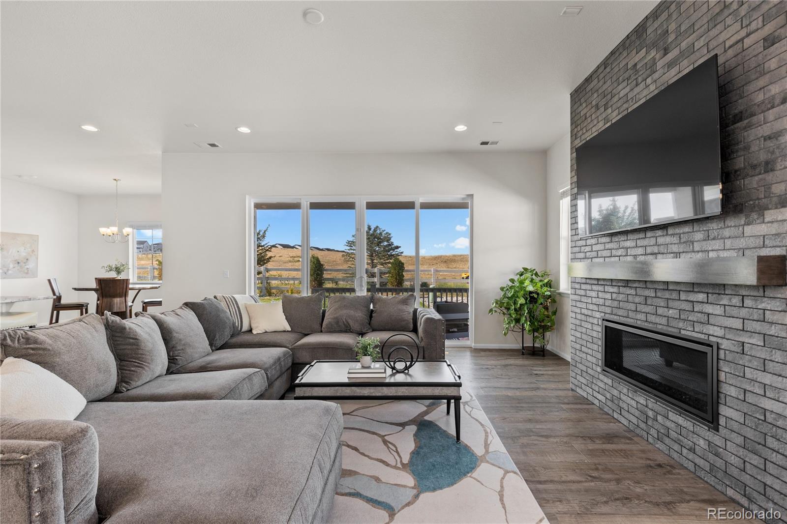 Set within the scenic enclave of Stone Creek Ranch, this 2022 ranch-style home captures sweeping views of Colorado’s rolling hills and offers a sophisticated take on modern, main-floor living. Expansive windows bathe the main level in natural light, creating a warm and welcoming atmosphere equally suited for quiet mornings and effortless entertaining. The chef’s kitchen is the true centerpiece, featuring an oversized island, timeless subway tile backsplash, stainless steel appliances, and a walk-in pantry. The space flows seamlessly into the dining area and great room, where a sleek fireplace provides a stylish focal point. Sliding glass doors invite indoor-outdoor living and frame the surrounding landscape. The primary suite serves as a serene retreat with peaceful views, a spa-inspired bathroom, and a generous walk-in closet. The finished lower level expands the home’s versatility, offering a wet bar, media area, and flexible spaces ideal for guests, a home gym, or creative pursuits. Additional highlights include a three-car garage, solar panels, and thoughtful designer finishes throughout. Residents also enjoy access to outstanding community amenities, including a pool, clubhouse, parks, and trails. This exceptional home delivers modern comfort, functionality, and outstanding value—main-floor living at its finest.