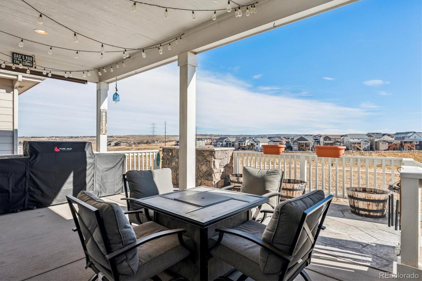 Why wait on new construction when you can own this nearly new “Next Gen” ranch home? It includes a 3-car garage, backing to open space in the popular Sterling Ranch community of Littleton. This beautiful home includes over $150,000 in upgrades and options! This spacious 5 bed/5 bath home offers an open, bright floor plan with large windows throughout. The gourmet kitchen is perfect for entertaining with a large island, stainless appliances, gas cooktop, double ovens, granite countertops, and abundant cabinet and counter space. The main level features a private primary suite with a 5-piece bath and walk-in closet, plus an additional bedroom with its own full bath—ideal for guests or a home office. What truly sets this home apart is the Next Gen suite: a second primary bedroom with its own kitchenette, private bath, and large walk-in closet. Perfect for multi-generational living, extended guests, or added flexibility and privacy. The finished basement offers two more bedrooms, a full bath, a large family room, and a huge bonus room. Its plumbed for a wet bar—ready for your future basement bar or entertainment space. You’ll also love the large storage area for everything else. Step outside to the oversized covered deck with a fire pit and professionally landscaped yard, and enjoy Colorado days and nights with open space privacy behind you. Close to Sterling Ranch amenities including weekly food trucks, community center, pool, parks, trails, clubhouse, pickleball, brew pub, coffee shop, dentist, UCHealth primary/urgent care, and concerts. Fully finished and move-in ready—schedule your showing today!