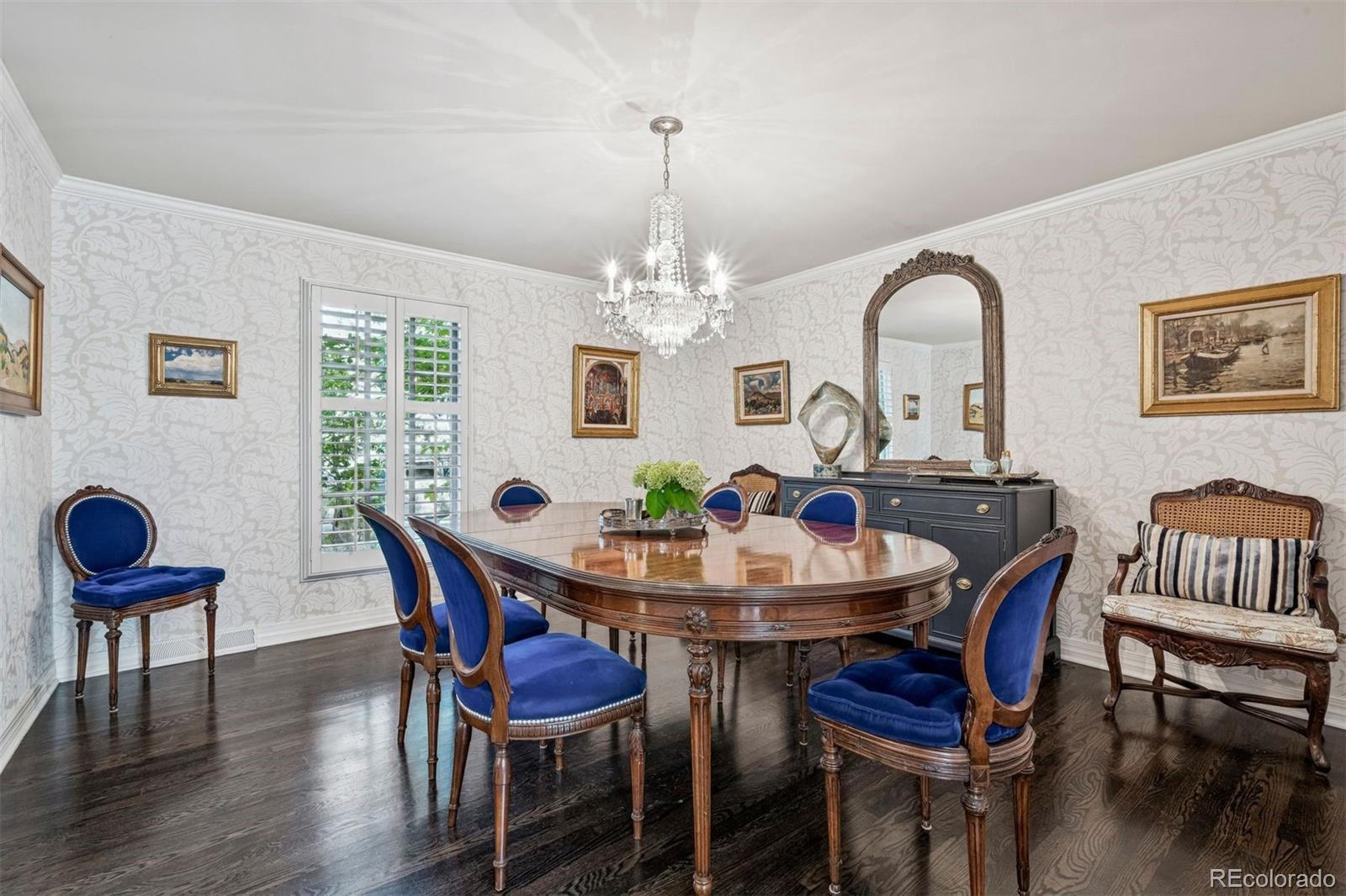 Set on a private ½ acre lot in the heart of Cherry Hills Village, this 1972 brick Georgian home is warm, inviting and traditional. It has been well loved and beautifully maintained by the same family for the last 22 years and is now ready to welcome its next owner. The eat-in kitchen, renovated 12 years ago, is fully equipped with quartzite counters, Thermador refrigerator/freezer, 6 burner stovetop, double ovens and a built-in Miele offee maker. A bar area is topped with granite counter, ice maker, under counter wine fridge + full size wine fridge, small sink – and is certainly everyone’s favorite gathering spot. The paneled family room features surround sound through built-in speakers and bookshelves, gas fireplace and French doors leading to the covered patio. Its large windows frame views of the lush backyard… a peaceful retreat with mature landscaping and room to play, grill, garden, entertain and enjoy the hot tub. And the yard is newly fenced! The upstairs has just been freshly carpeted and offers sleeping space for everyone with 4 bedrooms and 3 baths. The primary suite is spacious and, its bathroom was updated 12 years ago and the closet is particularly fantastic. In the basement, the rec room, craft room (with big closet) and full bath are great overflow spaces when needed. And finally - the front walkway is heated. Ideally located within the highly-rated Cherry Hills Village Elementary and Cherry Creek High School districts, this home combines comfort, charm and an exceptional location. (Interior photos will be posted by Saturday)