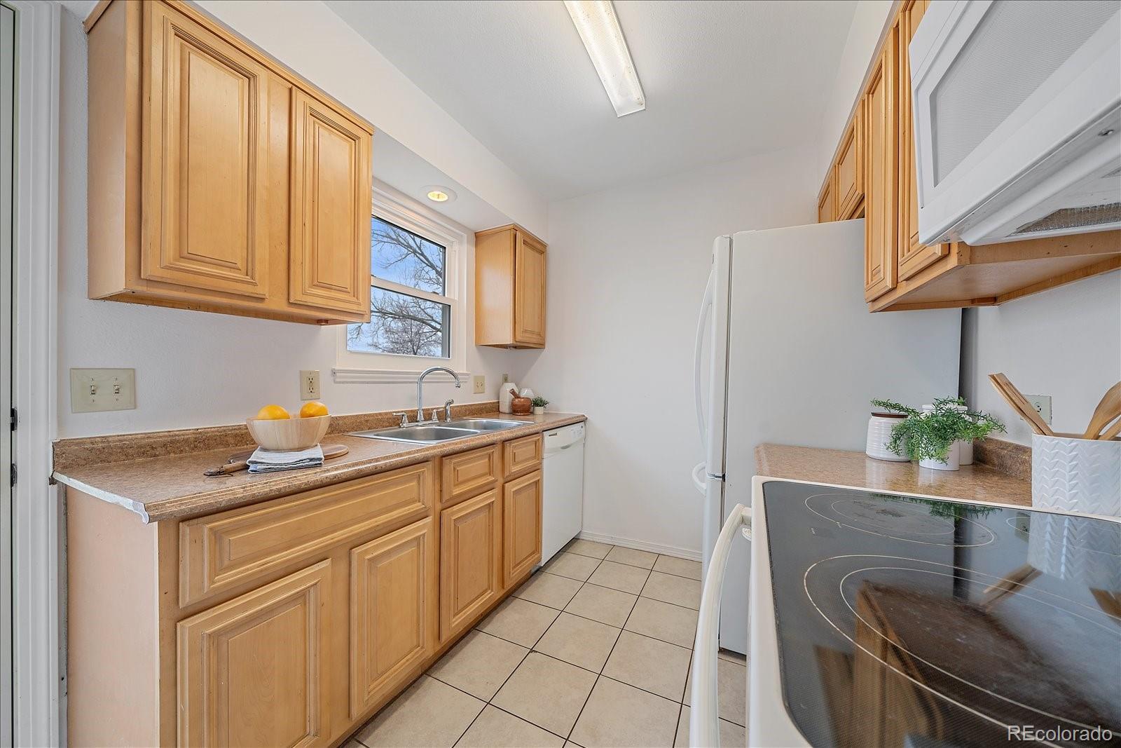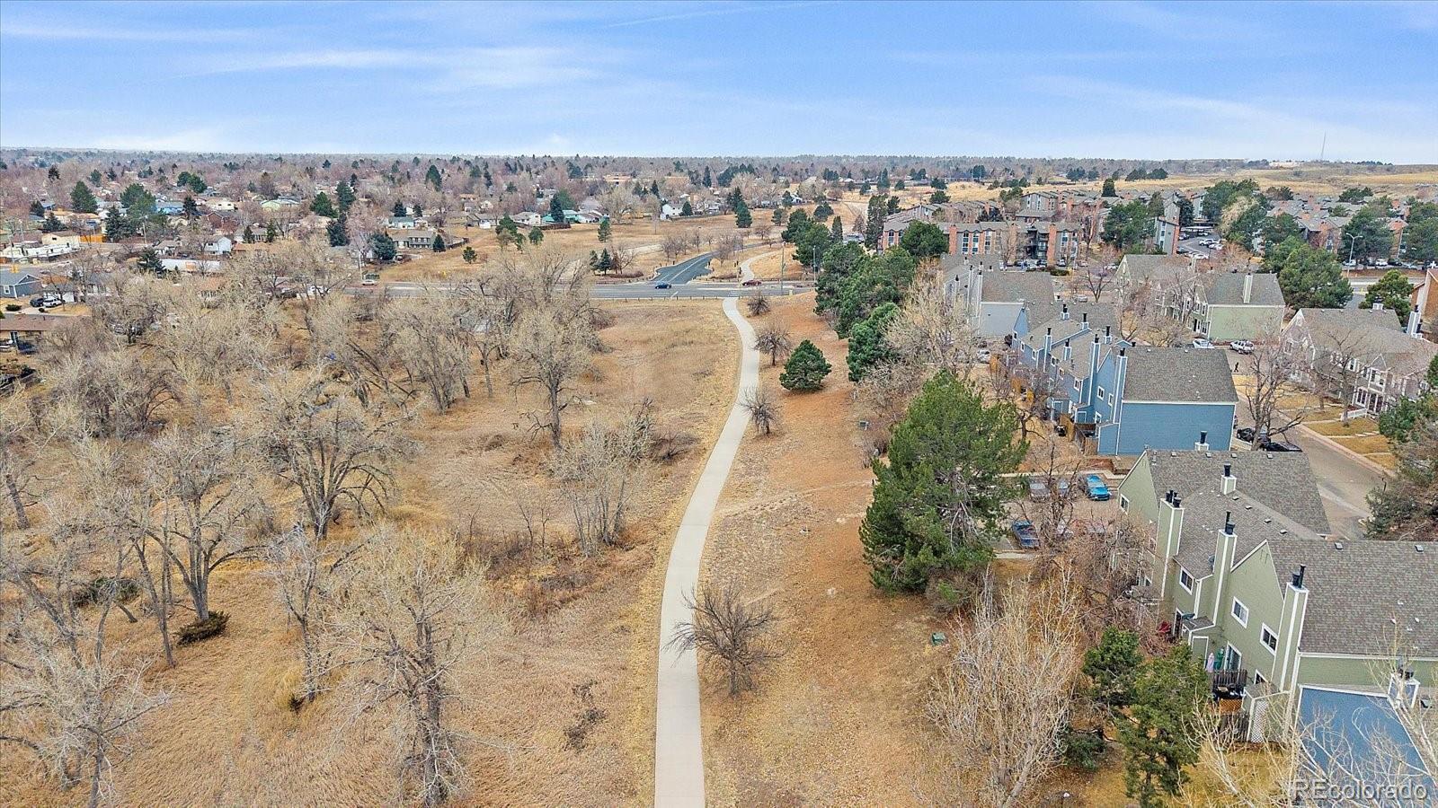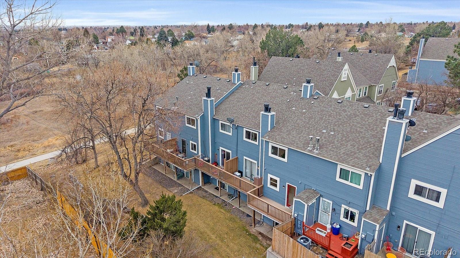 Rare opportunity in Hearthstone! Only 6 units in the entire complex feature a walkout basement, making this unique townhome truly stand out with an additional 500 square feet. Move-in ready with many updates: new windows & exterior doors, new LVP flooring on the main level, new carpet in the bedrooms, stairs and basement, plus fresh interior paint throughout. The south-facing family room is filled with natural light and showcases a cozy gas fireplace with a striking stone accent wall. The dining area has new LVP and a ceiling fan. The kitchen includes all appliances (refrigerator, oven, microwave, and dishwasher) along with a pantry closet for added storage. Step outside to the composite deck—perfect for morning coffee or evening relaxation. A powder bath completes the main level. Upstairs are two bedrooms, including a spacious primary suite with a private vanity and walk-in closet. The full bath features an updated vanity. The secondary bedroom has a new window, fresh paint, new carpet and a large closet. The walkout basement offers a large flex space with new carpet and recessed lighting—ideal for a second living area, home office, or workout space. The unfinished mechanical room includes two washer and dryer sets (both included!) and a sliding glass door leading to the walkout patio. Additional highlights include attic re-insulation and a Nest thermostat. One reserved parking space and ample visitor parking. The home backs to a greenbelt with common space in front, offering both privacy and openness. Unbeatable location with quick access to Iliff & I-225 and an easy commute to DIA. Walking distance to bus stops and just 5 minutes to the Iliff Station for the H-R Lines. Step outside to access the Cherry Creek Spillway Trail for miles of walking, running, and biking, connecting north to Horseshoe Park and south to Olympic Park and Wheel Park. Close to restaurants, shopping and countless amenities along Iliff. Check out the 3D tour and floor plans with the photos!