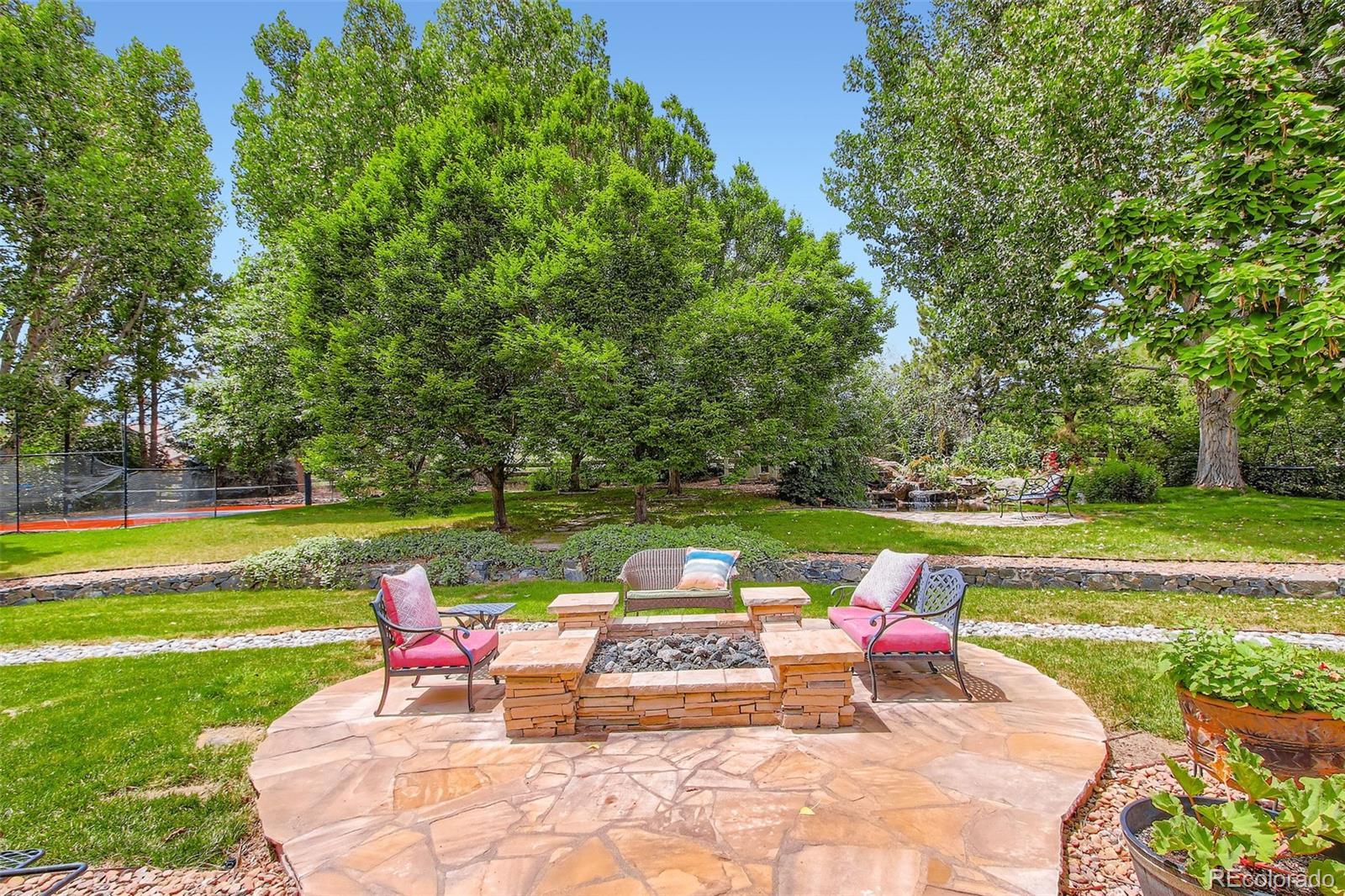Fire Pit, Gas Valve, Lighting, Private Yard, Rain Gutters, Tennis Court(s), Water Feature