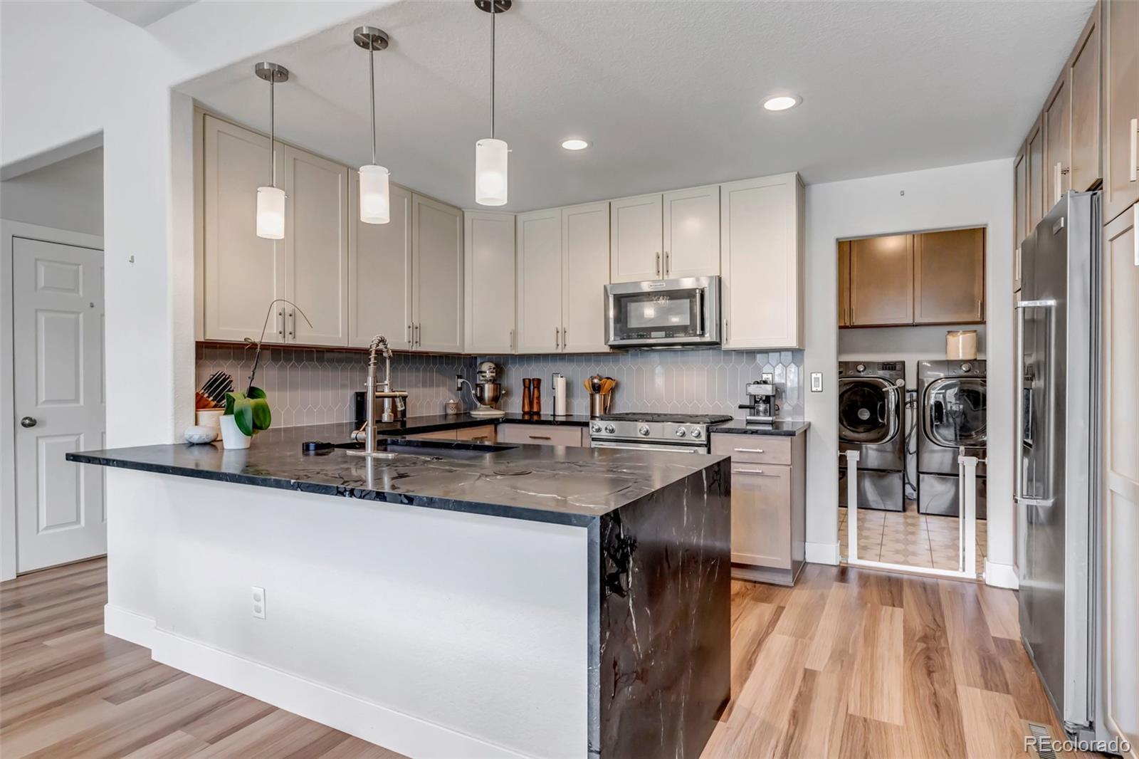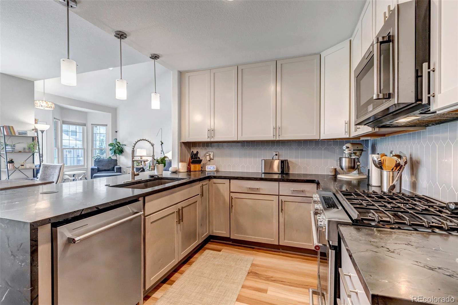 Fully Renovated Townhome with Designer Finishes & Highlands Ranch Rec Center Access Welcome to this beautifully updated, modern townhome that truly stands out from the rest. Every detail has been thoughtfully renovated, creating a move-in-ready home that blends style, function, and comfort. The main floor features an open-concept layout perfect for everyday living and entertaining. The show-stopping kitchen has been highly upgraded with elegant marble countertops featuring a waterfall edge, stainless steel appliances, and upgraded cabinetry that provides both beauty and storage. Just off the kitchen, you’ll find a fully updated laundry room with direct access to the attached two-car garage for ultimate convenience. The main level also includes a stylishly appointed half bath. Upstairs, the former loft has been professionally converted into a third bedroom, bringing the total to three bedrooms on the upper level, including a spacious primary suite complete with an upgraded en-suite bathroom. The thoughtful layout provides privacy and functionality. The finished basement expands your living space even further, offering a large recreational room perfect for movie nights, workouts, or a playroom, along with an additional bedroom and full bathroom—ideal for guests. Located in a highly desirable community close to shopping, dining, trails, and top amenities, this home also includes access to the sought-after Highlands Ranch recreation centers—an incredible bonus offering pools, fitness facilities, and community activities year-round. You will not find another townhome in this community that has been updated and renovated to this level. This is modern living at its finest—don’t miss your opportunity to make it yours.