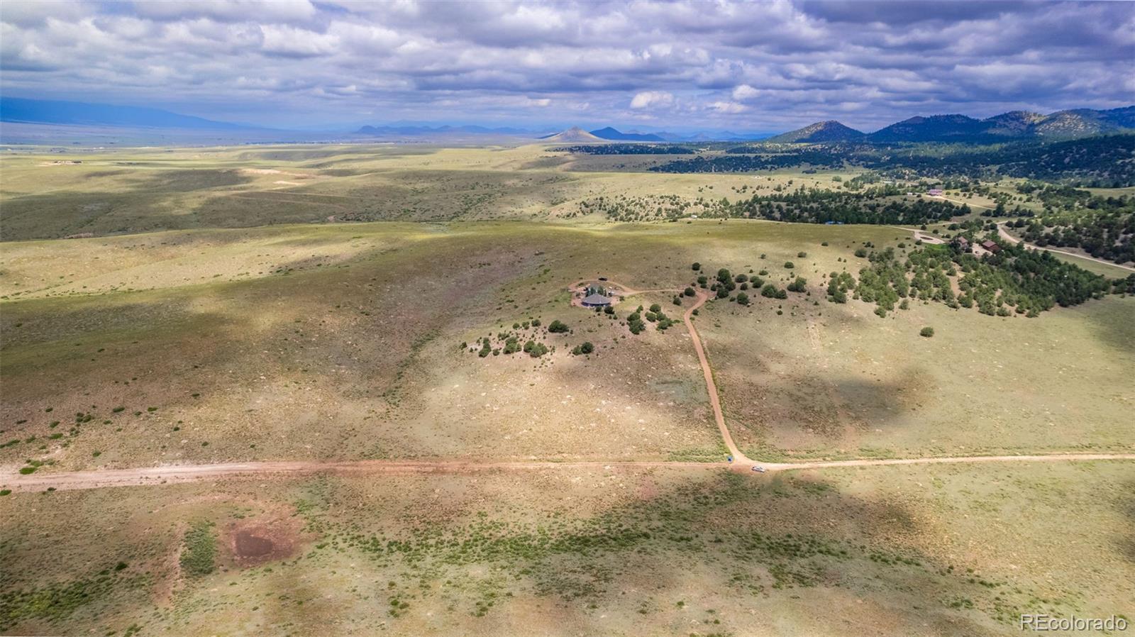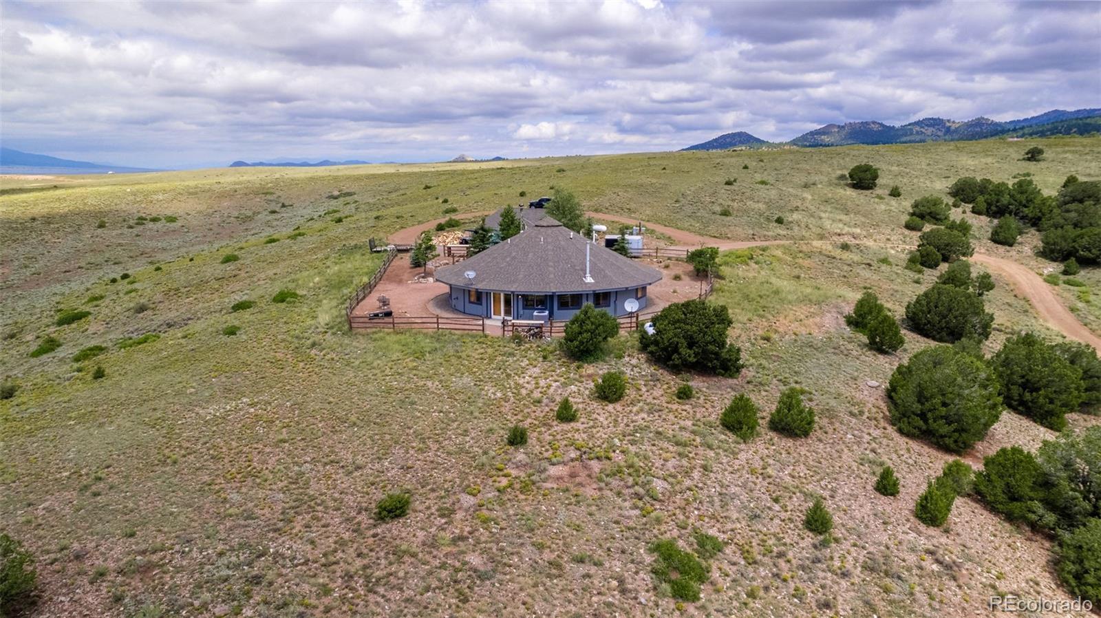 *Luxurious Mountain Retreat in Westcliffe, Colorado* Discover your dream home with panoramic views of the Sangre de Cristo Mountains outside of Westcliffe. This fully renovated, 2,053 square foot round house combines rustic charm with modern comforts on 35 acres. Step inside and be greeted by the rich warmth of custom beetle kill pine window shutters and woodwork, which lends a unique and inviting character to every room. The spacious living area features a cozy wood-burning fireplace, creating an ideal setting for relaxing evenings or entertaining guests. Fireplace has exclusively burned Aspen wood. The heart of the home is its custom kitchen, designed for both function and style. Equipped with double ovens and an induction cooktop, it’s a chef’s dream. A generous walk-in pantry provides ample storage and power outlets, making meal prep and organization a breeze. The home boasts three generously sized bedrooms and 2.5 beautifully appointed bathrooms. The master suite and one additional bathroom feature luxurious walk-in tile showers. Comfort is paramount with central air conditioning and a newer furnace ensuring a pleasant environment year-round. The tankless Rinnai water heater will provide unlimited hot water. A whole-house generator will keep the home running. Two propane tanks ensure reliable and efficient heating for those cooler mountain nights, and there is a water filtration system. Outside, there is an oversized, detached two car garage. No covenants or HOA.