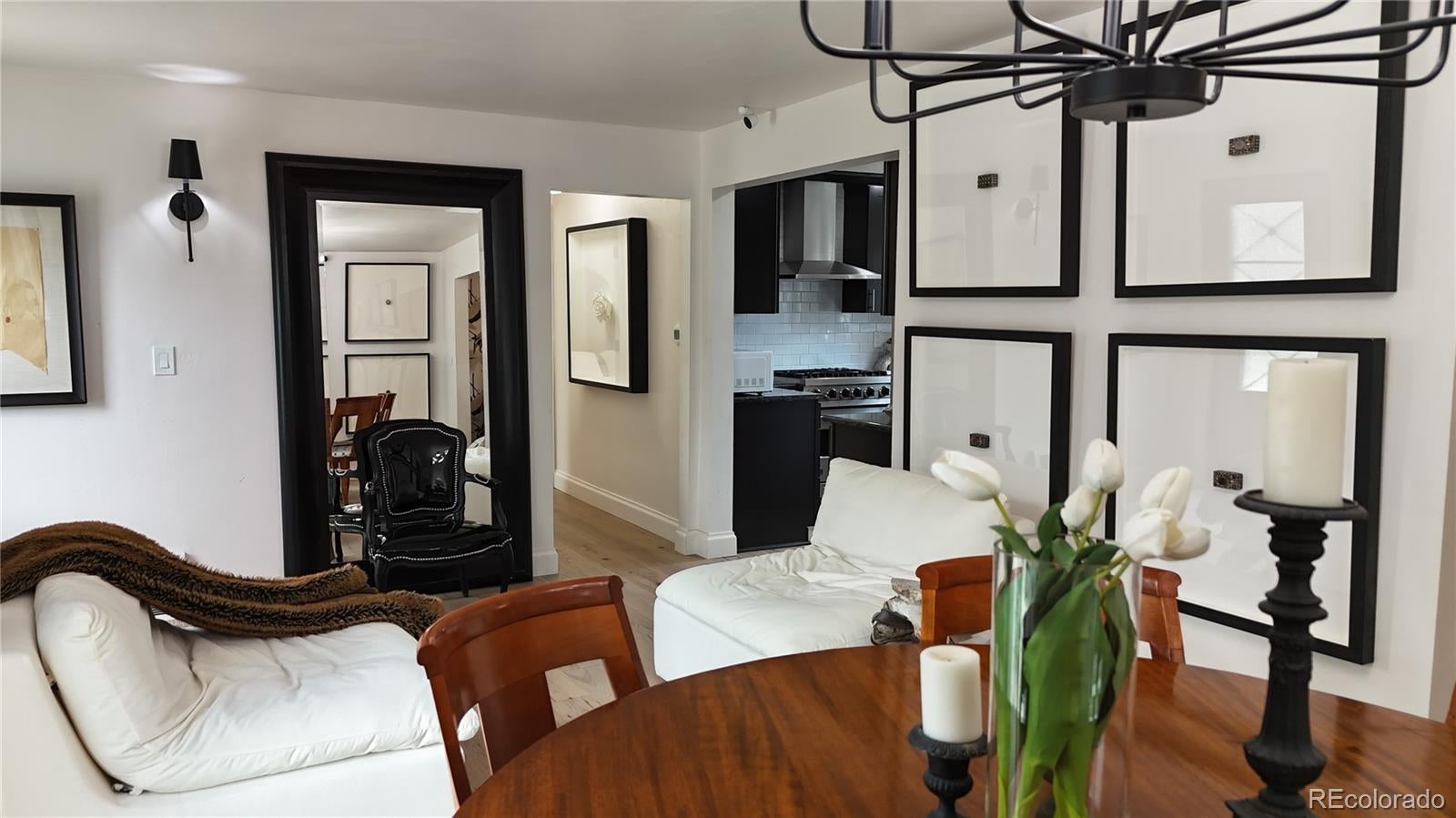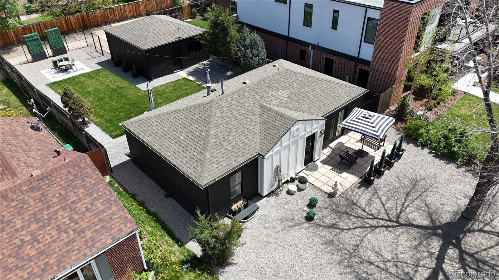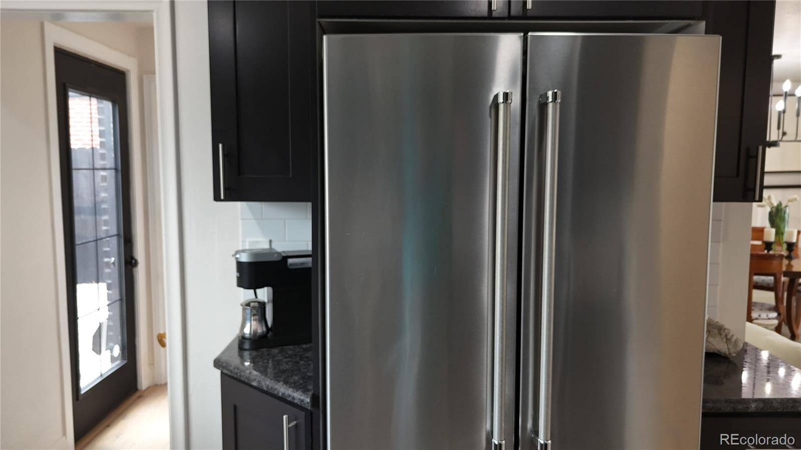 Premier neighborhood with a small handful of homes for sale ranging from $2,299,000 modern construction to $215,000 condo built in 1948. The Montclair, Denver neighborhood is on its way up in value and perception with a 12.7% increase in home prices year-after-year. Surrounded by multi-million dollar homes this gem has been wholly remodeled, perfectly sized for single/couple, with a large yard large enough to expand if desired. Live in the existing portion and plan your expansion to be 4x larger in a neighborhood that will support the value. Convenient to Cherry Creek North and near Stanley British Primary School, Lowry Town Center and Clark’s Market, with immediate access to 6th Avenue and Monaco Parkway to take you anywhere in town you want. This block is particularly private in that the residences along Monaco feature lots that stretch to Magnolia St. The view from Magnolia is of beautiful brick garden and wrought iron walls. Mature trees shade this residential lot. 2 car upgraded garage. Enter the Republic door by the fine maker Knockety. The alder knotted flooring reflects the light from the black finished aluminum French grid windows and patio doors. Configure the living room and dining room to suit your preferences. Currently the dining room is used as an in-home office for this owner’s work-at-home needs, but the engaging floorplan allows different thought and purpose. The primary suite in this revitalized home stretches from the front of the home to back and features a French door that opens to the spacious back yard. En suite bathroom with oversized step-in shower with seating and French Grid shower panel, chrome fixtures and marble vanity top. The classic herringbone carpet in creme and grey is the perfect background palette. The closet features shoe shelves and industrial pipe hanging fixtures. The well-designed kitchen features black granite, Shaker cabinets, GM Monogram dishwasher, Viking gas range and Kitchenaid French door refrigerator.