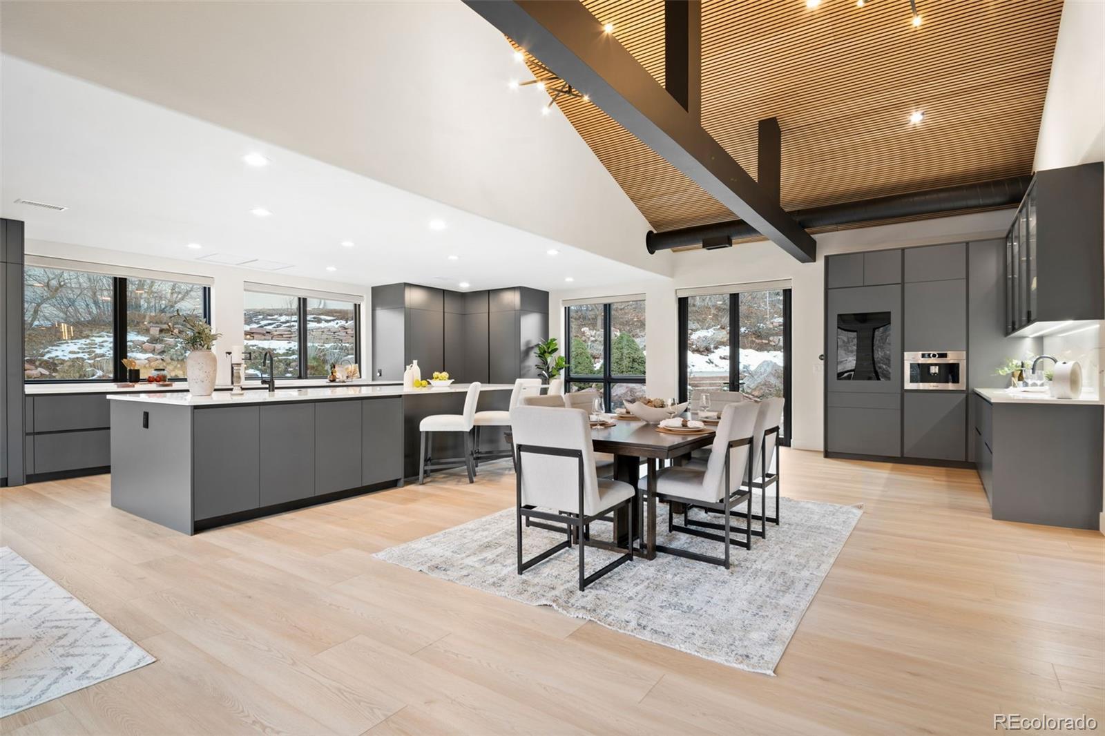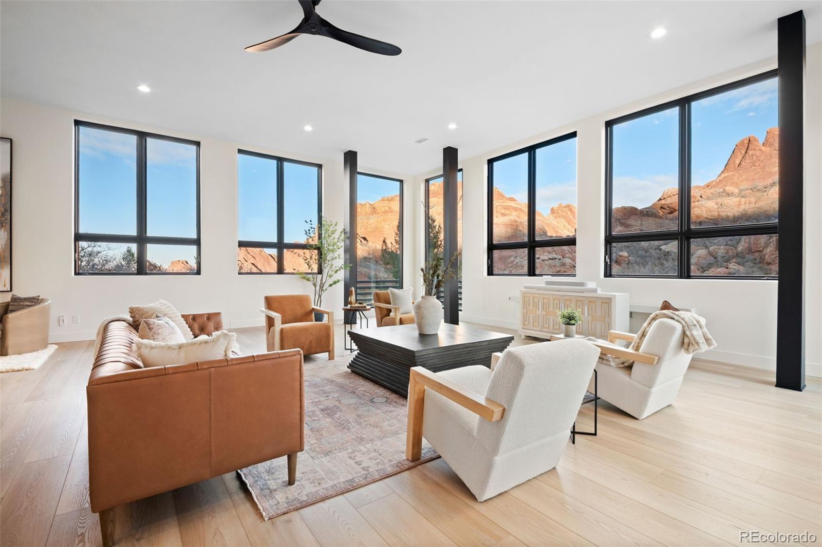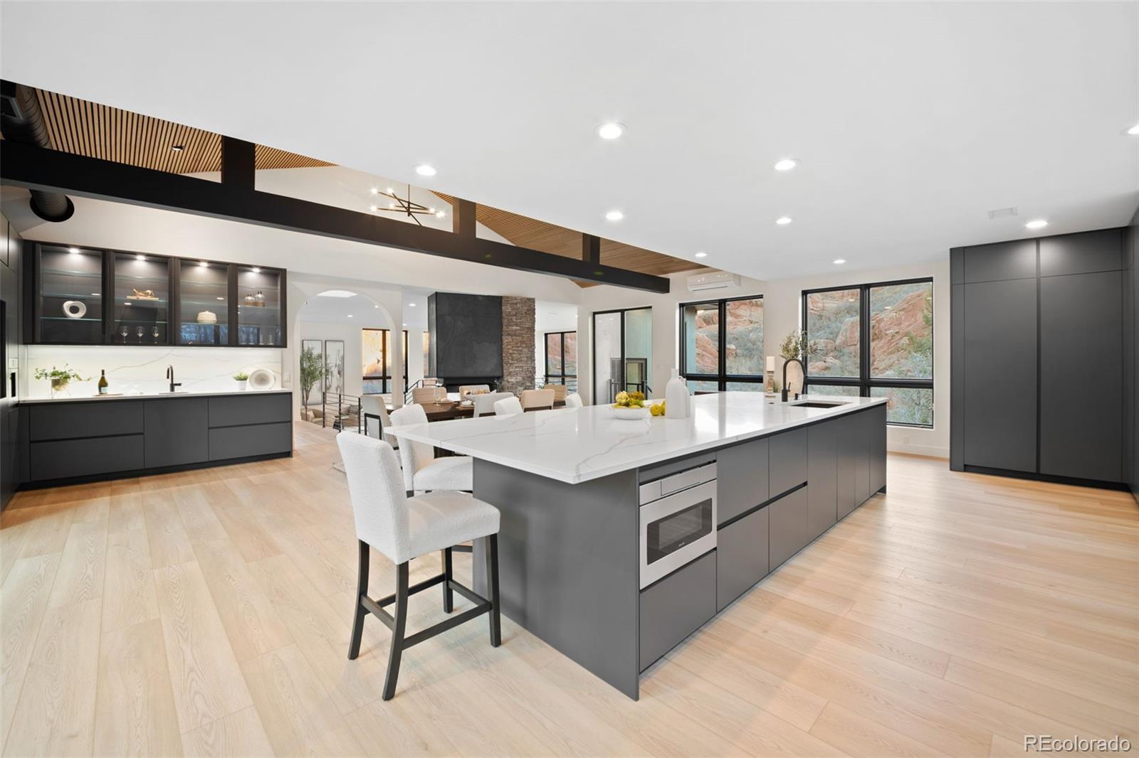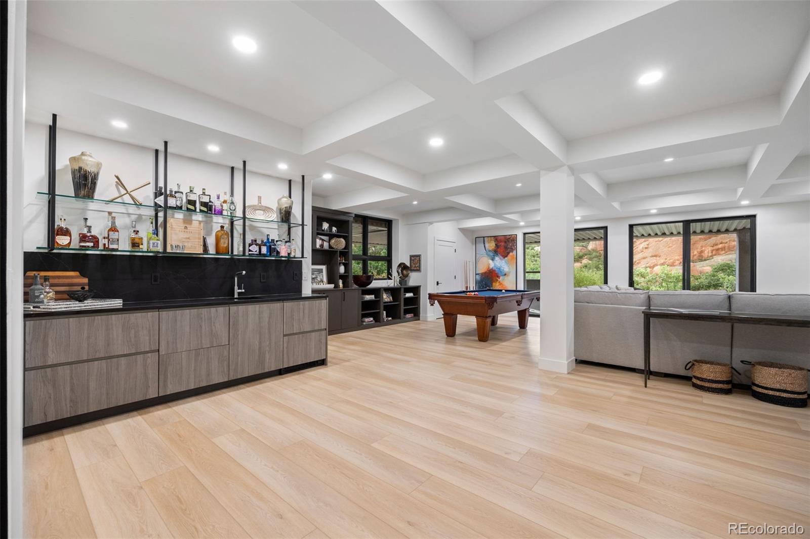 Wake up each morning surrounded by the iconic red rock formations and protected open space of Roxborough Park. This mountain modern residence has been fully remodeled from 2022–2024, with no corner left untouched and every finish selected to the highest standard. Thoughtfully reimagined from top to bottom, the home offers a refined balance of architectural drama, modern efficiency, and connection to nature. Walls of glass and expansive decks frame views of Pike National Forest and Roxborough State Park, while vaulted ceilings and a striking four-sided fireplace anchor the main living spaces. The chef’s kitchen is both bold and functional, featuring a statement 14-foot island, induction cooking with concealed venting, integrated appliances, pot filler, full-height pantry walls, and a beverage center with wine storage and built-in espresso. The walkout lower level continues the elevated design with a temperature-controlled wine cellar, coffered ceilings, and a designer wet bar. Spa-inspired baths, radiant in-floor heating throughout (including the oversized garage with EV charging), thermal-break windows and doors, heated driveway, cascading water feature, and resort-style fire pit complete this exceptional offering. Comparable in quality to the estates of Ravenna yet offered at a more approachable value, this home delivers a rare Roxborough lifestyle—luxury living with immediate access to miles of trails and unforgettable Colorado scenery.