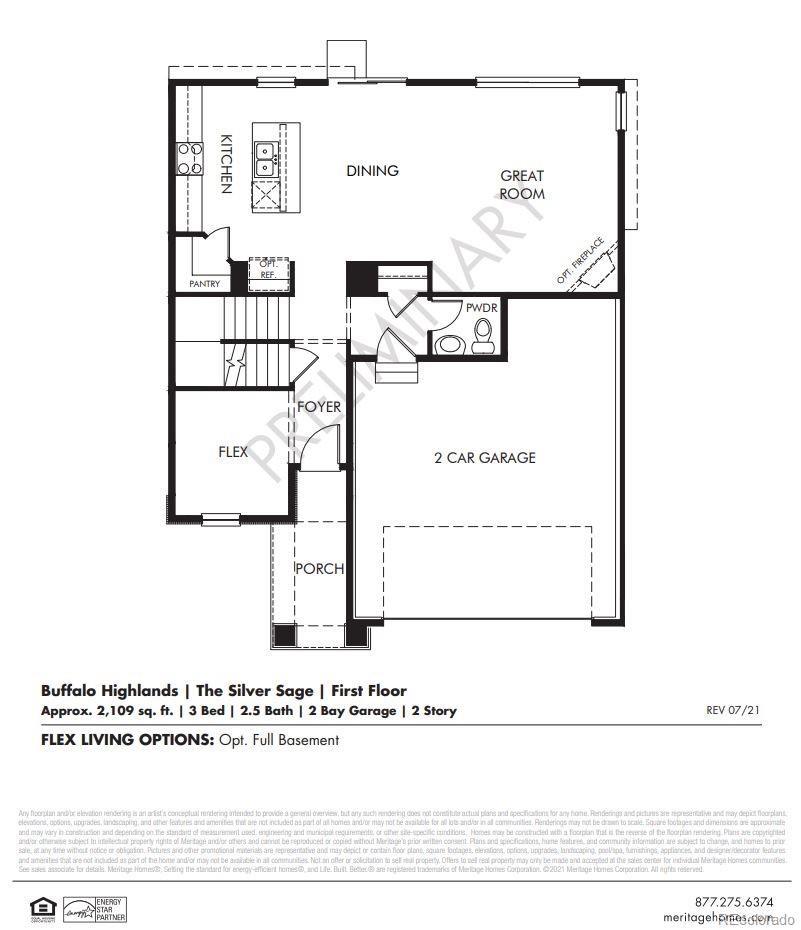 Walkout Basement for future customization and storage!! Open concept kitchen with quartz countertops and espresso cabinets! Welcome to the Silversage — a stylish two-story home with 2,109 sq. ft. of open-concept living. Featuring a spacious layout, generous primary suite with walk-in closet, two secondary bedrooms, and an upper-level laundry for convenience. Complete with a two-bay garage, this home is designed for modern comfort and functionality. The Meritage Home difference includes spray-foam insulation, advanced air filtration for year-round comfort and healthier air, and durable cementitious siding known for its strength, fire-resistance, and long-lasting performance. A Whirlpool appliance package, and full home blinds are also included for move-in convenience. Welcome home where every detail is built for comfort, efficiency, and LIFE . BUILT. BETTER. Buffalo Highlands in Commerce City offers scenic trails, quick access to Downtown Denver and DIA, and nearby attractions like Barr Lake and Buffalo Run Golf Course. With easy connectivity via E-470, I-76, and RTD, this community blends convenience and outdoor living. *This home qualifies for special incentives through builder preferred lender for a limited time. Terms and conditions apply. See sales counselor for details!