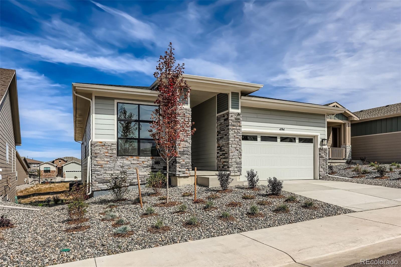 Brand New Toll Brothers Home - Boyd Modern Ranch is Ready Now! Enjoy life in a dynamic 55+ Active Adult Community Experience comfortable one-level living in this multi-functional Boyd plan with a spacious, daylight walkout basement, backing to a greenbelt with native grasses and serene views from the covered deck. A welcoming foyer opens to the expanded great room, where a center-meet sliding glass door and sleek, linear gas fireplace create an inviting space for everyday living or entertaining. Just off the great room, a flexible area is perfect for a reading nook, morning coffee, or casual conversation. French doors offer privacy for the study, making it ideal for work or quiet time. The daylight walkout basement is filled with natural light and offers room to grow—whether you're envisioning a guest bedroom, home gym, or hobby space, the possibilities are wide open. Enjoy designer-curated interior finishes throughout, including a chef’s kitchen with upgraded KitchenAid appliances, a 36" gas cooktop, wall oven, and refrigerator included. The spacious primary suite features a spa-like 5-piece bath with a 6-foot freestanding tub. The extended garage provides ample storage and everyday convenience. Situated in a dynamic 55+ community, residents enjoy resort-style amenities including a clubhouse, courts for tennis and pickleball, seasonal lap pool, year-round hot tub, and fitness center, plus over 13 miles of walking and biking trails. A variety of clubs and social activities support an engaging, connected lifestyle. Limited-time special financing available—contact sales representative for details.