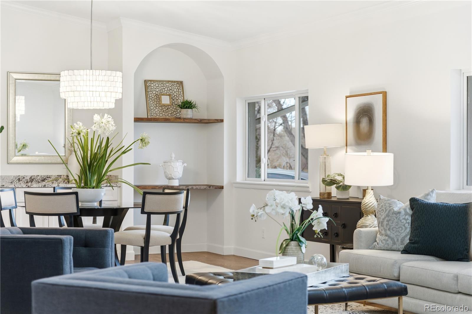 Welcome to 545 S Harrison Lane, a beautifully reimagined Belcaro residence combining mid-century character with a fresh, modern renovation. Tucked on a quiet, tree-lined street just minutes from Cherry Creek, this home lives large with 5 bedrooms, 3.5 bathrooms, multiple living spaces, and an effortless indoor-outdoor flow. Inside, you’ll find warm wood floors, curated designer lighting, and a spacious, open main level that’s ideal for both everyday living and entertaining. The chef’s kitchen anchors the home with quartz counters, a premium appliance brand package, generous storage, and a true gathering island. The sun-filled living room and dining area open to the backyard, creating a natural extension of your living space. The bedroom layout offers flexibility with a serene primary suite with a spa-like bath, and well-appointed secondary bedrooms. Downstairs, a finished lower level adds a second living room/rec space, guest accommodations, fitness area, or playroom—whatever your life stage requires. Outside, mature trees, a private yard, and patio/outdoor kitchen/lounge create a quiet retreat in the heart of the city. From here, you’re minutes to Cherry Creek’s dining and shopping, Washington Park, Bonnie Brae, and an easy commute downtown or to DTC. Belcaro is one of Denver’s most coveted neighborhoods for its estate-style lots, quiet streets, and long-term value. 545 S Harrison Lane delivers the lifestyle buyers come here for—updated, move-in ready, and a desirable location.