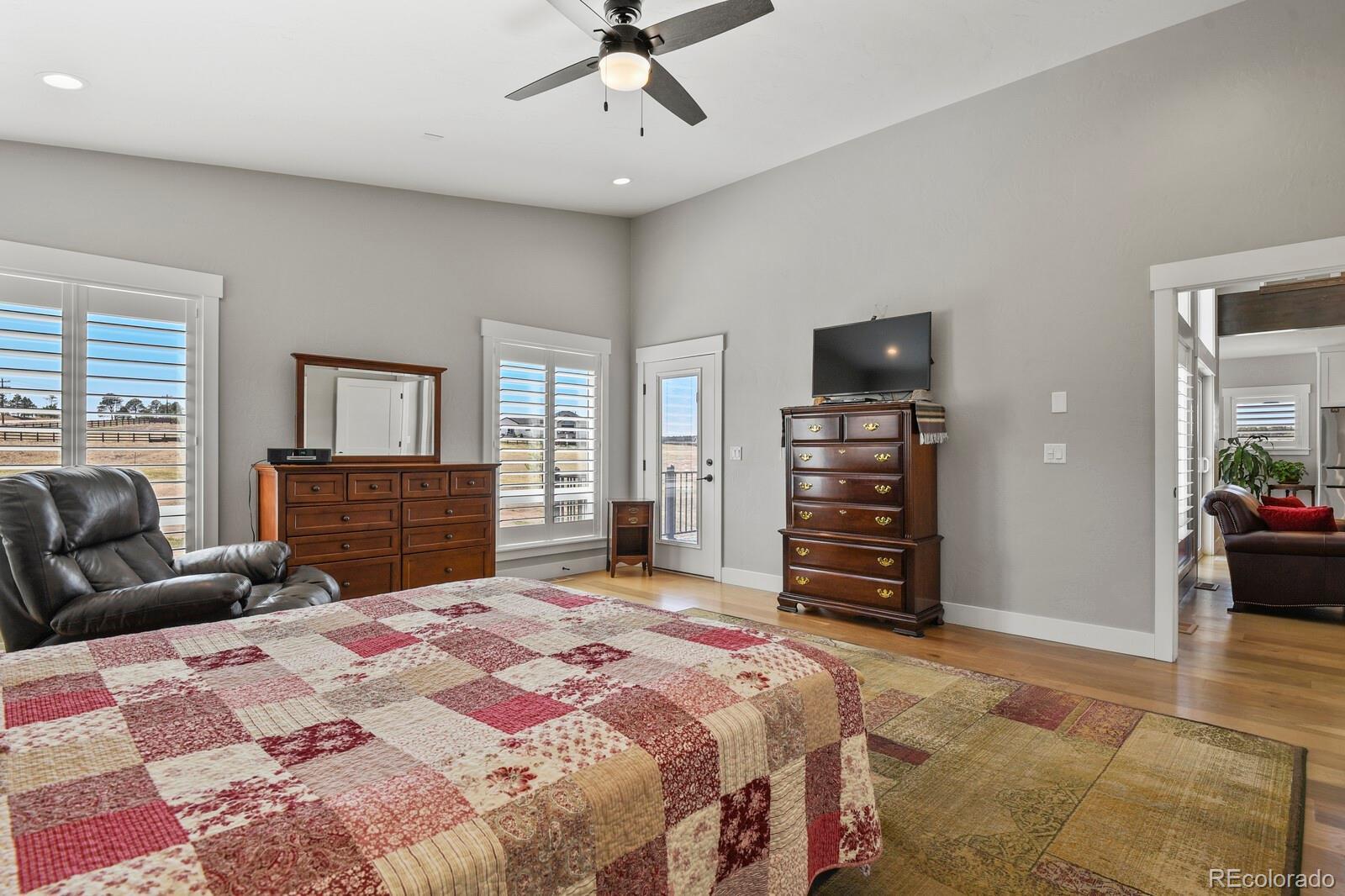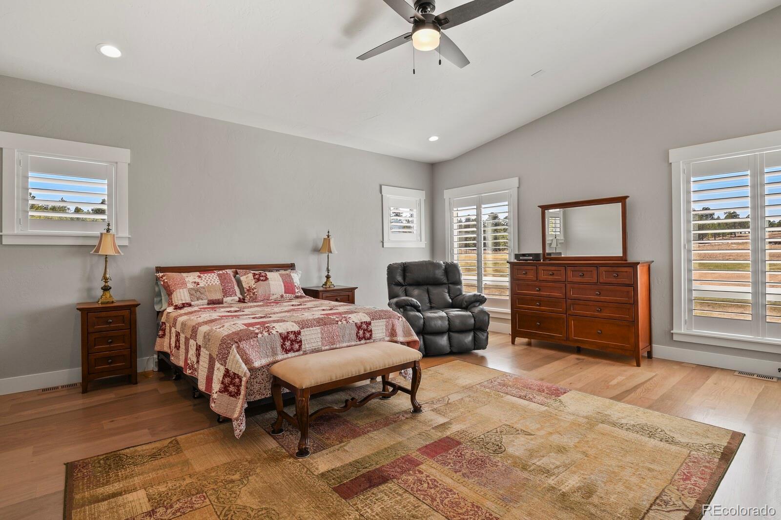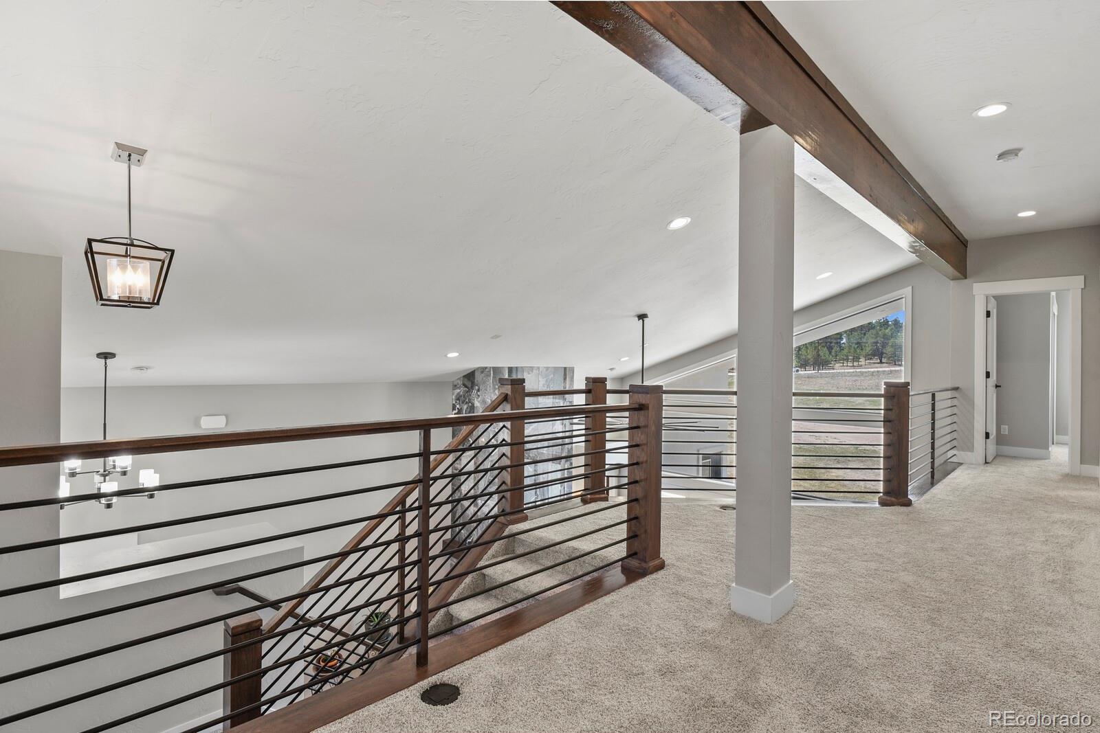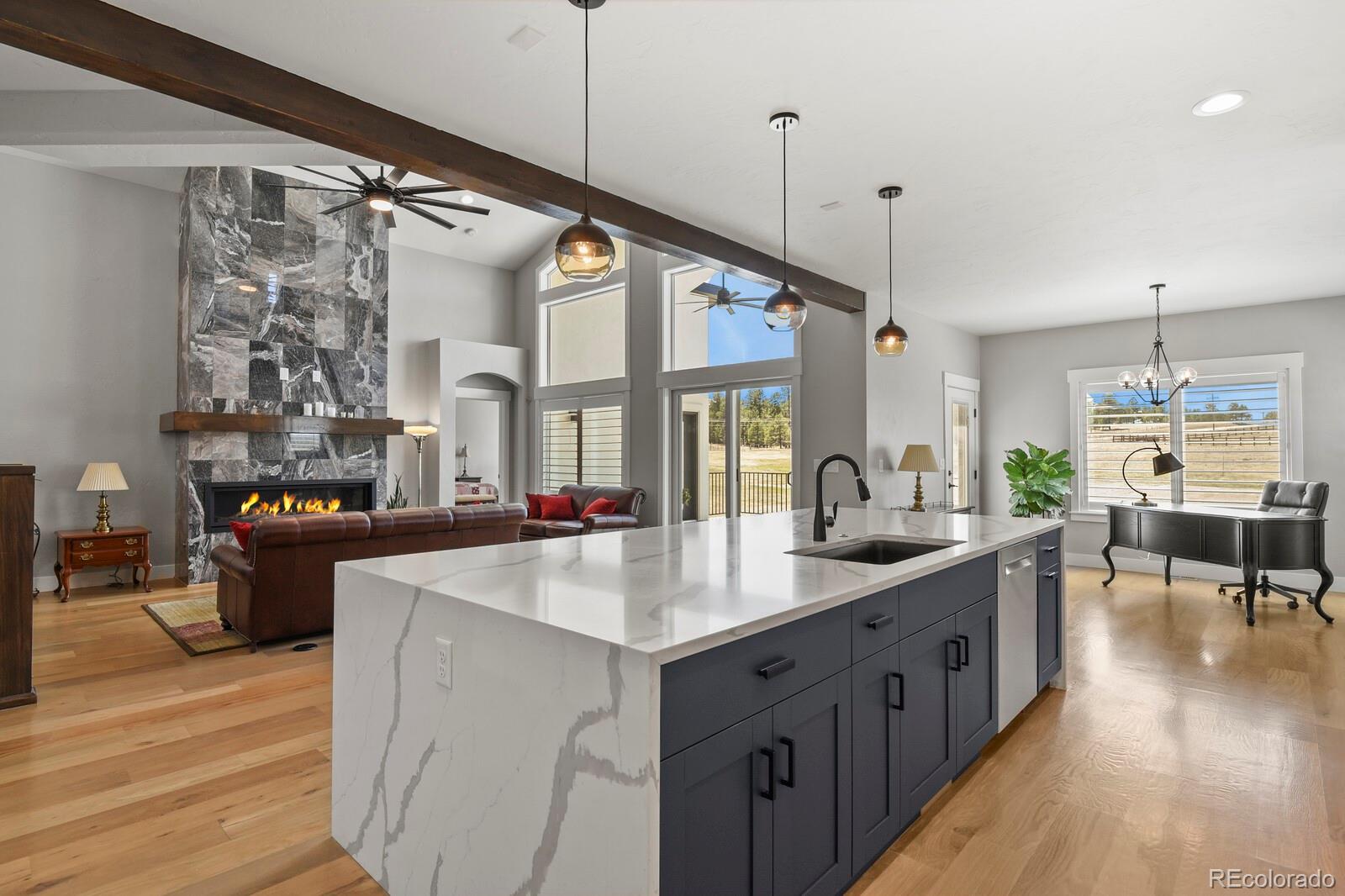 This Black Forest gem provides luxurious living in a peaceful rural setting while remaining very convenient to all of your local amenities. Nestled on 3.5 acres, this 6-bedroom, 5-full bath home is perfect for those ready for plenty of room for everyone to relax, work, and play. The open layout is highlighted by white oak hardwood floors, soaring ceilings, rich wood beams, hand textured walls, 5” base, solid wood doors, and a wall of windows flooding the space with natural light. The gourmet chef’s kitchen features Bosch stainless appliances, a waterfall-edged quartz island, soft-close cabinetry, lighted glass cabinets, tile backsplash, crown molding, and a walk-in pantry that will not disappoint. The Great Room is anchored by a gorgeous linear fireplace, wood mantle, floor-to-ceiling tile, 23' ceilings, and an oversized covered composite deck just outsside, perfect for entertaining. The main floor Master Retreat includes a 5-piece en-suite bath with an enclosed spa-like wet area-soaking tub, shower bench, multiple shower heads, a large walk-in closet, and private access to the covered deck. The main floor also includes an additional bedroom and full bath that makes for a perfect guest room or a home office suite. Upstairs you will find two more bedrooms, a loft perfect for a play room or game room, and a full bath with a double vanity. The Walk-out basement includes a huge recreation room, a second kitchen, a TV/gaming area, a bedroom with en-suite bath, a second bedroom and full bath, a dedicated mechanical room and a separate safe/storm/storage room. Walk out to the recently expanded 1,900 square foot patio, perfect for entertaining and plenty of room for the kids to play. The newly expanded paved driveway leads to the fully insulated and drywalled 4-car tandem garage and RV bay. Barely lived in and nearly new, this beautiful home is perfectly located for quiet rural living and is still convenient to all of the local amenities. Welcome to Winsome. Welcome home.