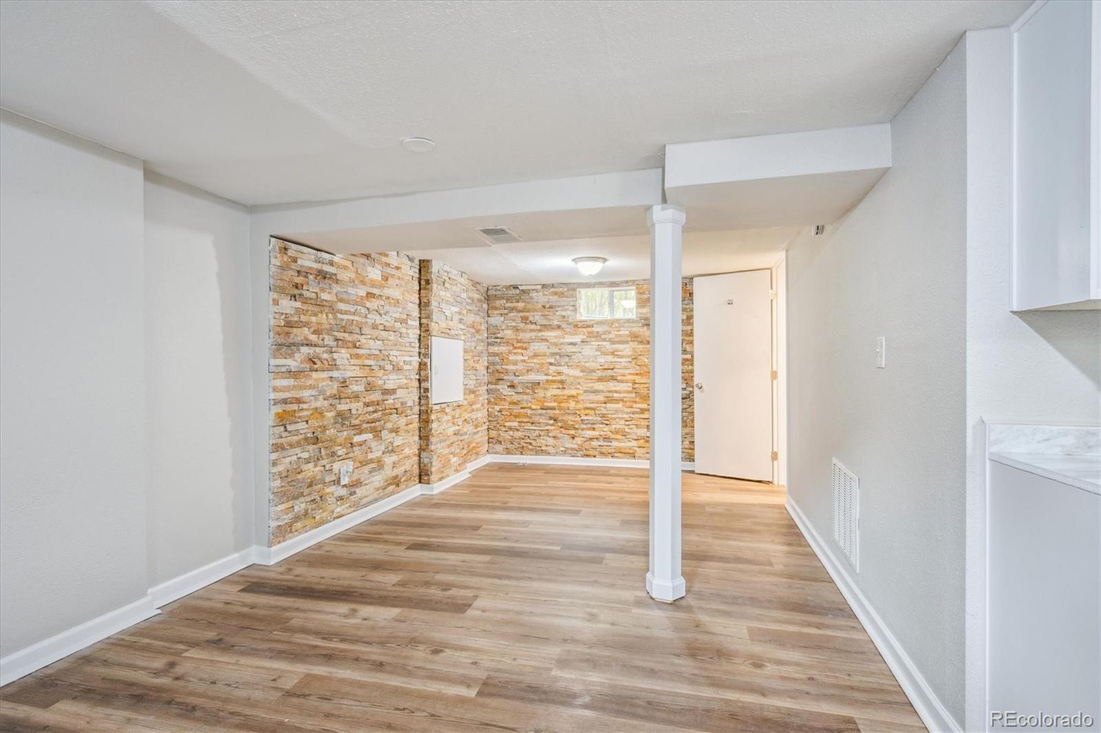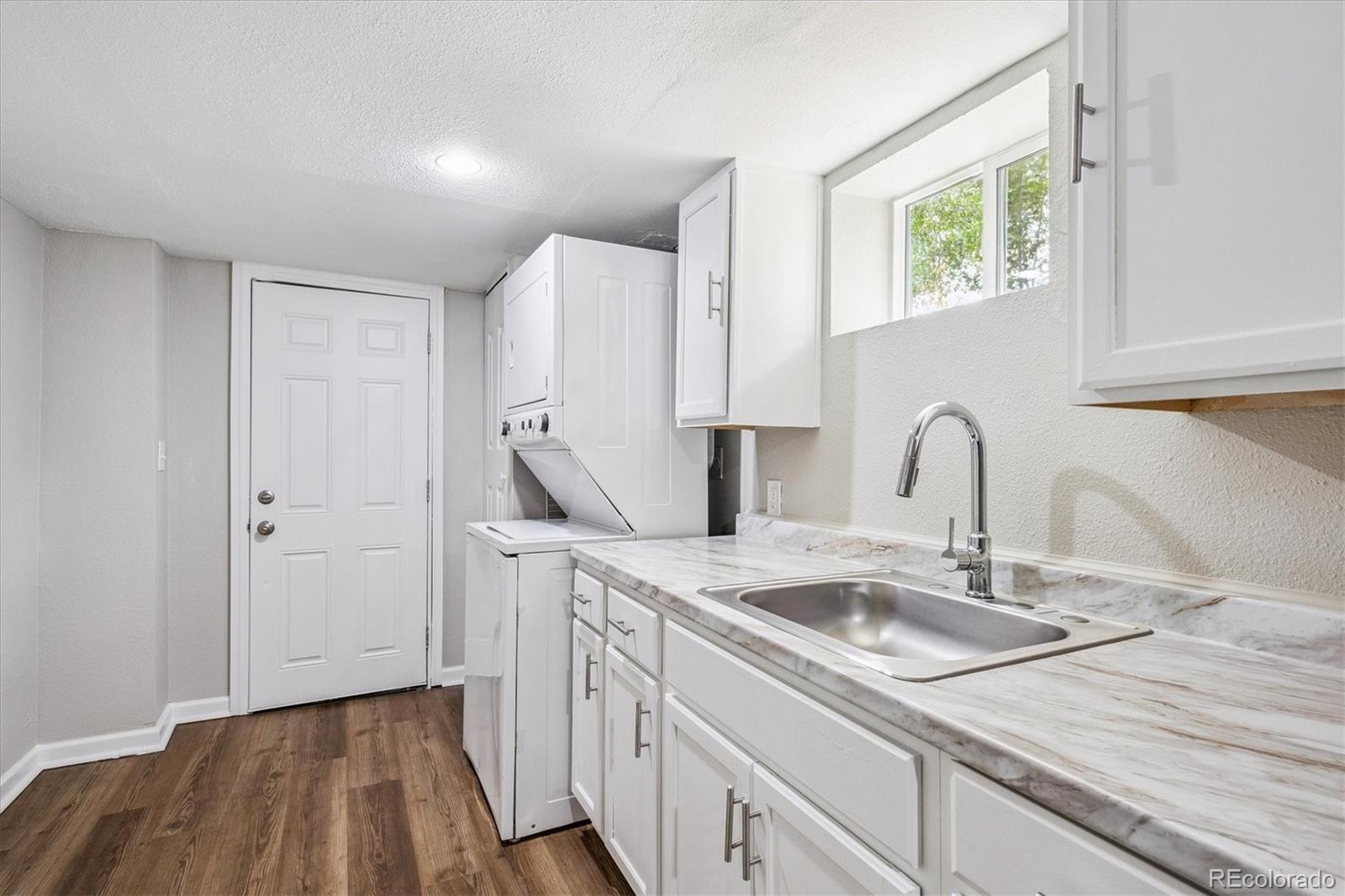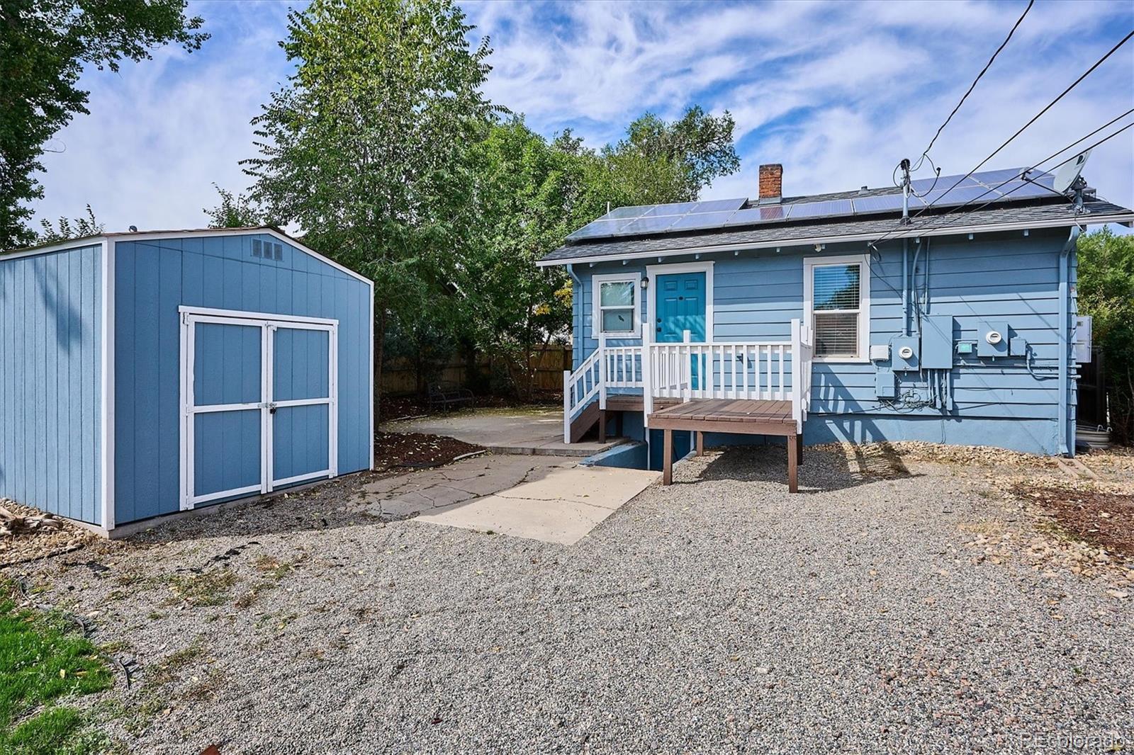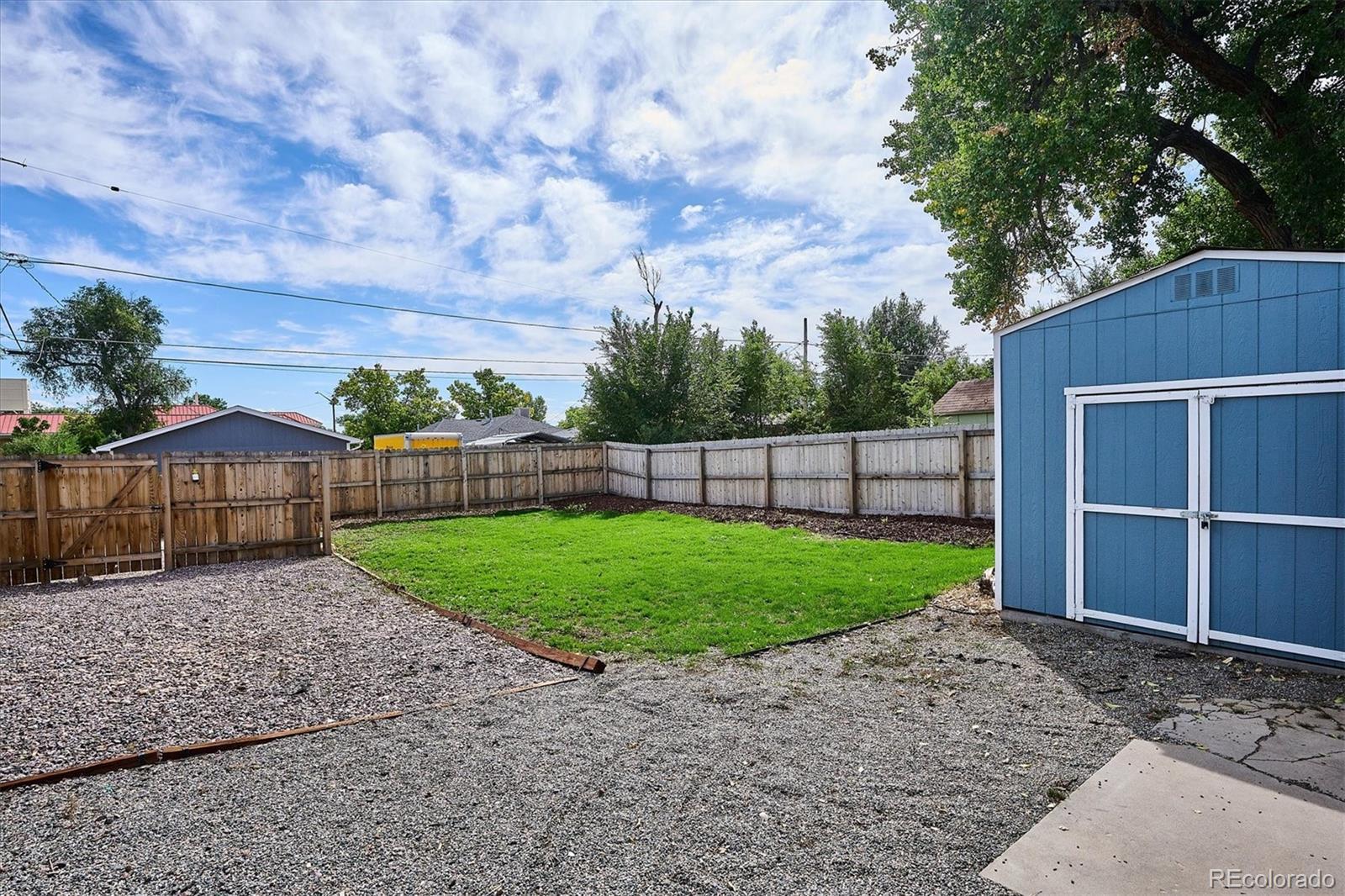 Perched on a west facing 6,250 sq ft double lot in the heart of Denver's Barnum neighborhood, this beautifully remodeled bungalow is pure magic! With curb appeal galore, it boasts "lots of news" including the roof (2023), privacy fence (2023), front sewer line (replaced by the city in 2022-ish) and back sewer line to the alley (2023). Enter the home from the large covered front deck which provides for great relaxation and protection from the elements. Open the door to fresh Agreeable Gray paint and Pure White ceilings and trim throughout the home (including the basement), as well as all new 2" blinds on the main level. The spacious living room simply "feels good" with rich prefinished wood flooring. It can host several furniture pieces and has a perfect TV wall! Enjoy a bistro table for meals or sit at the counter. The "chic" fully remodeled kitchen includes white cabinetry, contrasting counters, white subway tile backsplash and a stackable washer/dryer. Two bedrooms on the main are private from one another with the updated full bathroom in between. With an exterior entrance, the fully finished basement is a great guest, roommate, teenager or fun space with a living room/game room, wet bar, conforming bedroom, 3/4 bath and stackable laundry. There are newer windows throughout and an egress window in the basement bedroom. Even the smaller windows in the basement are new (2025) and can open for ventilation. HVAC is newer as well as paid off solar! Denver allows ADUs with the proper permitting process so that's an option too. The back yard is perfect for enjoying cool evenings on the concrete patio, a small deck for the kitchen ideal for a grill, large grassy area, a shed for extra storage and tons of room for your creativity including a great spot to put a large garage! There are also two parking spaces on the alley side. This walkable neighborhood is convenient to major throughfares, great eats, parks and the elementary school is only two blocks away! Dare to dream!