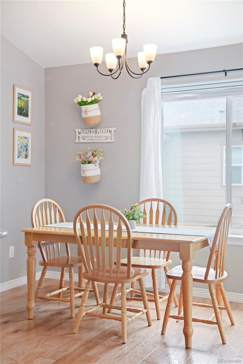 Steeped in an enviable locale in Heritage Ridge, this newer ranch residence excites. Stunning curb appeal lends a warm welcome into this impeccably designed home. Flooded with natural light and large windows, the living space has flawless livability with chic floors, stylish finishes, precise detailing and masterful upgrades at every turn. A truly open living space connects to a chef’s kitchen which features high-end appliances, counter seating for four, a real pantry, a gas range and shaker cabinets. A wall of windows and a large patio door affords easy access onto the flourishing back patio and green space. Back in the home, the primary suite beckons peaceful rejuvenation with vaulted ceilings, a double vanity, large shower, soaking tub and a custom walk-in closet that will comfortably fit the all-season wardrobe for two. The main floor also includes two additional spacious bedrooms, another full bath with a double vanity and a laundry room. The lower level plays host a large flex space, 2 conforming bedrooms, another full bath and storage galore. Relish in the convenience of an oversized 3-car attached garage, custom blinds, fresh paint, storage galore and professional landscaping. Enjoy walkability to all of your favorite Heritage Ridge amenities including the pool and parks and easy access to downtown Berthoud. This opportunity is not to be missed.