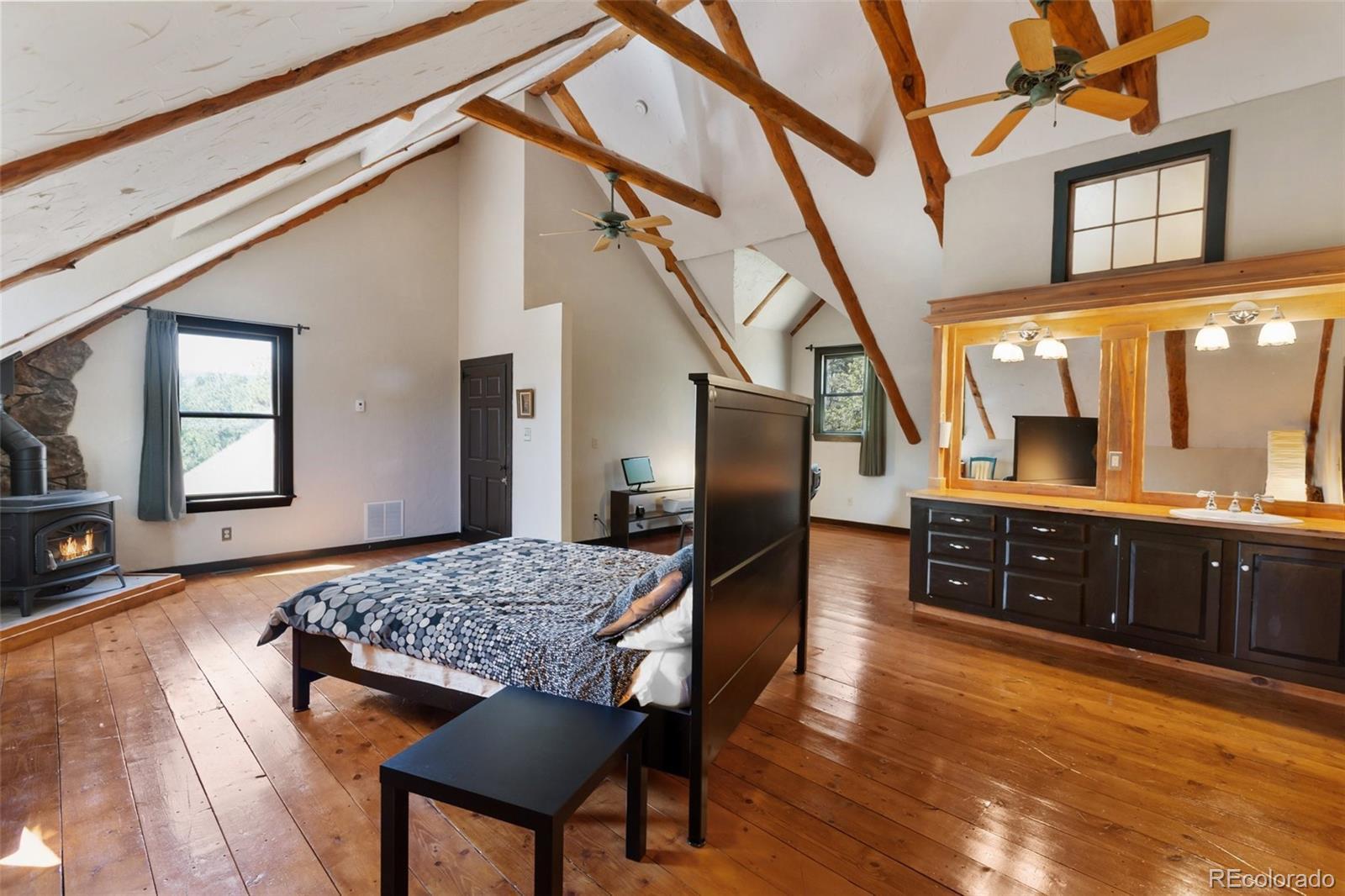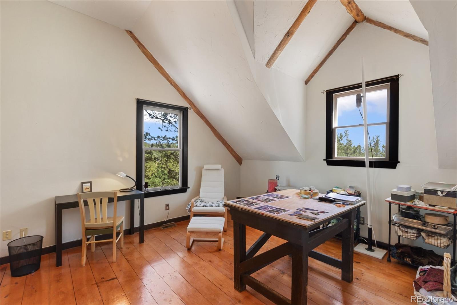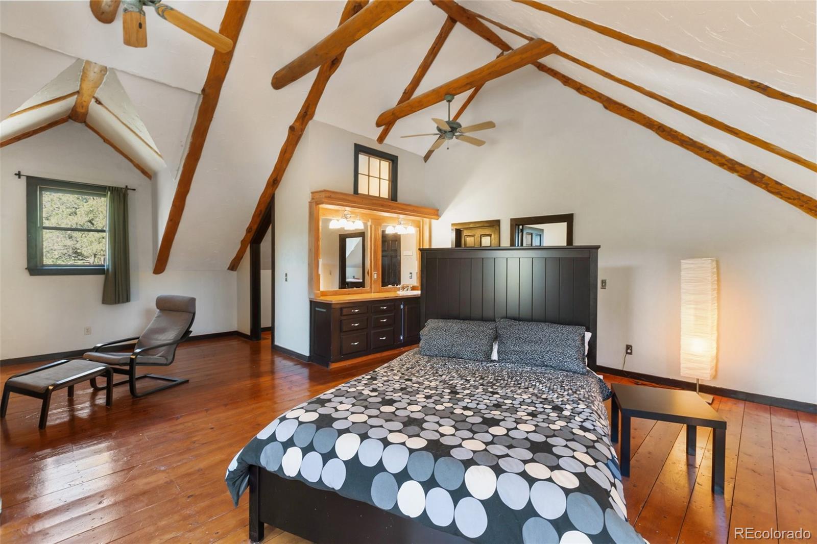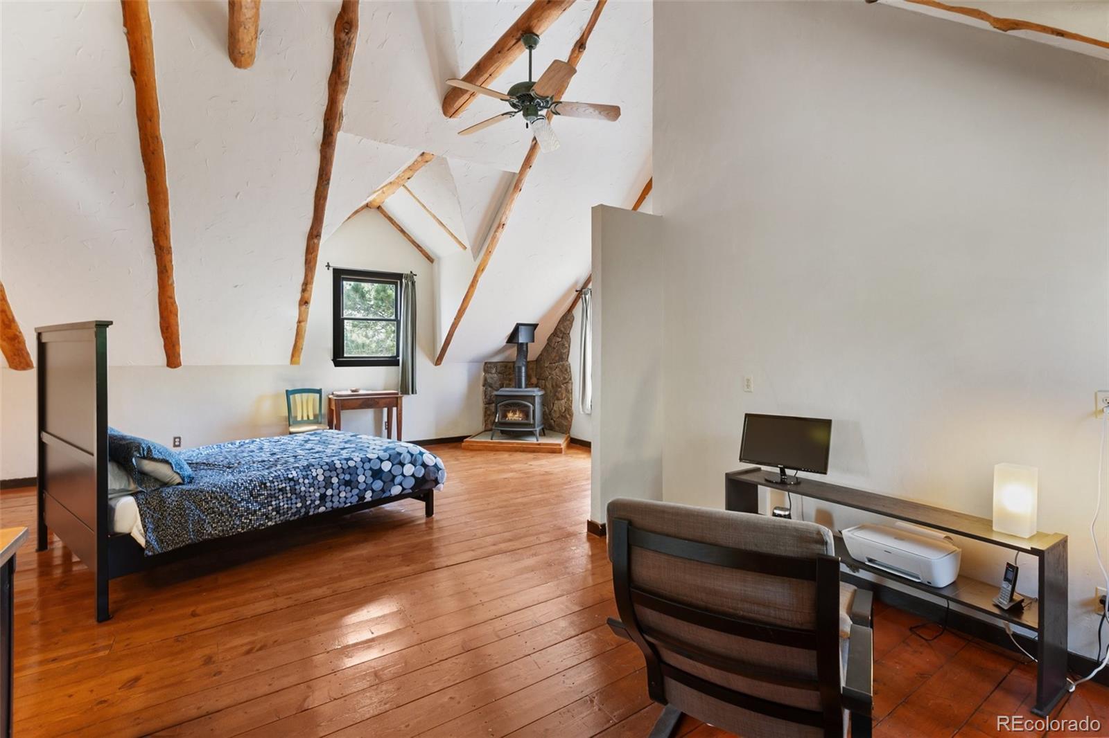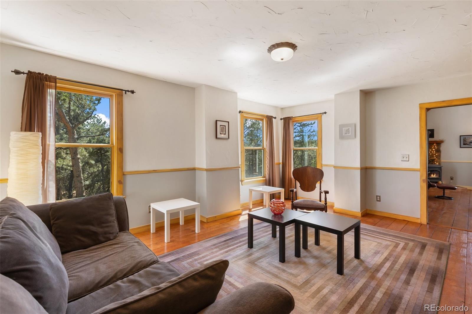 Step Back in Time with This One-of-a-Kind Country Farmhouse! Experience the charm of mountain living in this beautifully handcrafted country home, nestled on a stunning, usable lot. Constructed with solid wood and finished in wood siding, the home features a striking array of paned windows that flood the space with natural light. Inside, rustic character shines through with wide plank wood floors, custom cabinetry, and thoughtful vintage-inspired finishes. Soaring cathedral ceilings enhance the sense of space, while the oversized kitchen is perfect for entertaining—with room for a large dining table, abundant cabinetry and counter space, and a cozy free-standing gas fireplace. Step out onto the spacious, screened enclosed back porch—ideal for outdoor dining and year-round enjoyment. The main level offers two bedrooms, a full bath, a comfortable living room, an office, and a generous laundry room. Upstairs, you'll find a private retreat in the expansive primary suite, complete with a massive walk-in closet, full bath, free-standing gas fireplace, charming dormer windows, and a private office or sitting area. The walk-out lower level adds incredible versatility with a huge great room, two additional bedrooms (no closets but room to add), and a ¾ bath. Whether you envision a home theater, game room, or entertainment space with a bar and fridge, this area offers limitless possibilities. Outside, enjoy unique features like a heated bunkhouse, a whimsical decorative 'outhouse' storage shed, gazebo, and hobby farm area with a chicken coop and barnyard setup. This beautiful farm-style house is ready for you to move in and make it your own. Located in a recreation-rich area, you'll have access to gold medal fishing, hunting, hiking, off-roading, horseback riding, rock climbing, and more. Don't miss this rare opportunity to own a piece of mountain charm with timeless character and modern comfort.