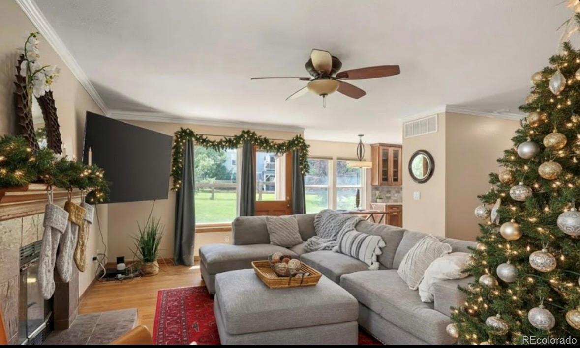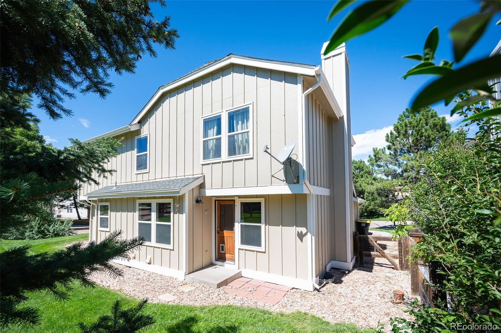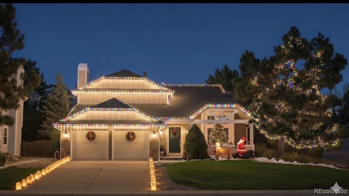 Picture yourself home for the holidays in Castle Pines! Your stunning 12-foot Christmas tree will fit perfectly in this beautifully maintained, well-priced home. Sip eggnog by the glow of the lights as you take in breathtaking mountain views from the recently added front porch. The handsomely updated, eat in kitchen is a chef's delight, boasting granite counters, stylish cabinets, & a suite of stainless-steel appliances (less than one year old), including a modern induction stove. Just off the kitchen, a cozy family room w/ a wood-burning fireplace and a 77" TV that comes with the house. The two-story layout is ideal, offering the ideal separation between your living & bedroom spaces. The spacious primary suite is complete with a large, walk-in closet & a spacious bathroom that features both a tub & shower. Two additional bedrooms & another updated full bath round out the 2nd floor. The finished basement is a valuable bonus, providing a wonderfully versatile space. It includes a fourth bedroom with brand new LVP flooring & a convenient bathroom. The basement area gives you the flexibility you need for a media room, home gym, home office, or an ideal guest suite & also tons of storage. For your peace of mind, the furnace, AC, and water heater have all been recently replaced. The exterior was just painted last year. Priced with your updates in mind. You'll love the access to highways, award winning schools, prestigious golf courses, miles of trails, parks & green spaces, neighborhood events like weekly farmers markets, food truck gatherings, runs, festivals & more. Seller's location transfer is your perfect opportunity!