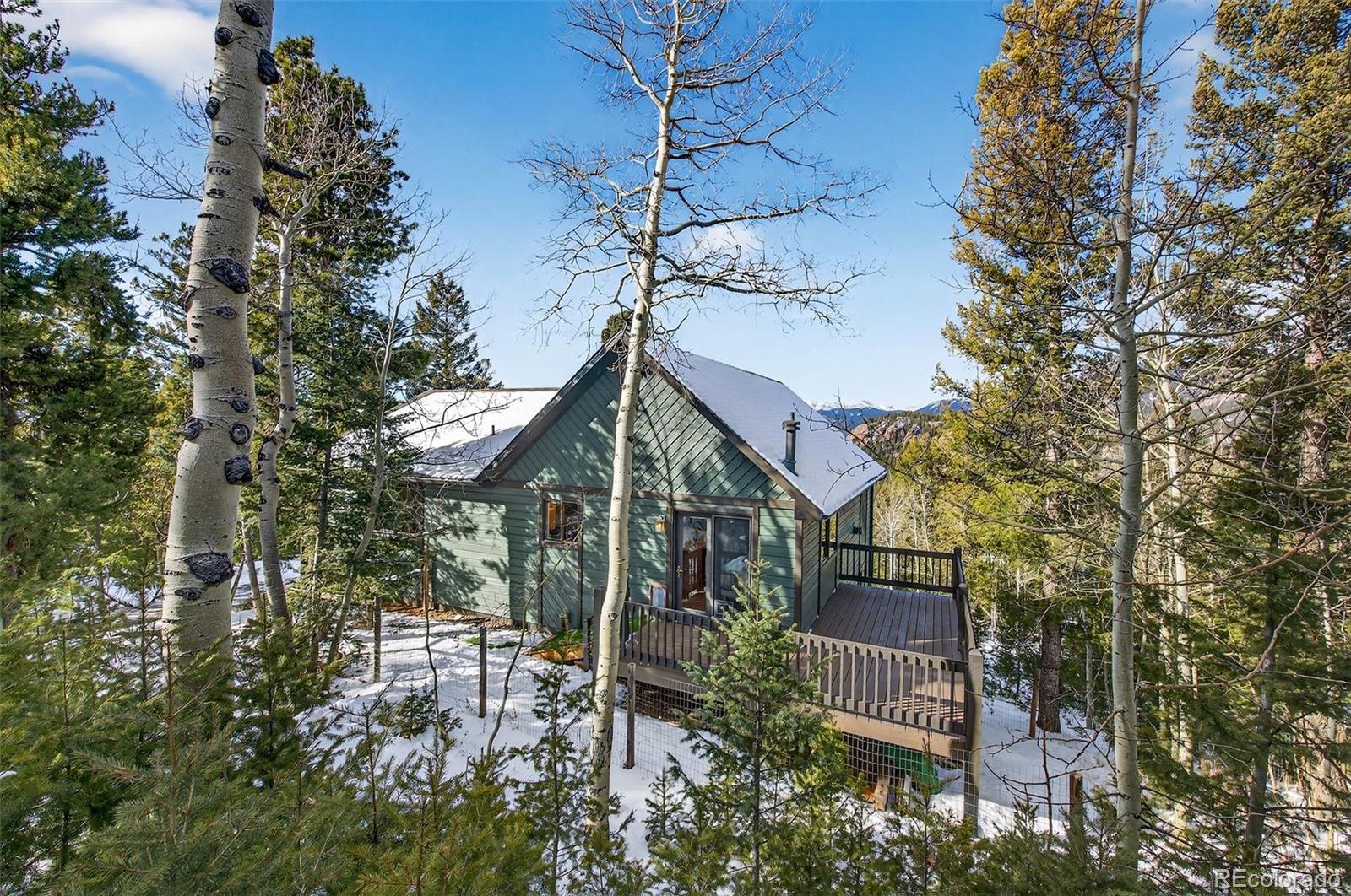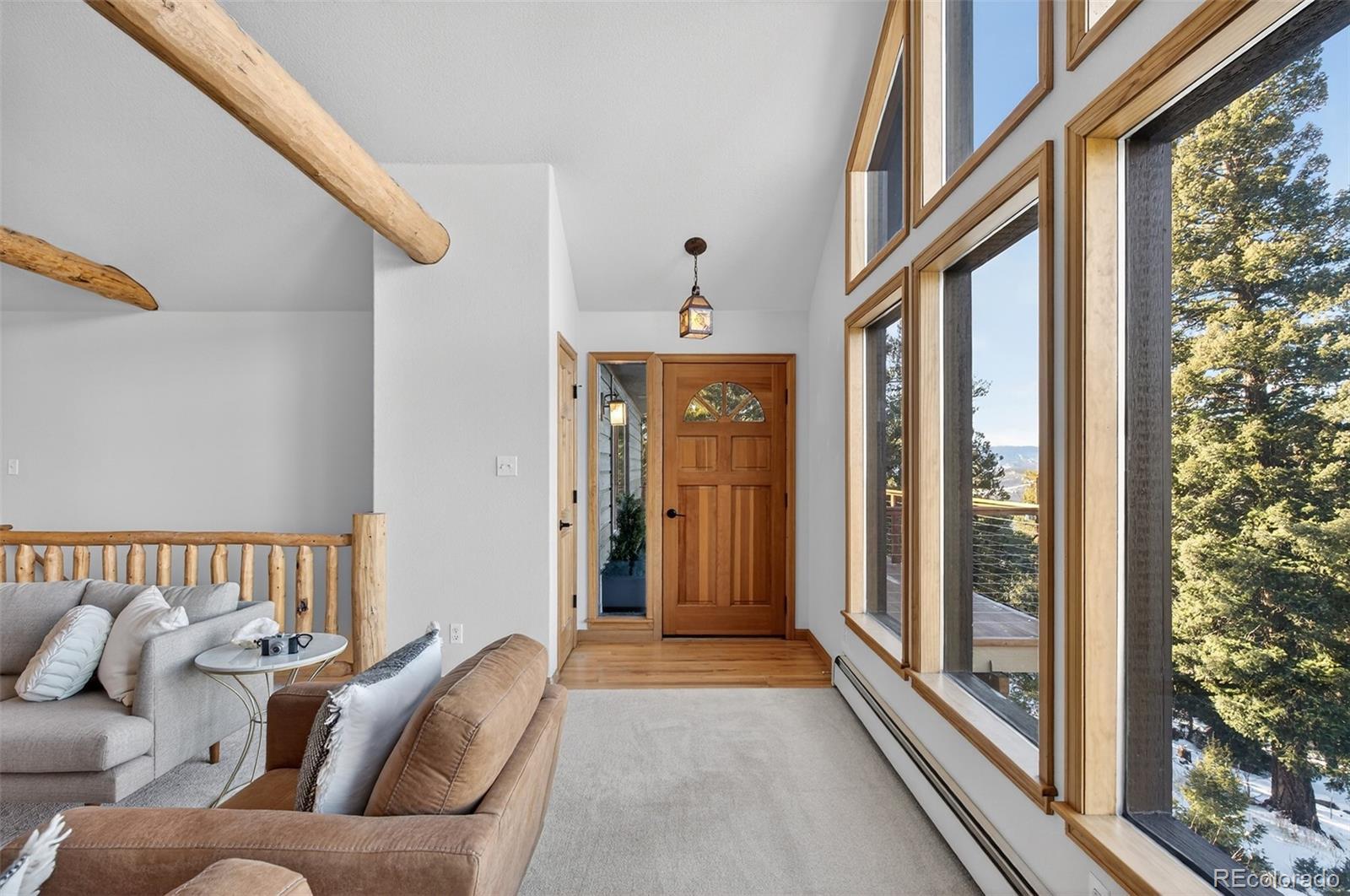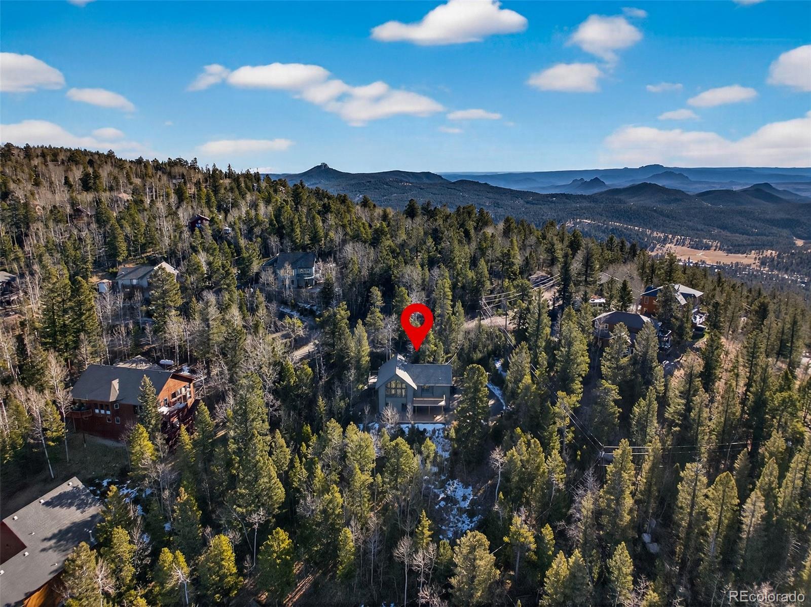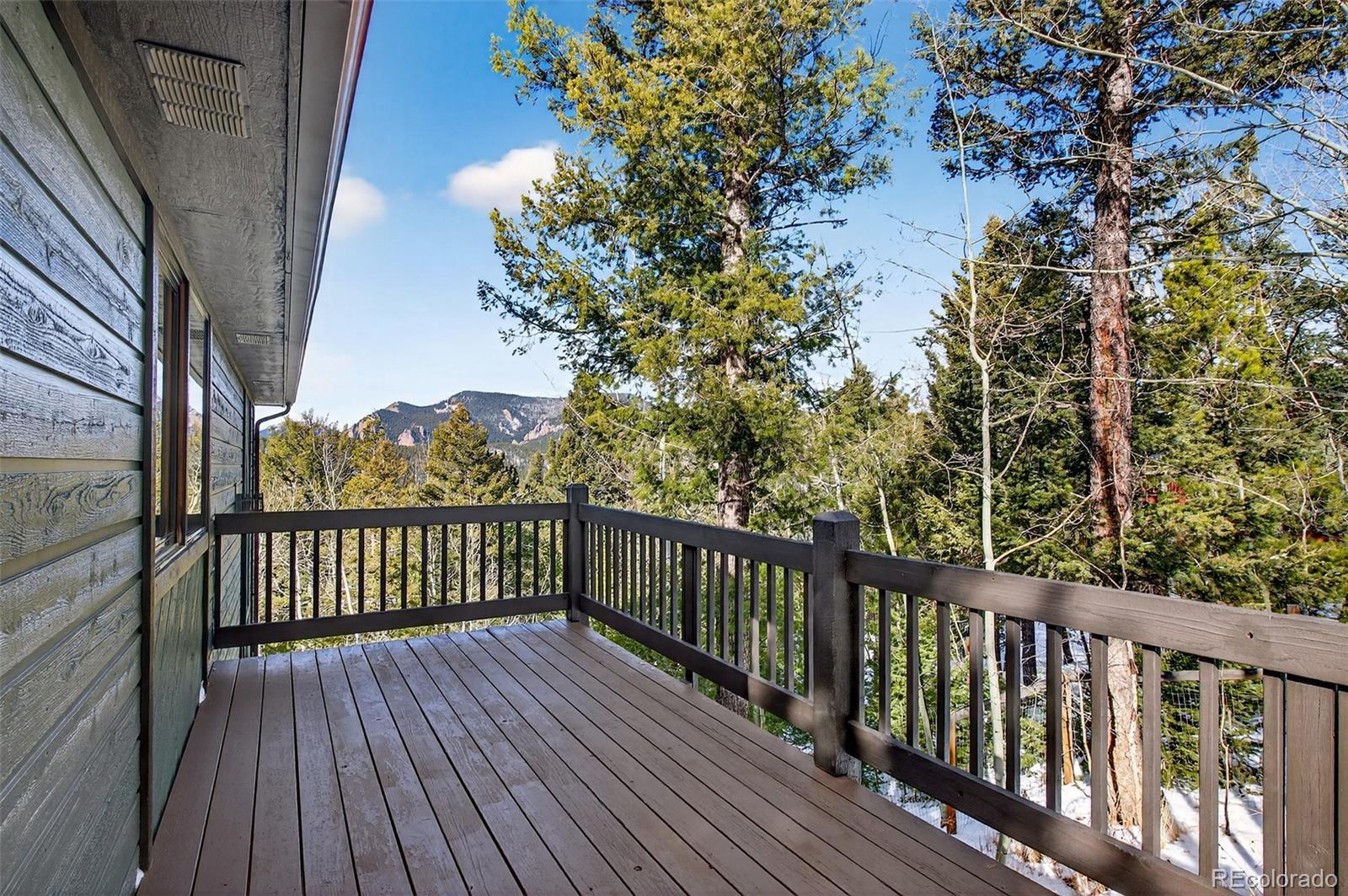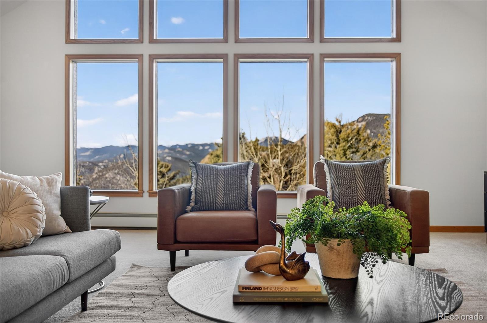 Experience Colorado living at its finest in this stunning 3-bedroom, 3-bath home offering 2,126 square feet of beautifully updated living space on a private half-acre lot. Unobstructed views of two Colorado 14ers and Staunton State Park from the great room and primary suite. Expansive windows flood the home with natural light. The recently updated kitchen features quartz countertops, stainless steel appliances, and modern finishes, perfect for both everyday living and entertaining. A new roof installed in 2025 provides peace of mind. Outdoor living is exceptional with a covered patio, spacious east-facing deck ideal for morning coffee, and a second deck for gathering with friends while enjoying unforgettable sunsets over Mt. Blue Sky (Mt Evans). Relax in the private hot tub with sweeping views of Mount Bierstadt, surrounded by tranquility and privacy. Tucked away in a serene setting, this home offers remarkable privacy, iconic views, and a true mountain lifestyle—an exceptional opportunity in Kings Valley.