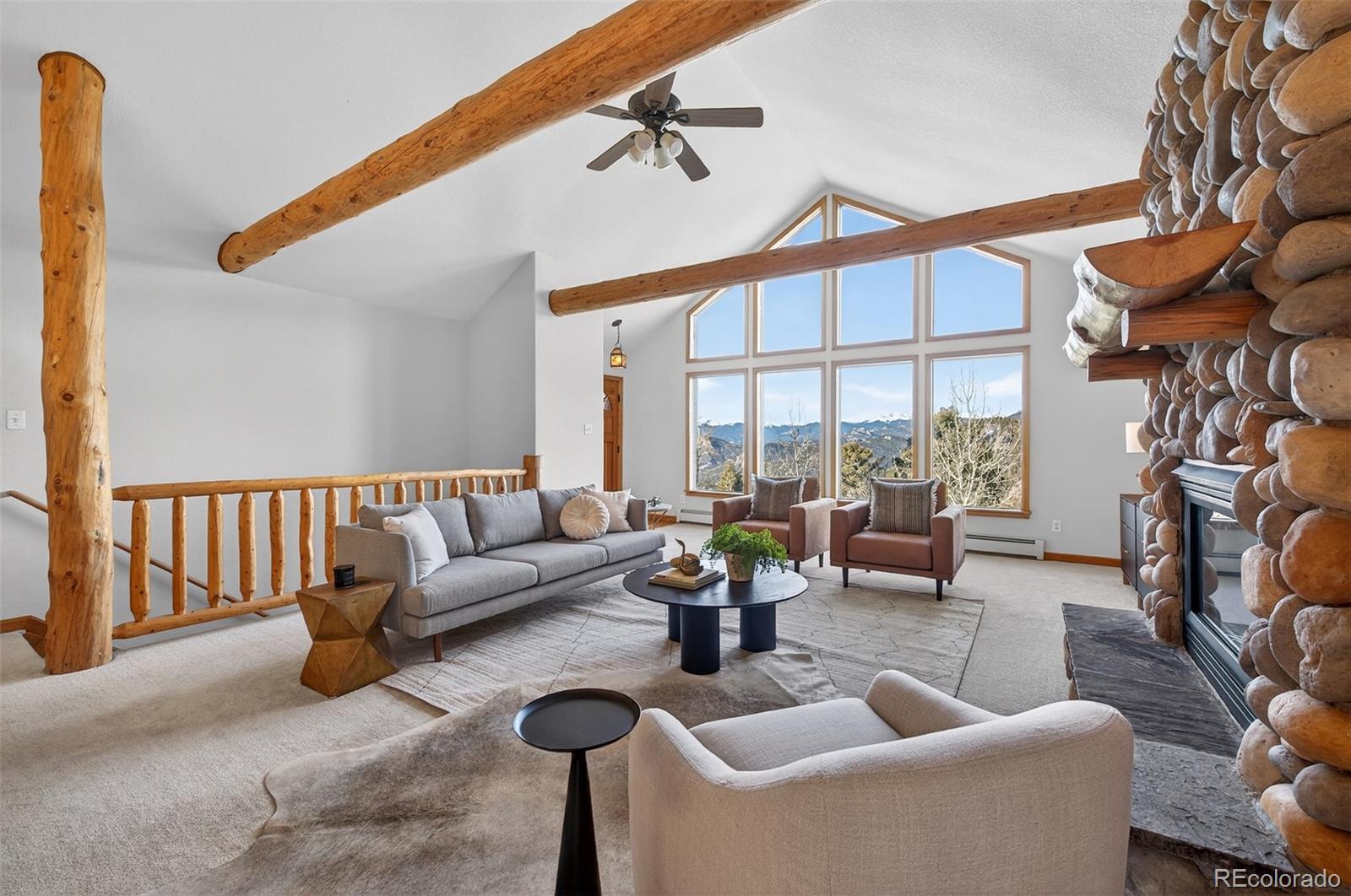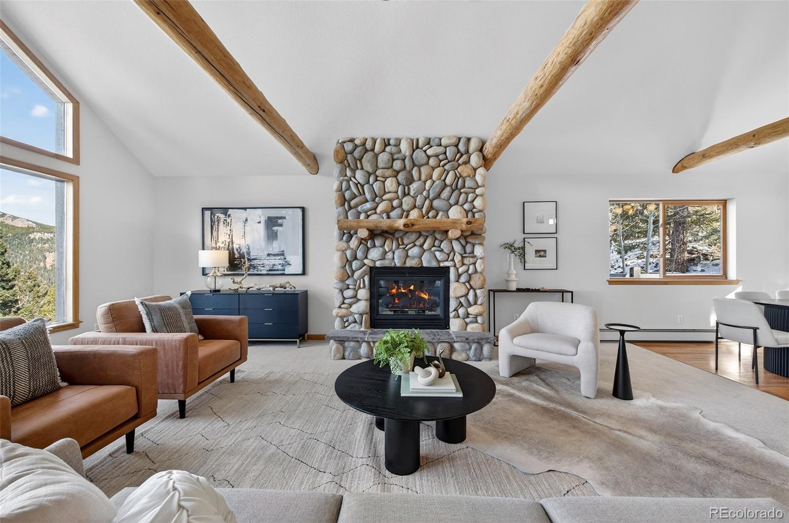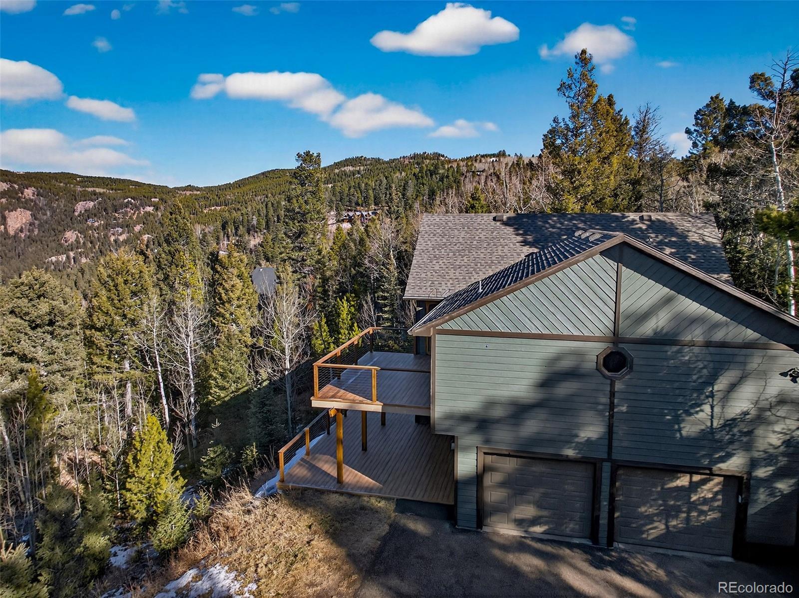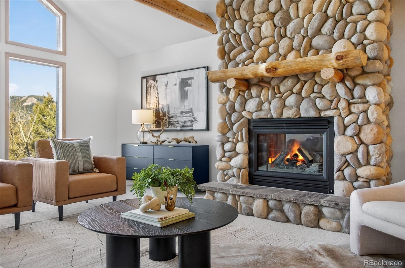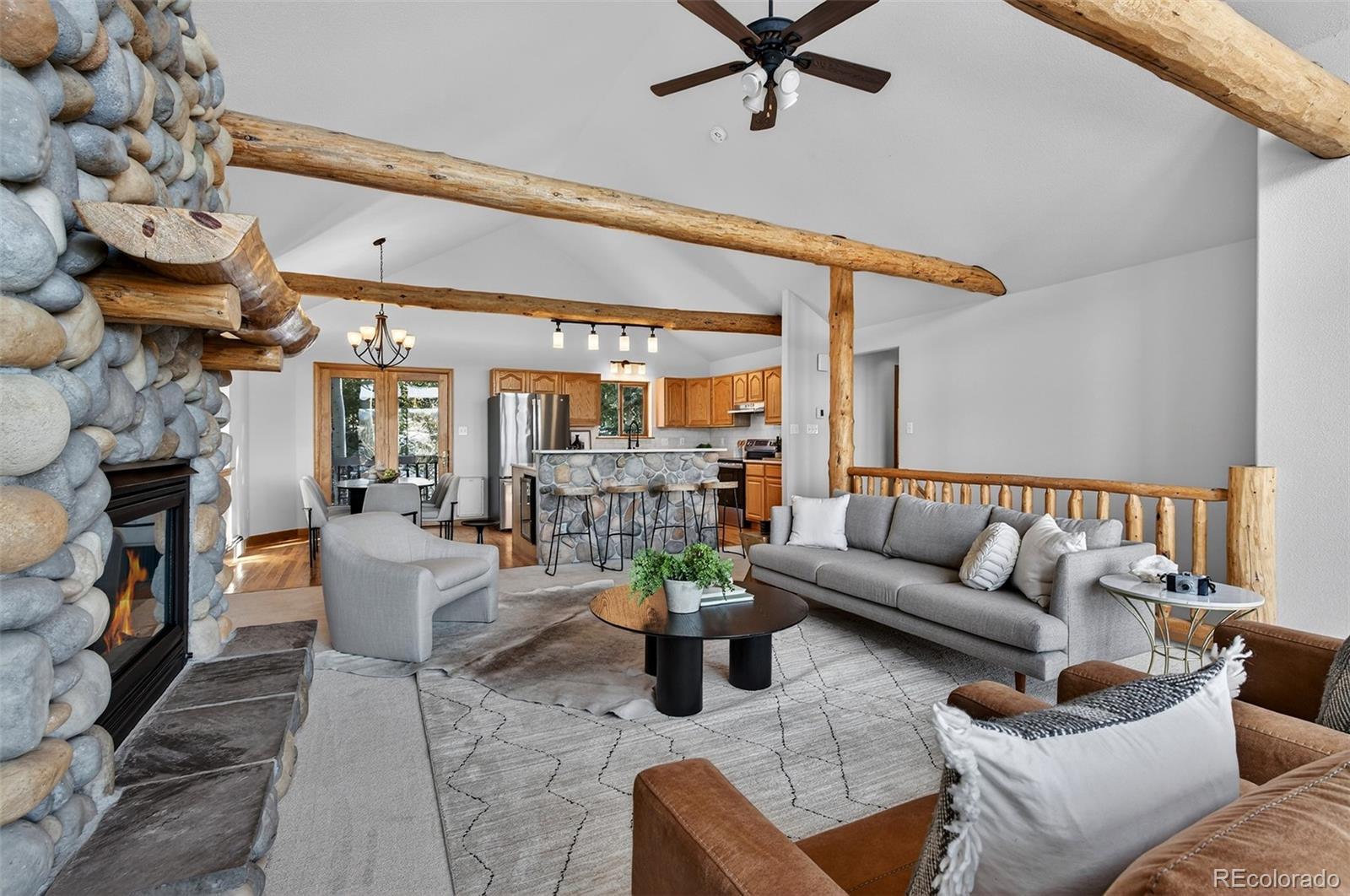 Experience Colorado living at its finest in this stunning 3-bedroom, 3-bath home offering 2,126 square feet of beautifully updated living space on a private half-acre lot. Unobstructed views of two Colorado 14ers and Staunton State Park from the great room and primary suite. Expansive windows flood the home with natural light. The recently updated kitchen features quartz countertops, stainless steel appliances, and modern finishes, perfect for both everyday living and entertaining. A new roof installed in 2025 provides peace of mind. Outdoor living is exceptional with a covered patio, spacious east-facing deck ideal for morning coffee, and a second deck for gathering with friends while enjoying unforgettable sunsets over Mt. Blue Sky (Mt Evans). Relax in the private hot tub with sweeping views of Mount Bierstadt, surrounded by tranquility and privacy. Tucked away in a serene setting, this home offers remarkable privacy, iconic views, and a true mountain lifestyle—an exceptional opportunity in Kings Valley.