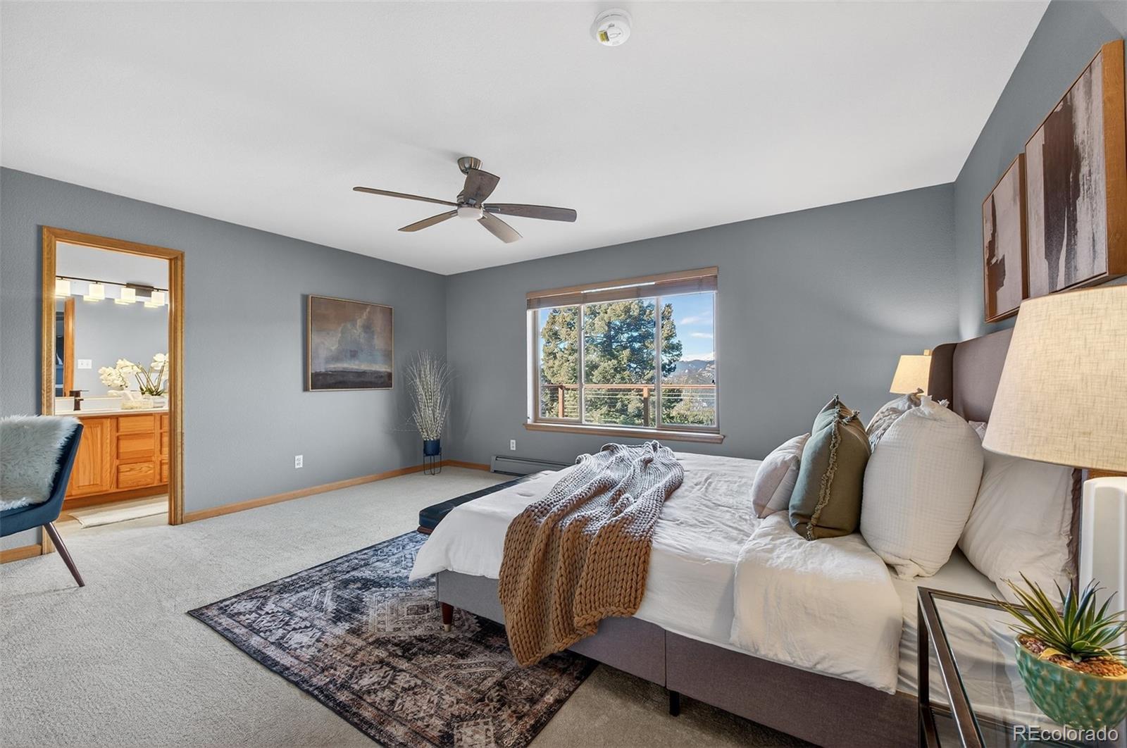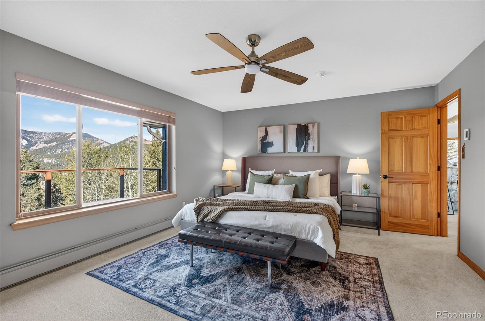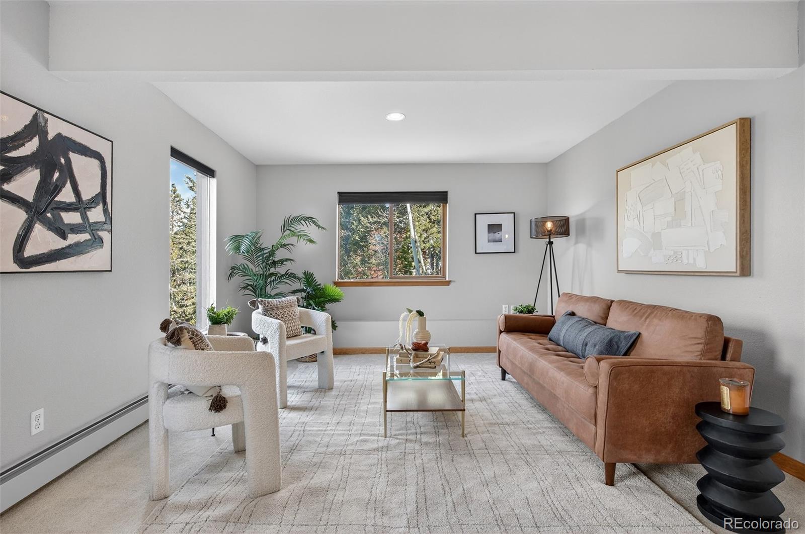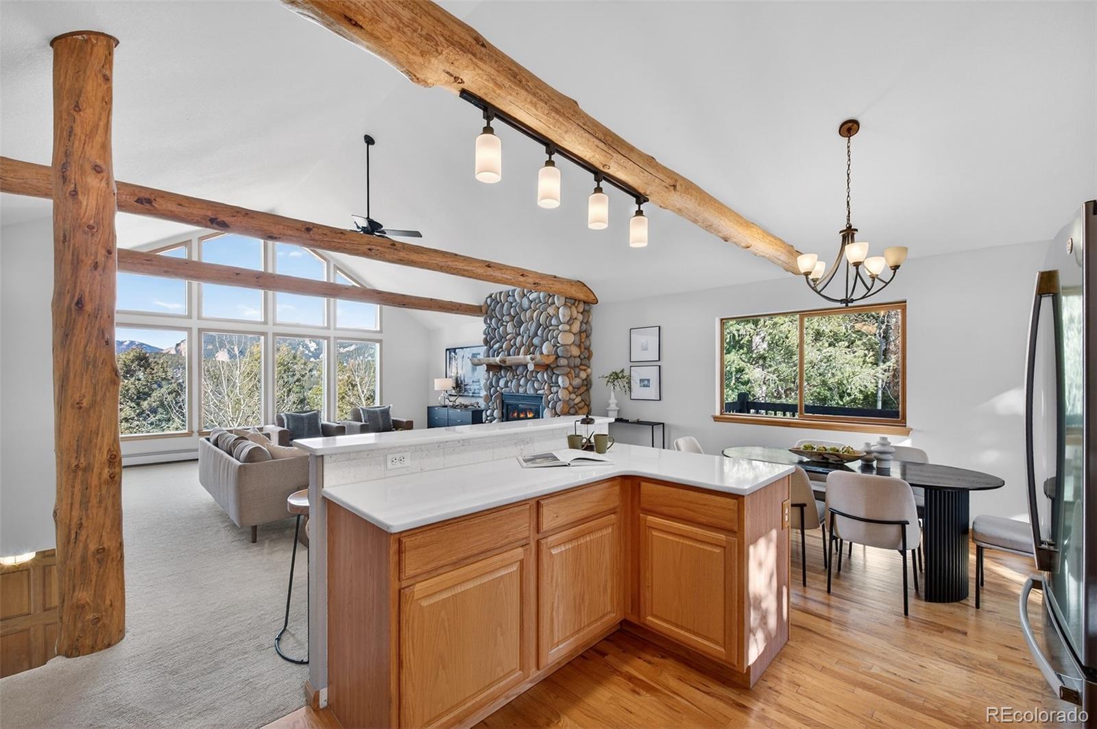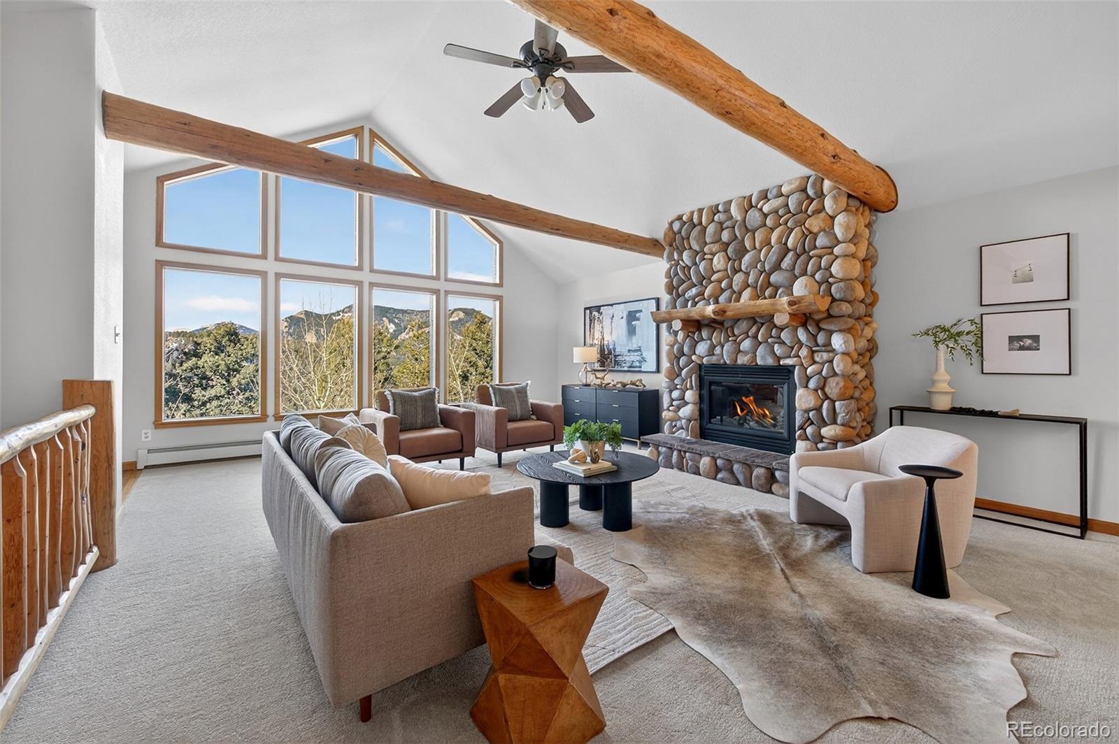 Experience Colorado living at its finest in this stunning 3-bedroom, 3-bath home offering 2,126 square feet of beautifully updated living space on a private half-acre lot. Unobstructed views of two Colorado 14ers and Staunton State Park from the great room and primary suite. Expansive windows flood the home with natural light. The recently updated kitchen features quartz countertops, stainless steel appliances, and modern finishes, perfect for both everyday living and entertaining. A new roof installed in 2025 provides peace of mind. Outdoor living is exceptional with a covered patio, spacious east-facing deck ideal for morning coffee, and a second deck for gathering with friends while enjoying unforgettable sunsets over Mt. Blue Sky (Mt Evans). Relax in the private hot tub with sweeping views of Mount Bierstadt, surrounded by tranquility and privacy. Tucked away in a serene setting, this home offers remarkable privacy, iconic views, and a true mountain lifestyle—an exceptional opportunity in Kings Valley.