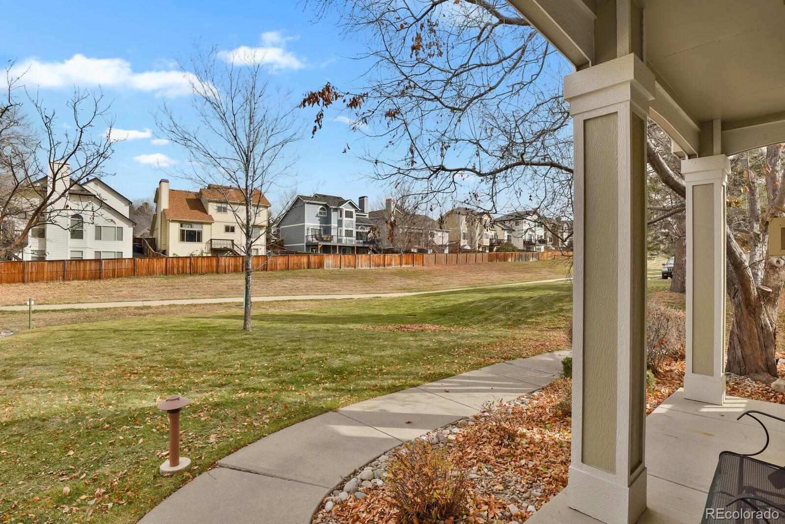 Rare Ranch Style townhouse with primary suite and second bedroom on the main level is faces on a green belt offering tranquility and accessibility, with immediate access to the trails that lead to the Cheese Ranch Park, a short walk away, as well is Heritage Park and only a mile to the Highlands Ranch Eastridge Recreation Center which boasts an amazing number of amenities all included in HOA fees. Inside, the home is move in ready, freshly painted with beautiful wood floors in living room, dining room and kitchen, and newer carpet in bedrooms, an inviting fireplace, a spacious eat-in kitchen with granite countertops, and newer stainless-steel appliances including gas range. The primary suite includes a walk-in closet and a luxurious five-piece bath, while the secondary bedroom also includes a walk-in closet and direct access to a second full bathroom. A large loft upstairs provides additional living space and includes a third full bath, making it perfect for guests, a home office, or a media room. The in-unit laundry includes the washer and dryer. Enjoy the privacy of a north-facing porch and relax on the shaded east-facing patio. This home is part of the vibrant Settlers’ Village community, which offers access to the Highlands Ranch Recreation system, including four exceptional recreation centers, numerous parks, playing fields, and an extensive network of bike trails throughout the south metro area.
