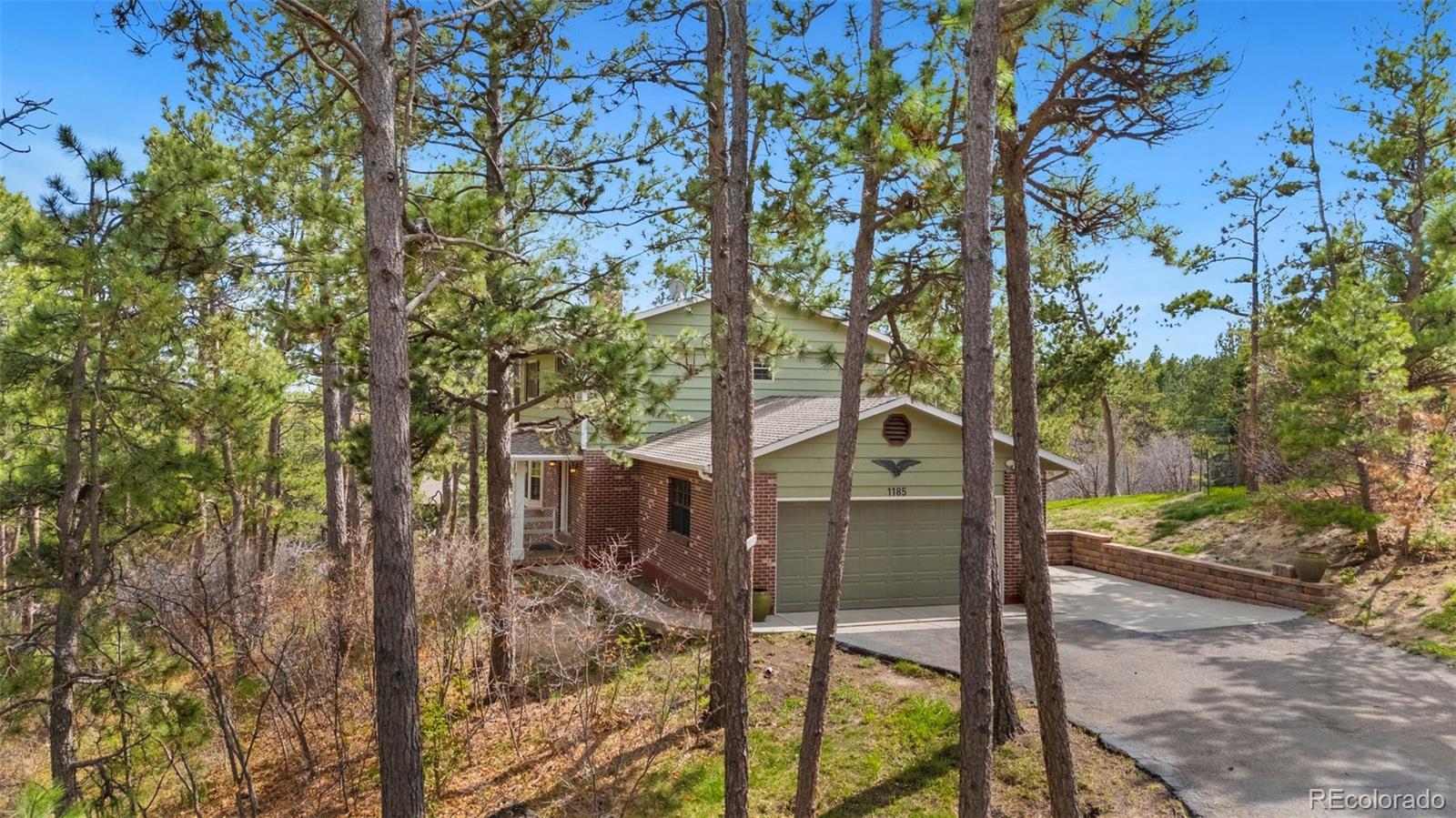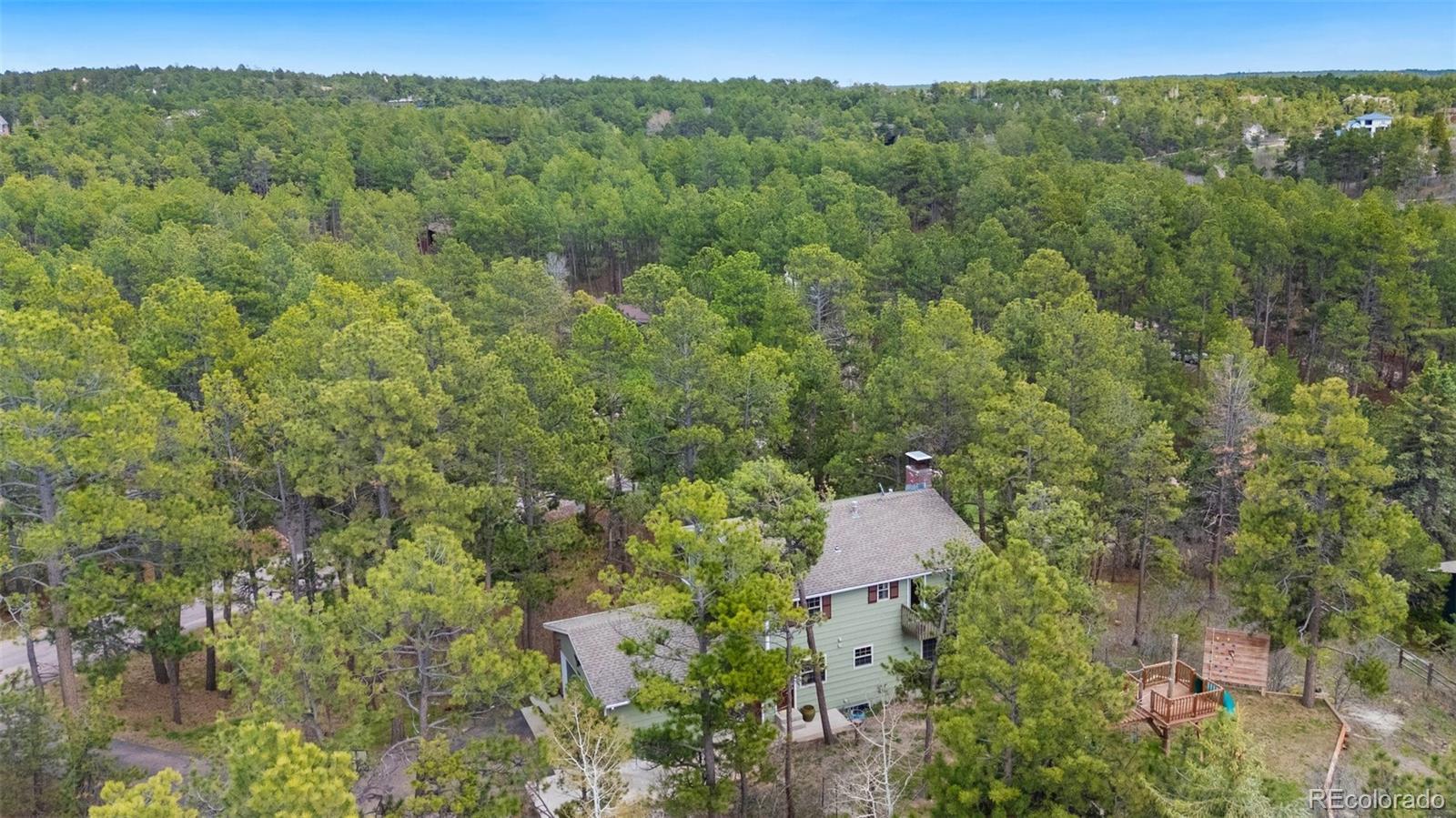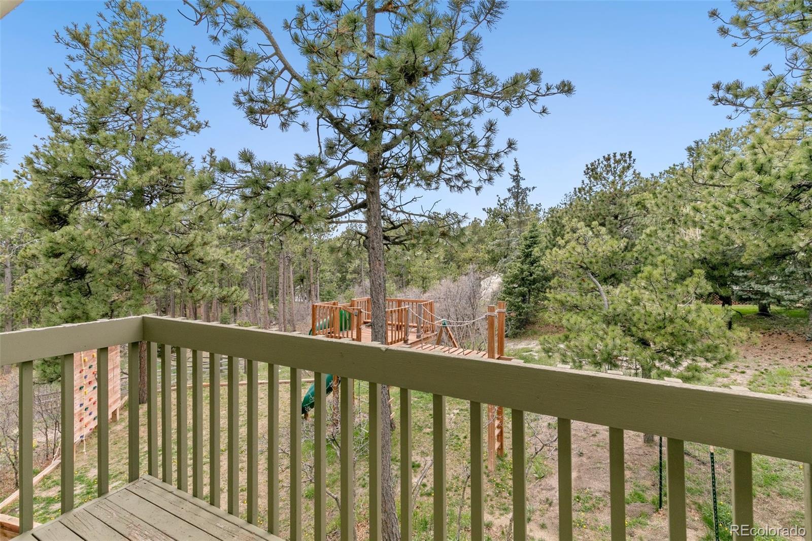 BE HOME FOR THE HOLIDAYS! ASSUMABLE VA LOAN - 3.25%* Bursting with charm and thoughtfully updated, this classic two-story home sits on nearly an acre in the highly sought-after Woodmoor neighborhood. Just a short walk from HOA-maintained open spaces with trails, ponds, and stunning Pikes Peak views. This corner lot is surrounded by mature ponderosa pines and scrub oak, offering privacy and a serene, natural setting. Step inside to a light-filled living room with a bay window framing lush greenery and a red brick wood-burning fireplace with an extended mantle—perfect for seasonal décor. The updated kitchen features granite countertops, stainless steel appliances, oven with stylish range hood, and custom cabinetry with pull-out shelves. The adjacent dining room easily accommodates a large table & includes extra counter space, storage, & a wine cooler for effortless entertaining. A powder room & access to the attached two-car garage complete the main floor. Solid hardwood flooring spans both main & upper levels, combining classic style with easy maintenance. Upstairs, the spacious primary suite features a private balcony overlooking the backyard and en-suite bath. Two additional bedrooms & full bathroom complete the upper level. The finished basement offers a cozy family room with a second fireplace, a 4th bedroom with new French doors—ideal as a guest room, office, or playroom—and a large unfinished area with laundry & ample space for storage. The backyard features a concrete patio, playset, and climbing wall—perfect for outdoor fun. This home has great bones & system updates including newer Champion windows, new roof & sewer line — giving you peace of mind for years to come. The Woodmoor community features multiple HOA-maintained open spaces with walking trails, Toboggan Hill for sledding, private 24/7 security, & the use of "The Barn" for private events. Don’t miss this incredible opportunity to own a beautiful home in one of Monument’s most desirable neighborhoods!