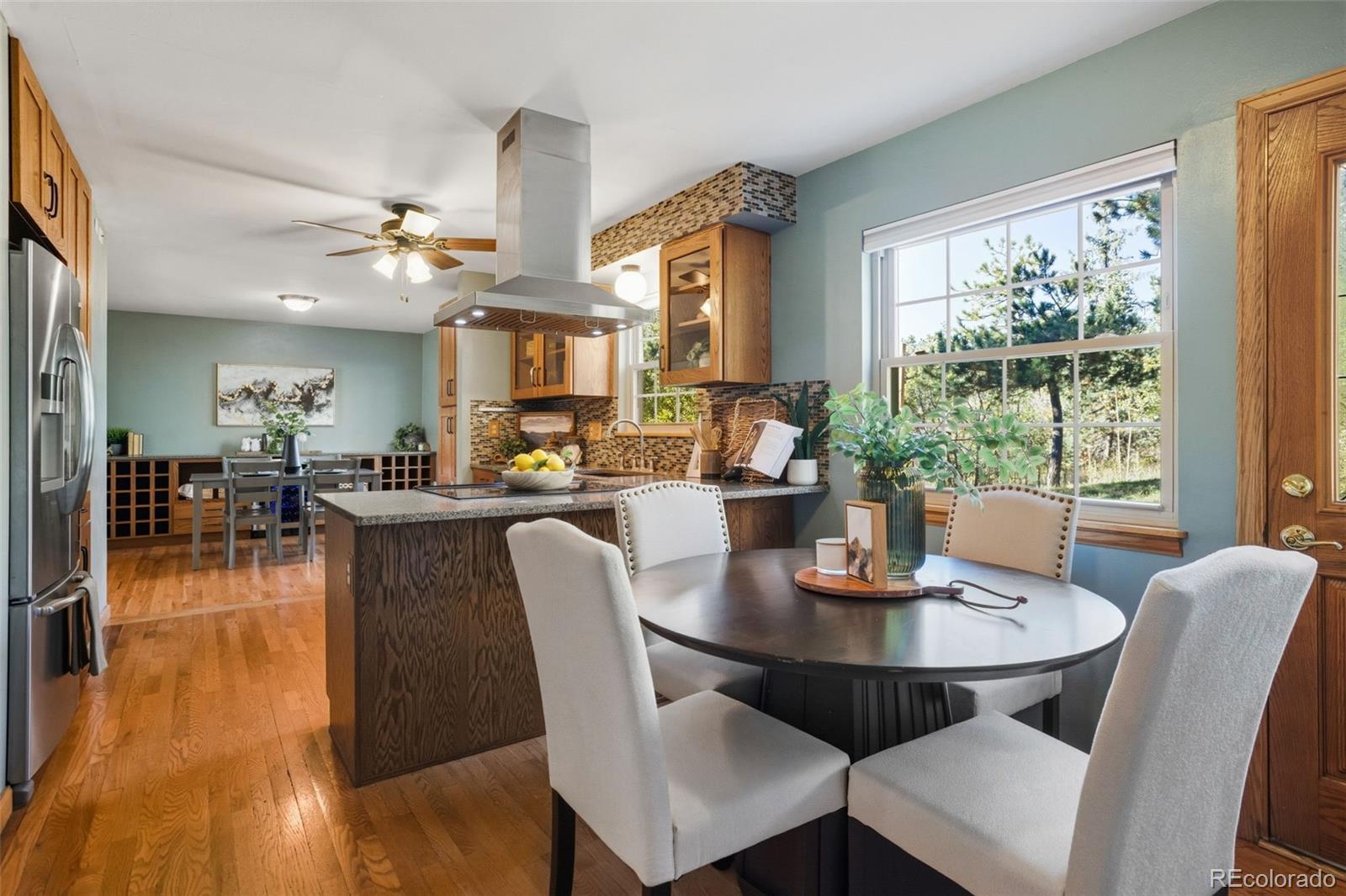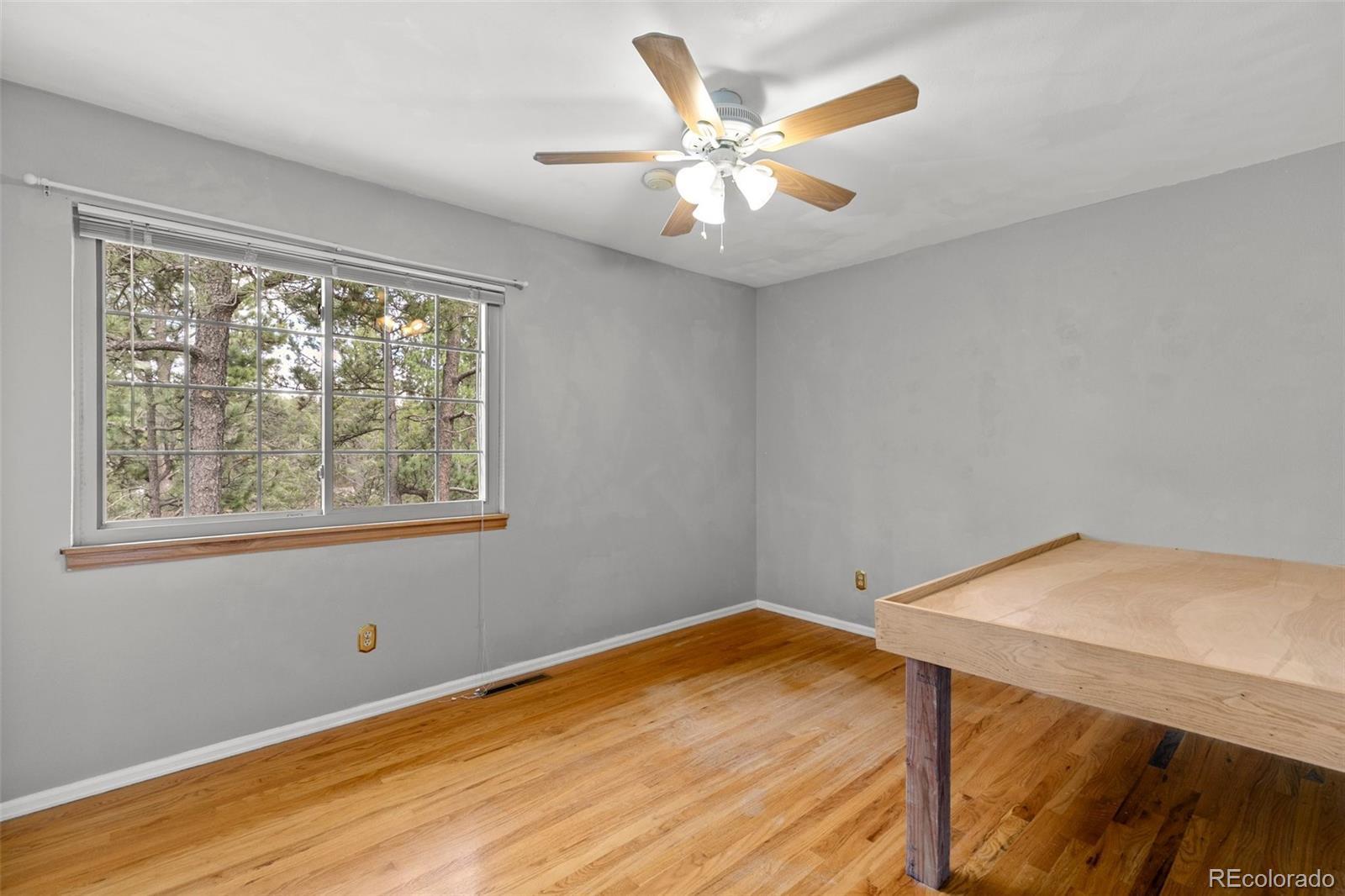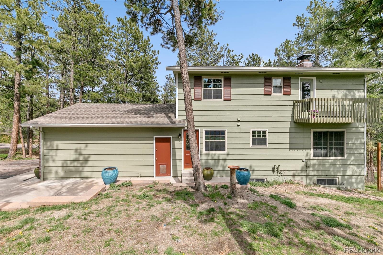 BE HOME FOR THE HOLIDAYS! ASSUMABLE VA LOAN - 3.25%* Bursting with charm and thoughtfully updated, this classic two-story home sits on nearly an acre in the highly sought-after Woodmoor neighborhood. Just a short walk from HOA-maintained open spaces with trails, ponds, and stunning Pikes Peak views. This corner lot is surrounded by mature ponderosa pines and scrub oak, offering privacy and a serene, natural setting. Step inside to a light-filled living room with a bay window framing lush greenery and a red brick wood-burning fireplace with an extended mantle—perfect for seasonal décor. The updated kitchen features granite countertops, stainless steel appliances, oven with stylish range hood, and custom cabinetry with pull-out shelves. The adjacent dining room easily accommodates a large table & includes extra counter space, storage, & a wine cooler for effortless entertaining. A powder room & access to the attached two-car garage complete the main floor. Solid hardwood flooring spans both main & upper levels, combining classic style with easy maintenance. Upstairs, the spacious primary suite features a private balcony overlooking the backyard and en-suite bath. Two additional bedrooms & full bathroom complete the upper level. The finished basement offers a cozy family room with a second fireplace, a 4th bedroom with new French doors—ideal as a guest room, office, or playroom—and a large unfinished area with laundry & ample space for storage. The backyard features a concrete patio, playset, and climbing wall—perfect for outdoor fun. This home has great bones & system updates including newer Champion windows, new roof & sewer line — giving you peace of mind for years to come. The Woodmoor community features multiple HOA-maintained open spaces with walking trails, Toboggan Hill for sledding, private 24/7 security, & the use of "The Barn" for private events. Don’t miss this incredible opportunity to own a beautiful home in one of Monument’s most desirable neighborhoods!