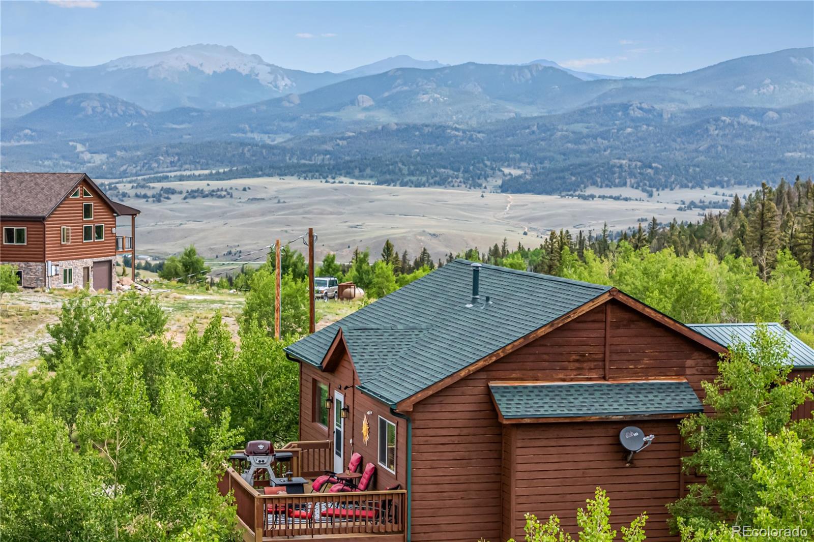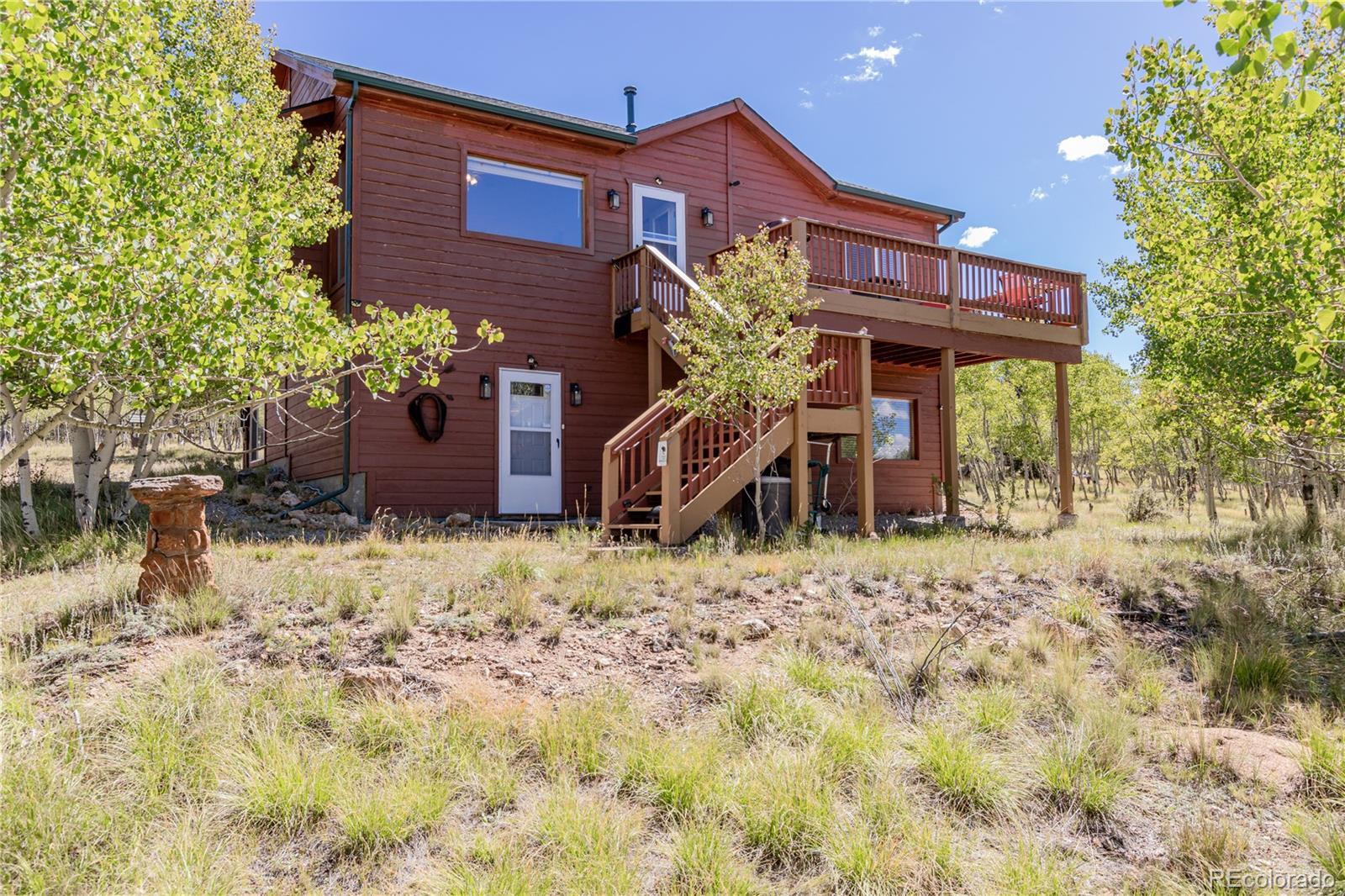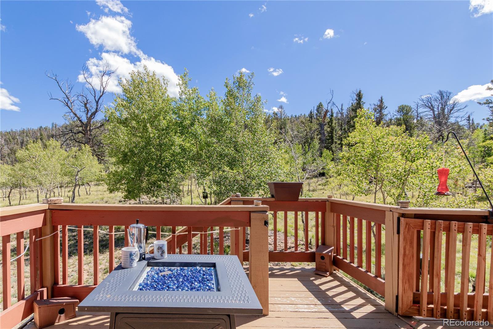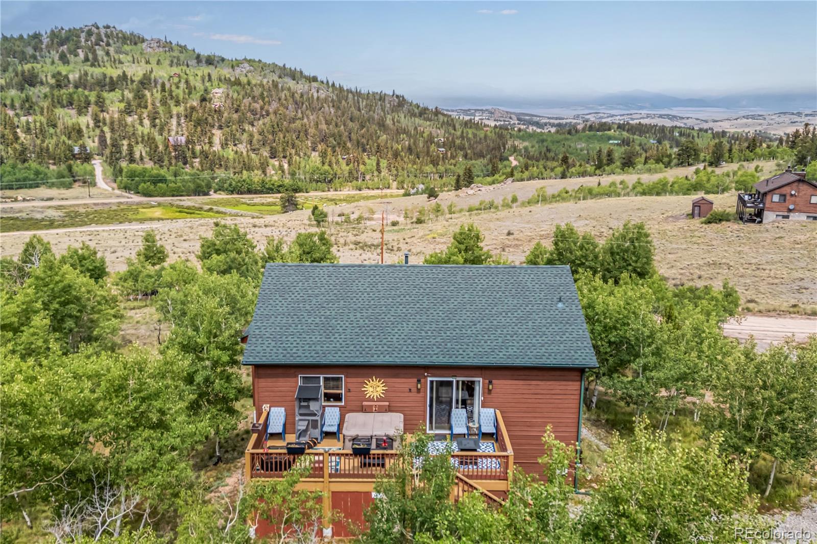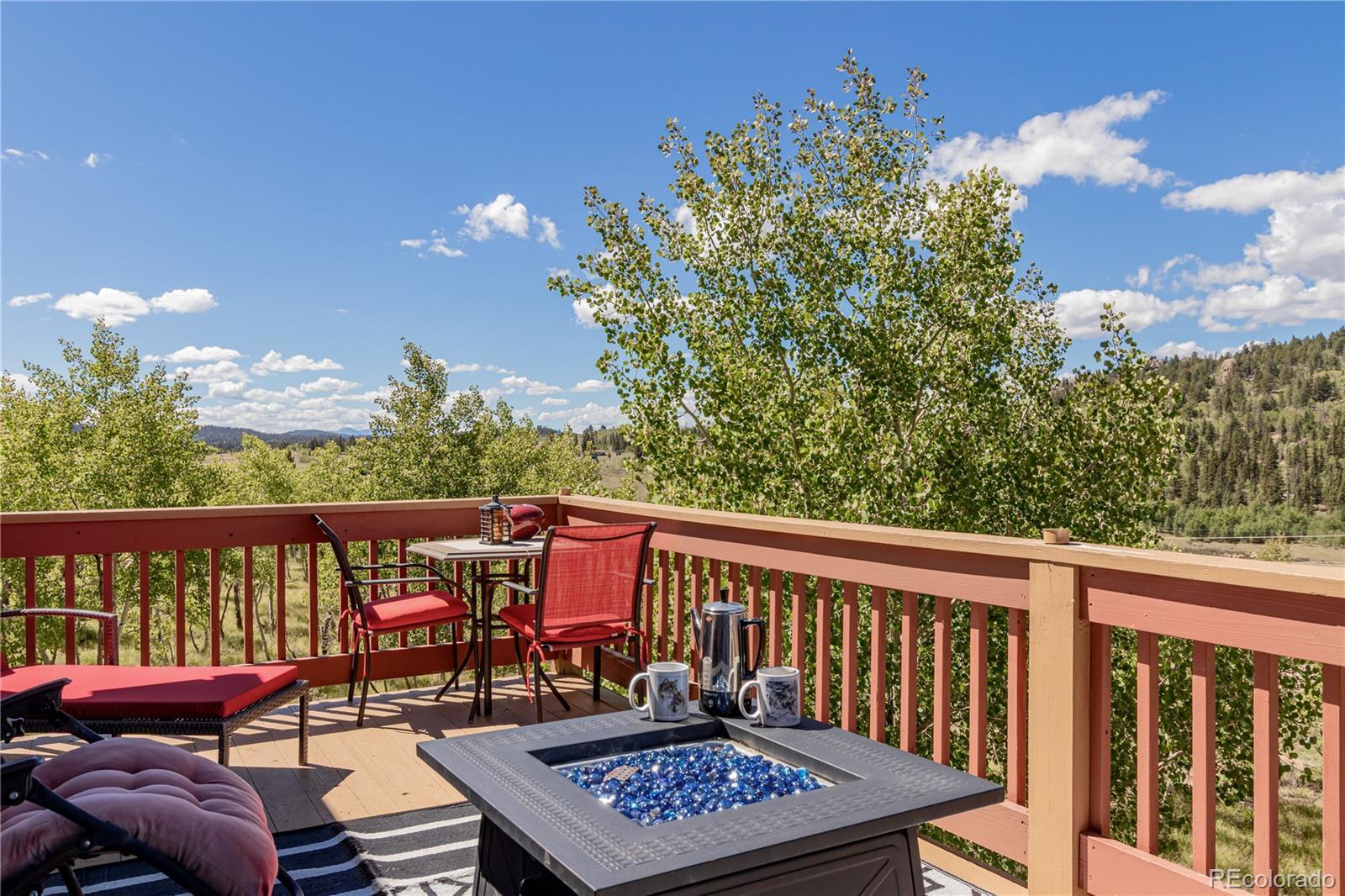 This is a one of a kind opportunity to own a unique furnished mountain home on 2 acres near National Forest access with fishing rights, Hot tub, Sauna, Gym, Furniture! This 2050sqft home has a main level that provides a front and rear deck with million dollar mountain views in every direction. The Hot Tub on rear deck offers privacy with a nature retreat! The living room has vaulted ceilings and a gas fireplace providing warmth, ample space, and more spectacular views. The open access to kitchen and dining make it great for entertaining. The kitchen features beautiful floors & cabinetry, stainless appliances, recessed lighting, and a center island perfect for conversation and casual dining. The propane central furnace will keep the house warm throughout the winter. Four spacious bedrooms provide flexibility and comfort, including two on the main level for everyday convenience and two more downstairs tucked away with their own bath and generous den with walk-out access. One room is currently set-up as a home gym with a sauna - included with the property! The Laundry/Utility room is downstairs providing an ideal placement for your washer/dryer. Step out to the back deck, and enjoy the hot tub, and multiple seating areas perfect for star filled nights, and deer watching. The property is filled with aspen trees, birds, and wildlife providing privacy and serene sounds of nature. Under the deck is storage with electric, and covered atv parking. The detached 2 car garage offers the perfect amount of space for a workshop, and truck parking. With 2 acres of usable land covered in aspen trees, and Pike National Forest + Taryall Reservoir nearby=The ultimate getaway. Stagestop fishing rights include access to Taryall Creek and community Ponds. This property is ready for full time use or an amazing vacation home. Mountain living at its finest! Well maintained 1 owner home. Onsite: Propane, Electric, Well, Septic, Trees. Turn Key. County maintained roads. 1HR to Breckenridge.