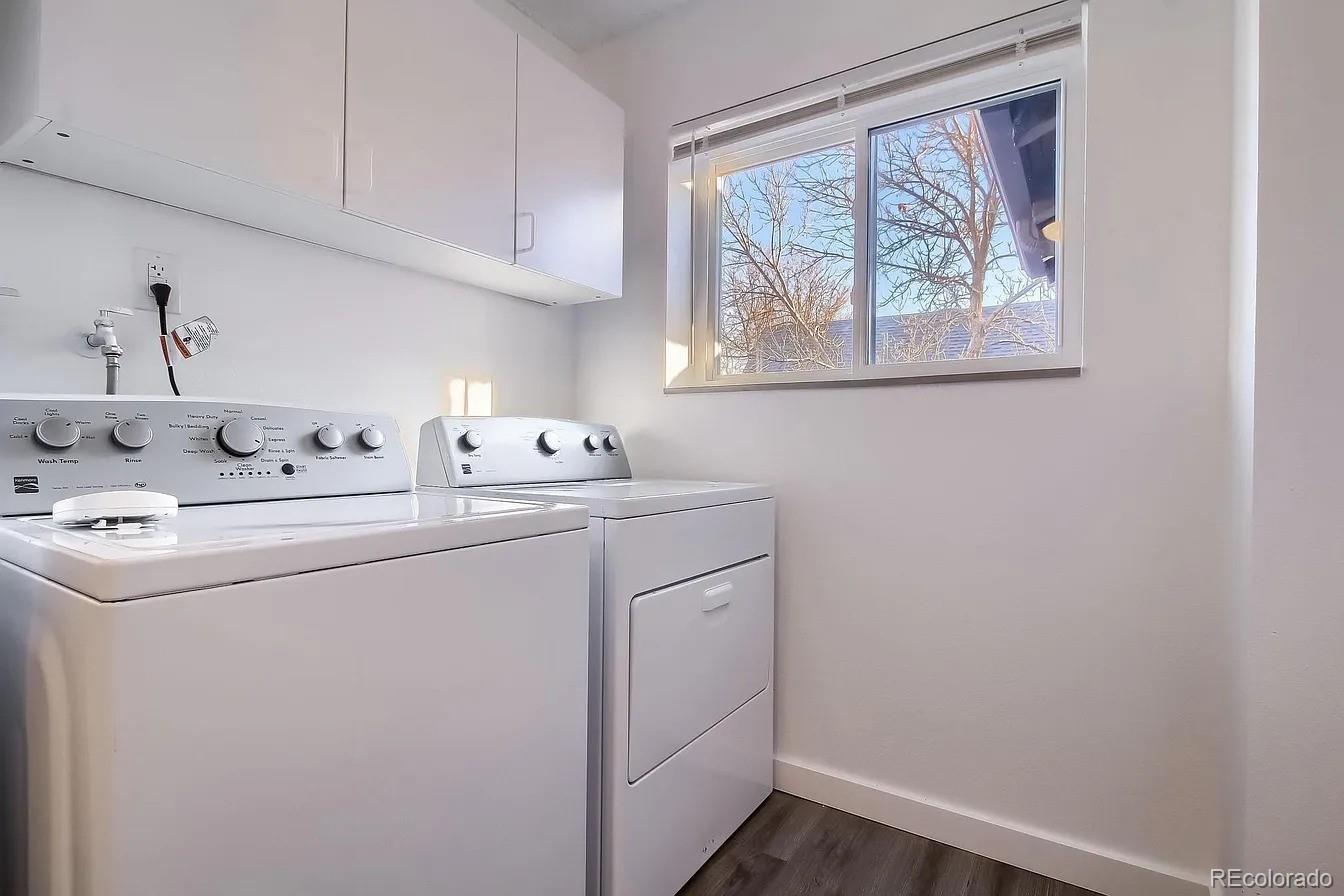 Beautifully updated 3-bedroom, 2-bath townhome offering a perfect blend of comfort, style, and convenience in a quiet, well-kept community just minutes from light rail access. Thoughtfully designed with a main-floor bedroom and full bath, this layout is ideal for guests, flexible living, or a private office space. Step inside to a warm and inviting interior featuring a mix of hardwood, tile, and plush carpet flooring throughout. The heart of the home is the fully renovated kitchen, showcasing elegant quartz countertops, stainless steel appliances, and modern finishes that create a sophisticated yet functional space for cooking and entertaining. Large high-end upgraded windows bring in abundant natural light while improving energy efficiency, and a newer AC system ensures year-round comfort. The home also includes a washer and dryer, making everyday living even more convenient. Outside, enjoy your own private covered yard, perfect for relaxing, entertaining, or creating a cozy outdoor retreat. The property also features a detached two-car garage, providing secure parking and additional storage. Located in a peaceful, desirable neighborhood near light rail, shopping, dining, and everyday conveniences, this home offers easy commuting while maintaining a quiet residential feel. A rare opportunity to own a beautifully updated townhome that combines modern upgrades, flexible living space, and an exceptional location.