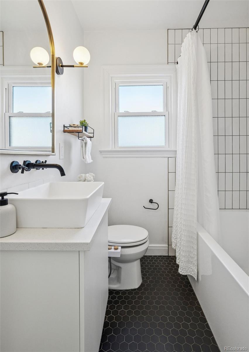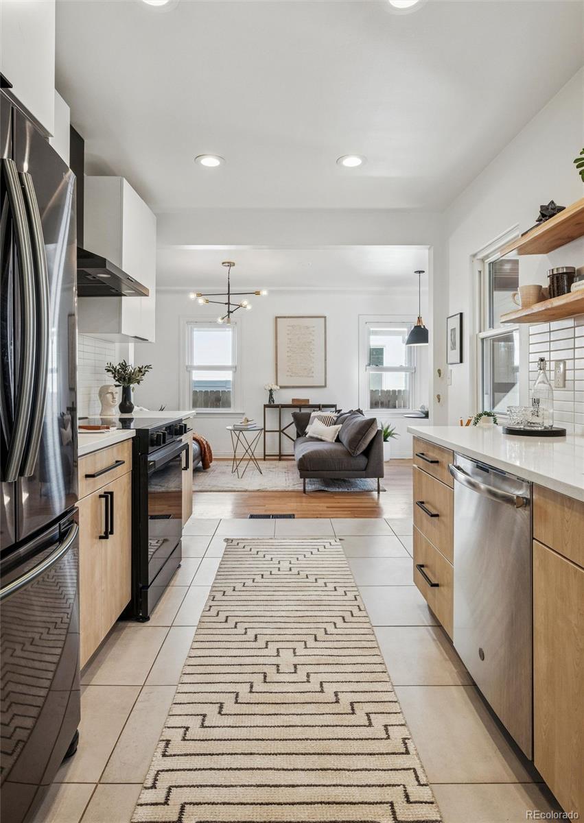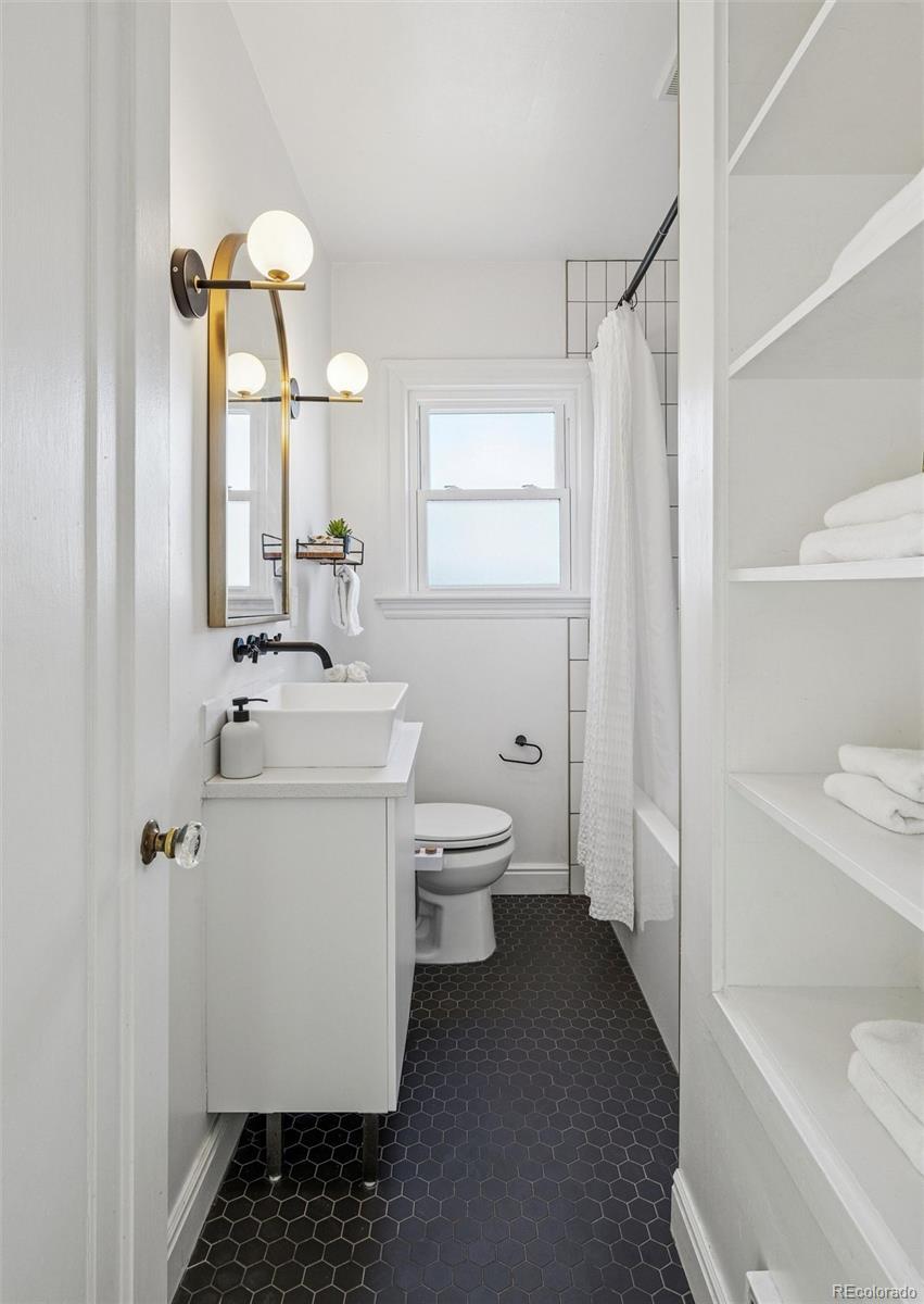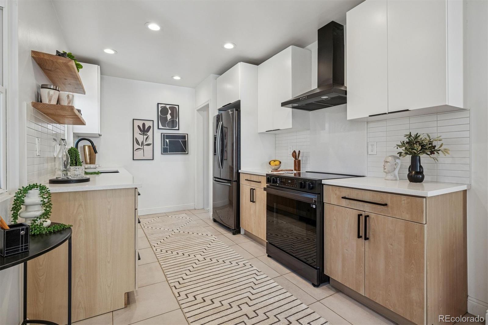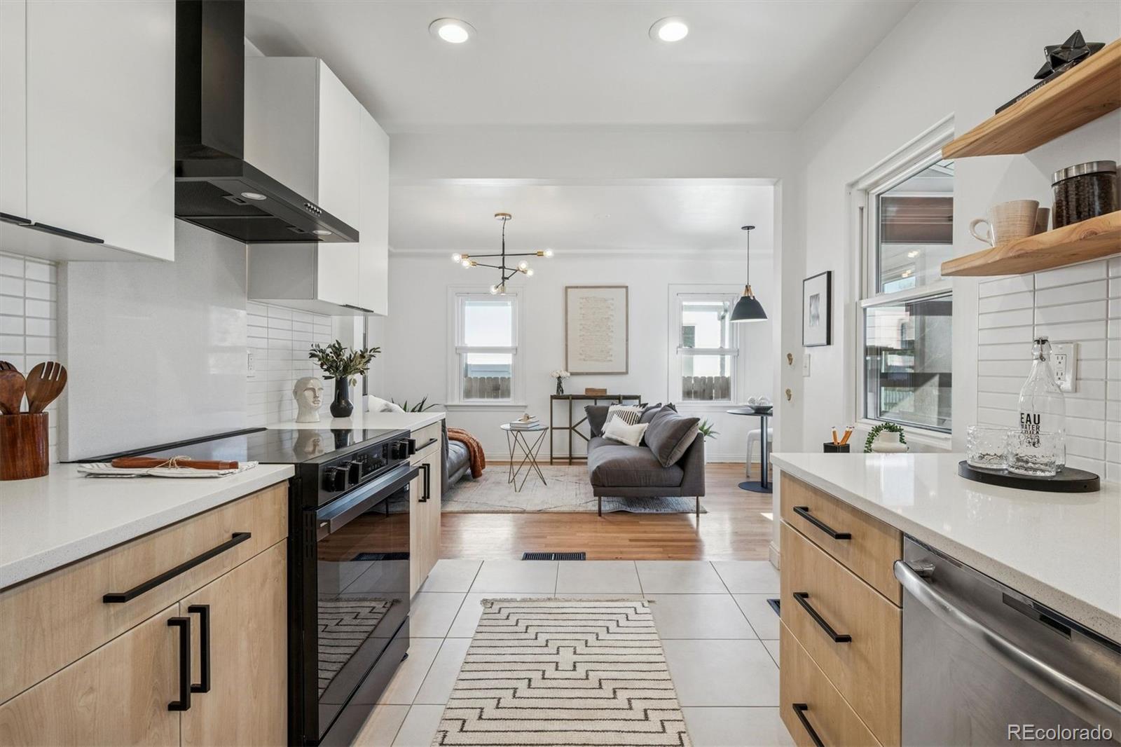 This beautifully updated bungalow is located in the highly sought-after Platt Park neighborhood and offers a thoughtful blend of classic charm and modern design. Originally built in 1941, the three-bedroom, two-bath residence has been carefully refreshed to support both everyday living and entertaining. Original hardwood floors span the open main level, complemented by curated lighting fixtures that add visual interest and character. The living and dining areas flow seamlessly into the kitchen, creating an inviting layout ideal for hosting and daily life. A cozy dining nook provides a welcoming space for meals and casual gatherings. The kitchen serves as a focal point of the home, featuring quartz countertops, European-style cabinetry, stainless steel appliances, and open shelving that balances style and function. The main-floor bathroom includes a vessel sink, statement lighting, built-in shelving, and hexagon tile flooring for a clean, modern aesthetic. The fully finished basement expands the living space with a versatile flex area, guest bedroom accented by wood-plank ceiling details, an additional bathroom, a laundry room, and a dedicated storage closet. Outdoors, the private backyard retreat offers a charming paver patio and a peaceful setting for relaxation or entertaining. Ideally situated less than a mile from neighborhood favorites including Steam Espresso Bar, Uno Mas Taqueria, Izakaya, Kaos Pizzeria, and Sweat Den, this home offers convenient access to some of Platt Park’s most beloved amenities.
