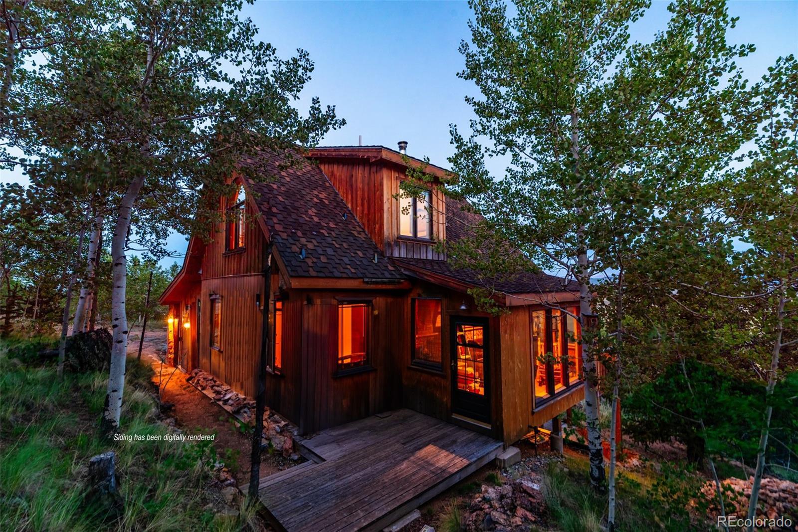 Exquisitely finished by a master craftsman, the interior of this home is a showplace. From the stone finished atrium and sun room in the back, the elegant, rich woodwork and staircases, the curved archways, the crown molding, the wainscoting, to the stone base for the wood stove, the custom finishes go on and on. This is no ordinary cabin. The main level opens to the atrium, the perfect green space to take advantage of the ample Colorado sunshine. A stone archway leads to a great room and spacious kitchen. A bedroom and wainscoted bathroom which is functional as well as beautiful are tucked off to the side. Tile floors throughout and radiant heat will keep you warm all winter. Out the beautiful, custom front door is another sun room waiting for you to turn it into your favorite place to relax. The main level opens to a huge deck, perfect for taking in the stunning mountain and valley views. The upper level is pure bliss, a large bedroom, so warm and inviting, and a luxurious bathroom with a soaking tub. The lower level is a fully finished basement with an additional full bath. A spacious, bright and open living space with a cozy wood stove, plenty of windows, and walk out access can be used as a family room, office space, anything you can imagine. There is also a roomy utility/laundry room to make your life so convenient. This cabin is perfectly designed for family and friends - a mountain getaway or full time residence. The attention to detail in this home must be seen to truly be appreciated. All of this is situated on a 6 acre, beautifully treed lot at the end of a Cul-de-Sac which affords you ultimate privacy with a rolling slope to take full advantage of the massive views. All the power is trenched underground, and the property has a domestic well, so you are free to water outside. There is also an outdoor greenhouse and shed for additional storage. The exterior of the home needs some finishing, but this luxury mountain cabin is more than move in ready.