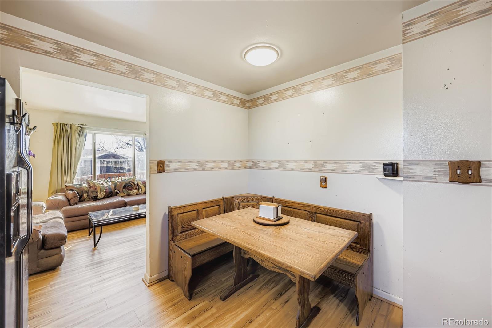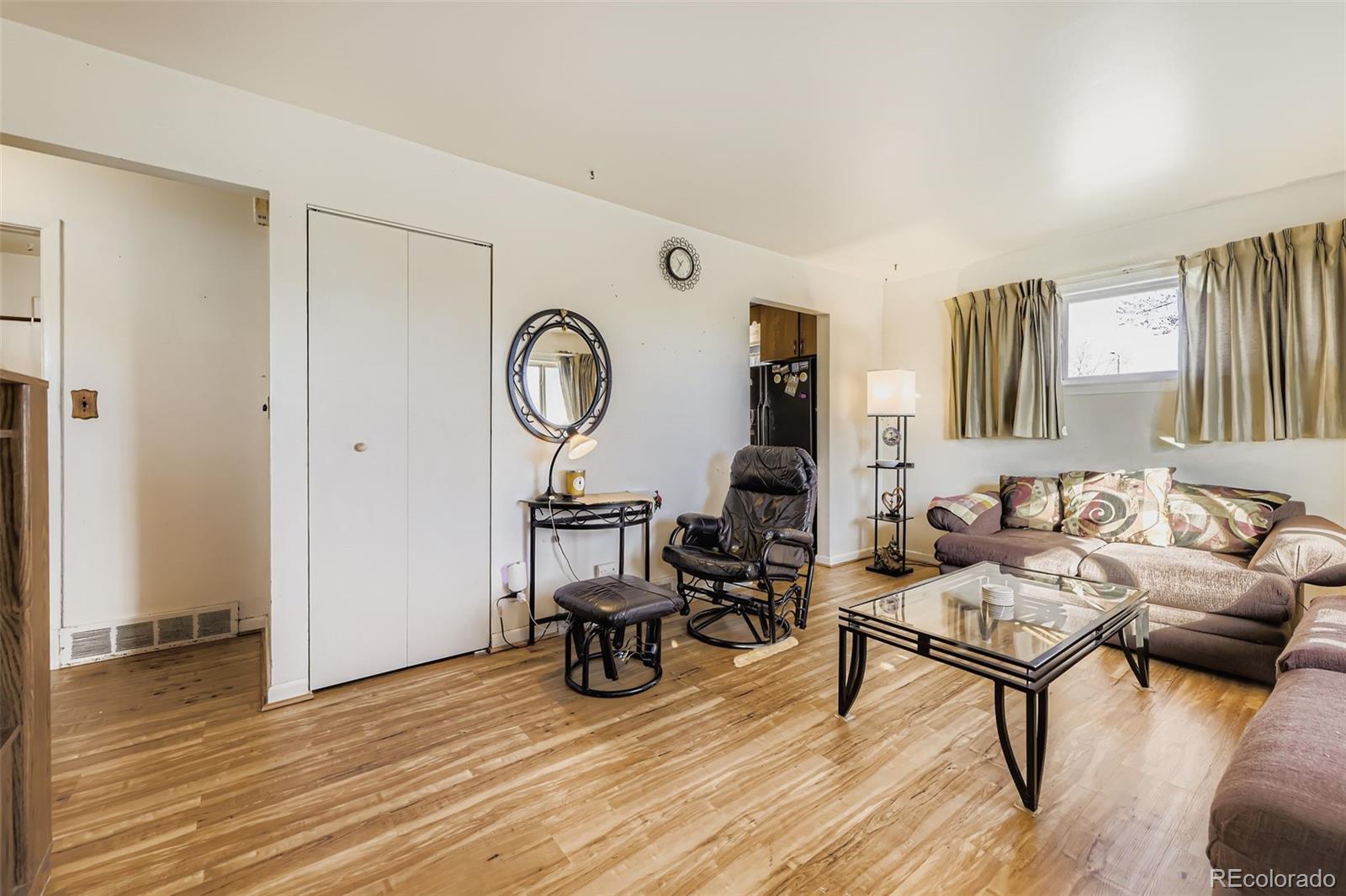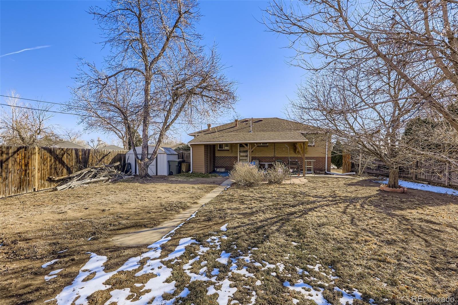 Welcome to 382 Linda Sue Lane, a well-maintained all-brick ranch set on a rare corner lot in the heart of Northglenn with no HOA! The interior is bright and spacious, offering a comfortable layout with new wood flooring and carpet on the main level, abundant natural light, and a welcoming feel throughout. The main floor includes a primary bedroom, an updated full bathroom, and an eat-in kitchen with new flooring, ample cabinet space, and a new stove. The finished basement adds significant flexibility with a large living area, all new carpet, a spacious non-conforming bedroom, and a 3/4 bathroom featuring a new vanity, toilet, and flooring. A generous utility and laundry room provides excellent storage and could easily function as a workshop or hobby space. Outside, enjoy mature trees, a recently stained front deck, and a fully fenced backyard with a covered patio and two storage sheds—perfect for relaxing or hosting. The large corner lot allows for future garage and/or RV parking potential. Additional updates include newer gutters, swamp cooler, new front door and closet doors, and generous storage throughout. The location is outstanding—within walking distance to schools, parks, recreation, shopping, and public transit, with easy access to major highways for convenient commutes to Denver and Boulder.