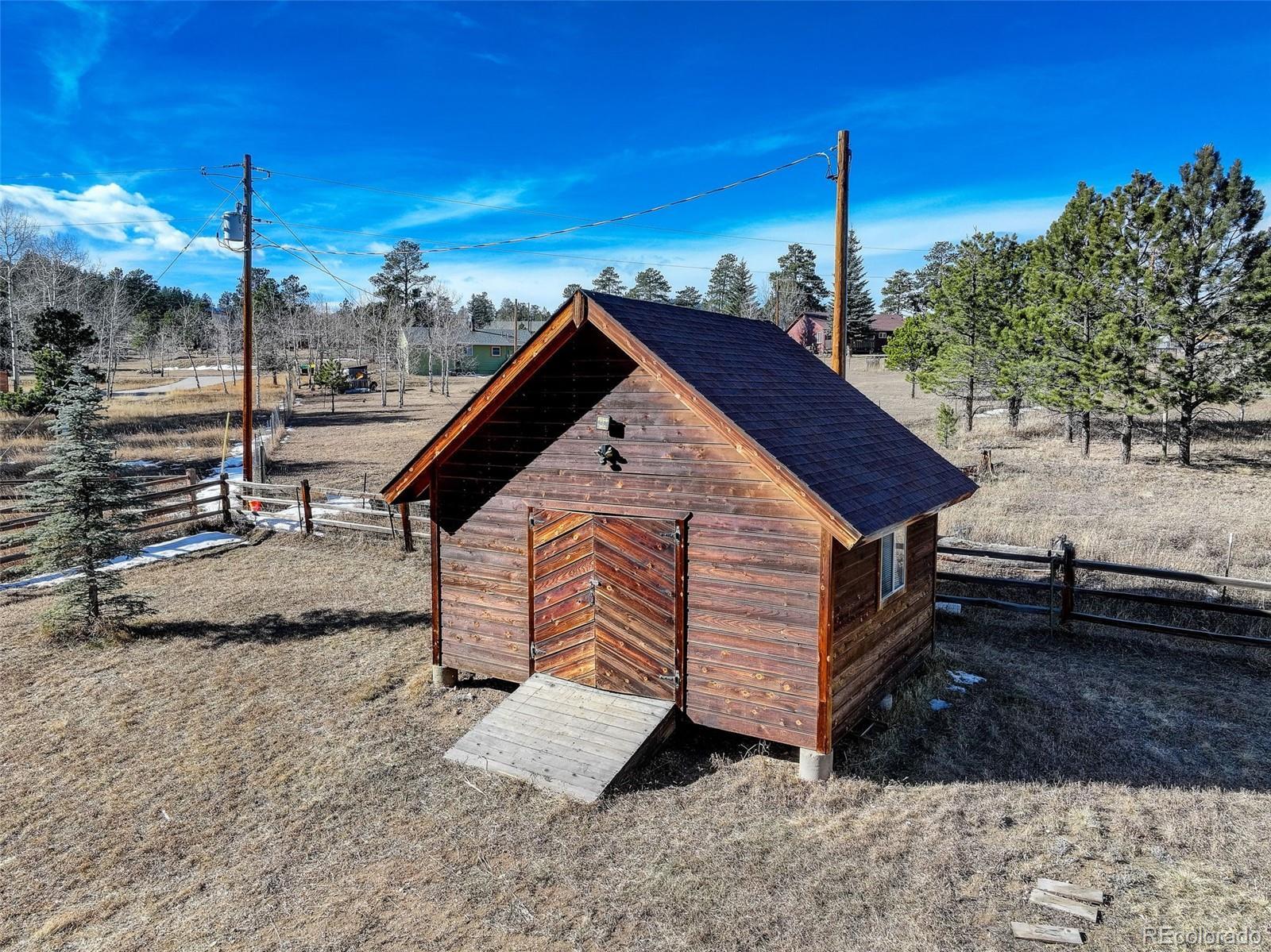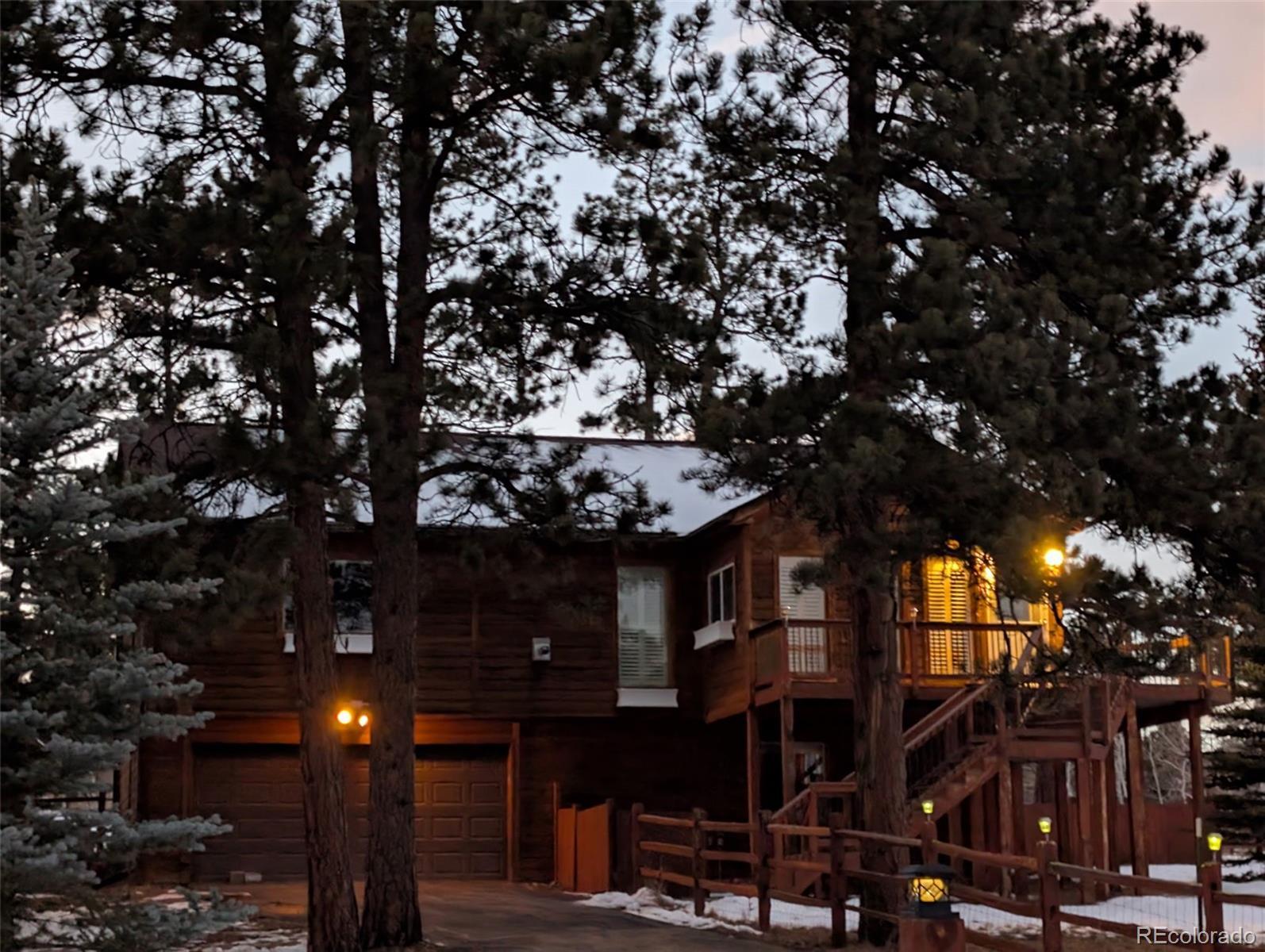 Welcome to mountain living in this 3-Bedroom, 3-Bathroom Raised Ranch style home with sunny southern exposure, where you can enjoy year-round natural light. Far enough to tranquility, yet still close enough to enjoy modern conveniences. This home is just minutes from Highway 285 for easy access to Denver and Conifer. Step into the inviting sunroom before entering the home. The main level features an open floor plan with a spacious living room with vaulted ceilings, seamlessly flowing into the kitchen with stainless steel appliances, an island, a pantry, and opens to the dining area. From the dining area you have direct access to the private back deck—ideal for relaxing or entertaining. The main floor also includes a large primary suite with a five-piece bathroom featuring a jetted soaking tub and a large walk-in closet. A convenient powder room with a laundry closet completes the main level. The garden-level basement offers two additional bedrooms and a full bathroom, providing flexible space for guests or a home office. New carpet throughout. Plantation shutters throughout. This home features multiple heating options, including a gas forced air furnace, a pellet stove, and a mini-split system providing efficient heat in the winter and air conditioning in the summer. Step outside and embrace the true mountain lifestyle with a fully fenced yard and an oversized heated two-car garage offering extra storage for all your outdoor gear and toys. Double gate on side of the home allows for easy access to the back yard. Storage shed with loft. Leaf Guard gutters for reduced maintenance. Private, solar powered electric entry gate. Enjoy privacy from neighbors while being close to a well-maintained, state-plowed highway for year-round accessibility. Surrounded by sweeping mountain views and lots of wildlife. This peaceful setting is just minutes from skiing, hiking, biking, fishing, and camping. This is the Colorado lifestyle you’ve been waiting for.