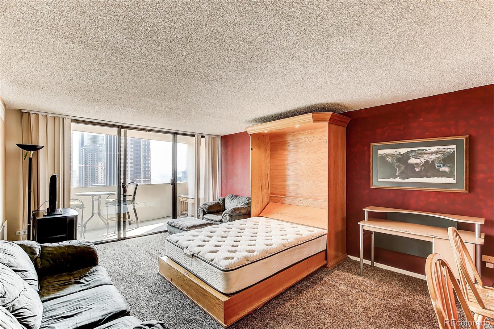 Come live in the best downtown location with amazing city views from your private balcony! This Partially Furnished Studio offers great views and a great location Downtown. The condo includes a murphy bed and light furnishings. Tenant is responsible for electric and internet, parking not included but may be available in the buildings parking garage. There is a 24hr Front desk attendant , keycard secured building and you will have access to 7-11, and Tip Toe nails without stepping outside. The location is one block to the 16th street mall and Denver Performing Arts Center. Beautiful Larimer Square is just 3 blocks away for great dining and shopping. The mall ride is one block away and runs from the Civic Center to Union Station for easy access across Downtown Denver.
