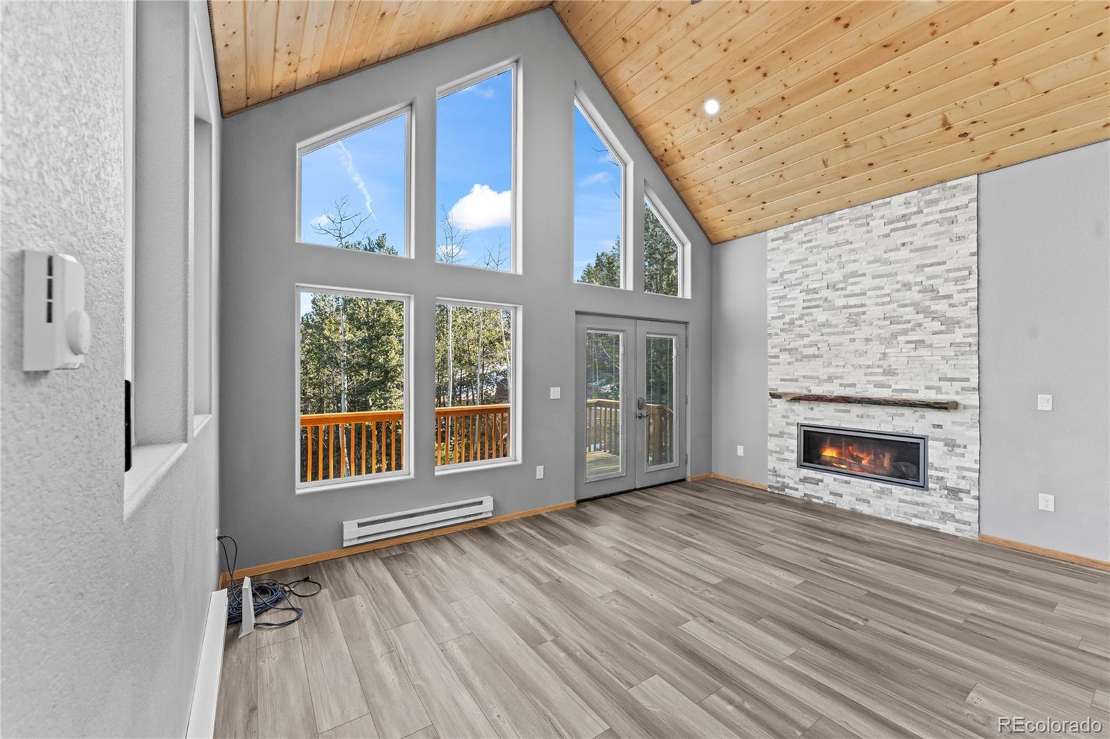 Beautiful Mountain Retreat available now! Built in 2023, this stunning mountain chalet offers the perfect blend of modern comfort and peaceful mountain living. Located close to amenities yet surrounded by a rural, wooded setting, this home delivers the best of both worlds. Upon entering, you’re greeted by an open-concept floor plan with expansive windows that frame the forested views and flood the home with natural light. Soaring wood cathedral ceilings, warm gray and cream tones, luxury vinyl flooring, and a gas log fireplace with floor-to-ceiling stone surround create an immediate wow factor. The main level features a flexible bonus room with an attached 3/4 bath. While this room does not have a closet and is not considered a bedroom, it functions beautifully as a guest space, office, or additional living area. A convenient half bath is also located near the entry. Step out from the main living area onto a private deck—perfect for relaxing and enjoying summer evenings in the mountains. Downstairs, you’ll find two generously sized bedrooms, each with its own attached full bathroom and private entry access. One bedroom offers a walk-out to a secluded patio, while the primary bedroom features sliding glass doors to its own patio space, a spacious walk-in closet, and a laundry hookup for added convenience. With its thoughtful layout, upscale finishes, and close proximity to hiking and outdoor recreation, this home is truly special and offers an exceptional mountain living experience.