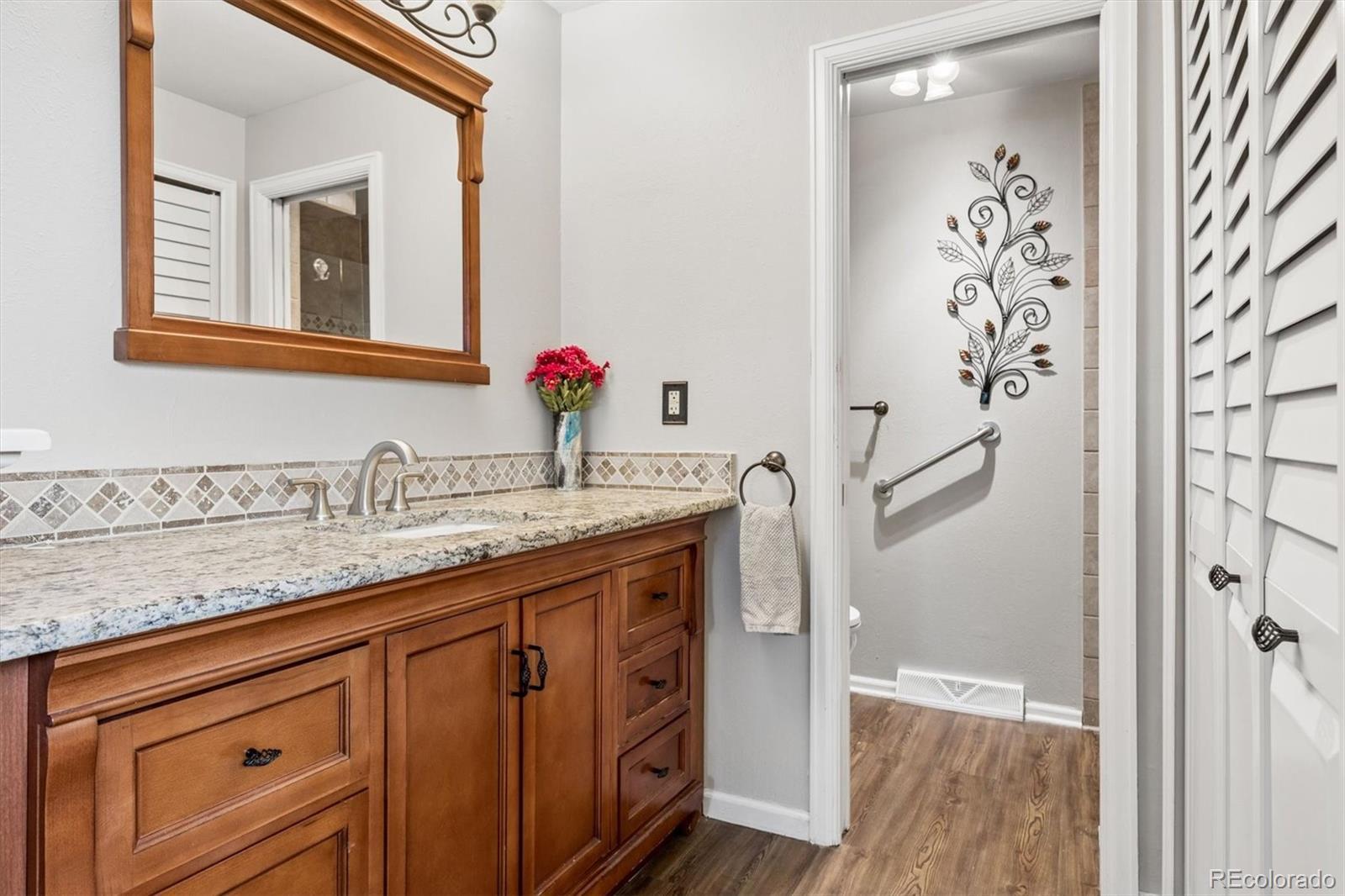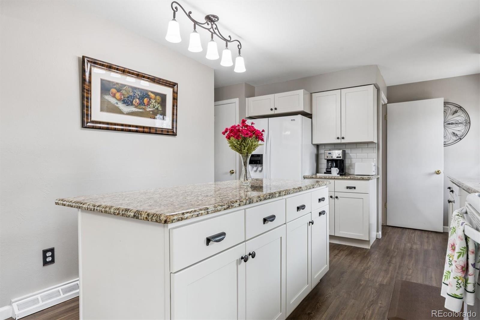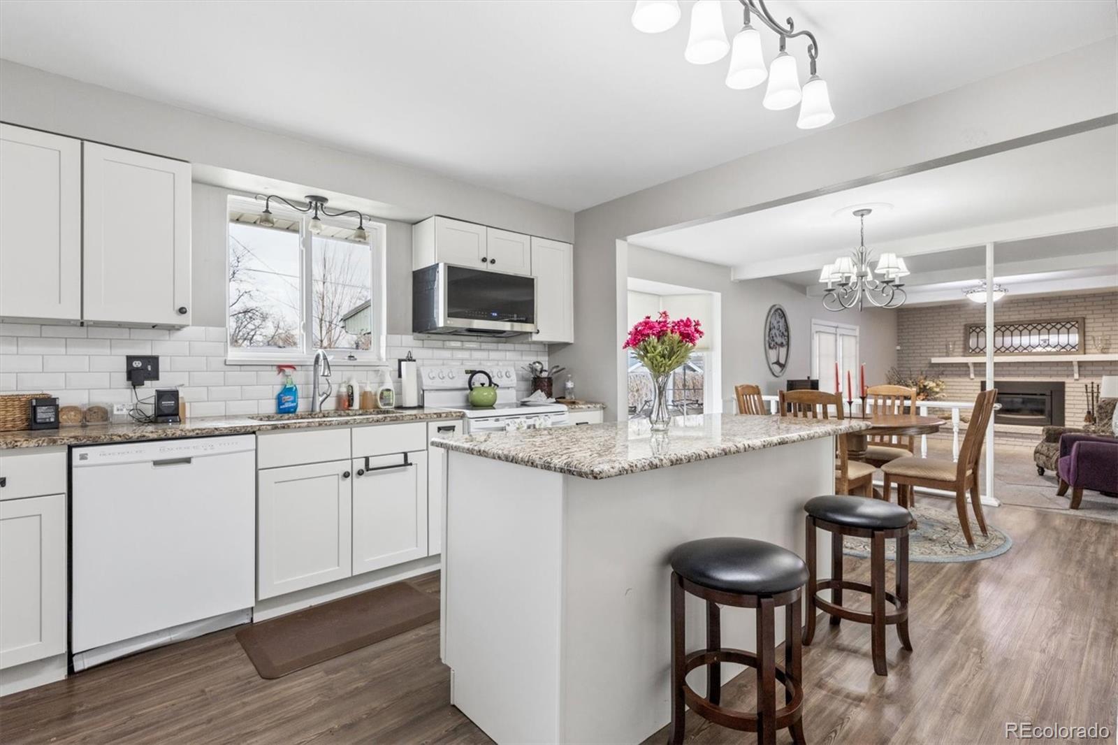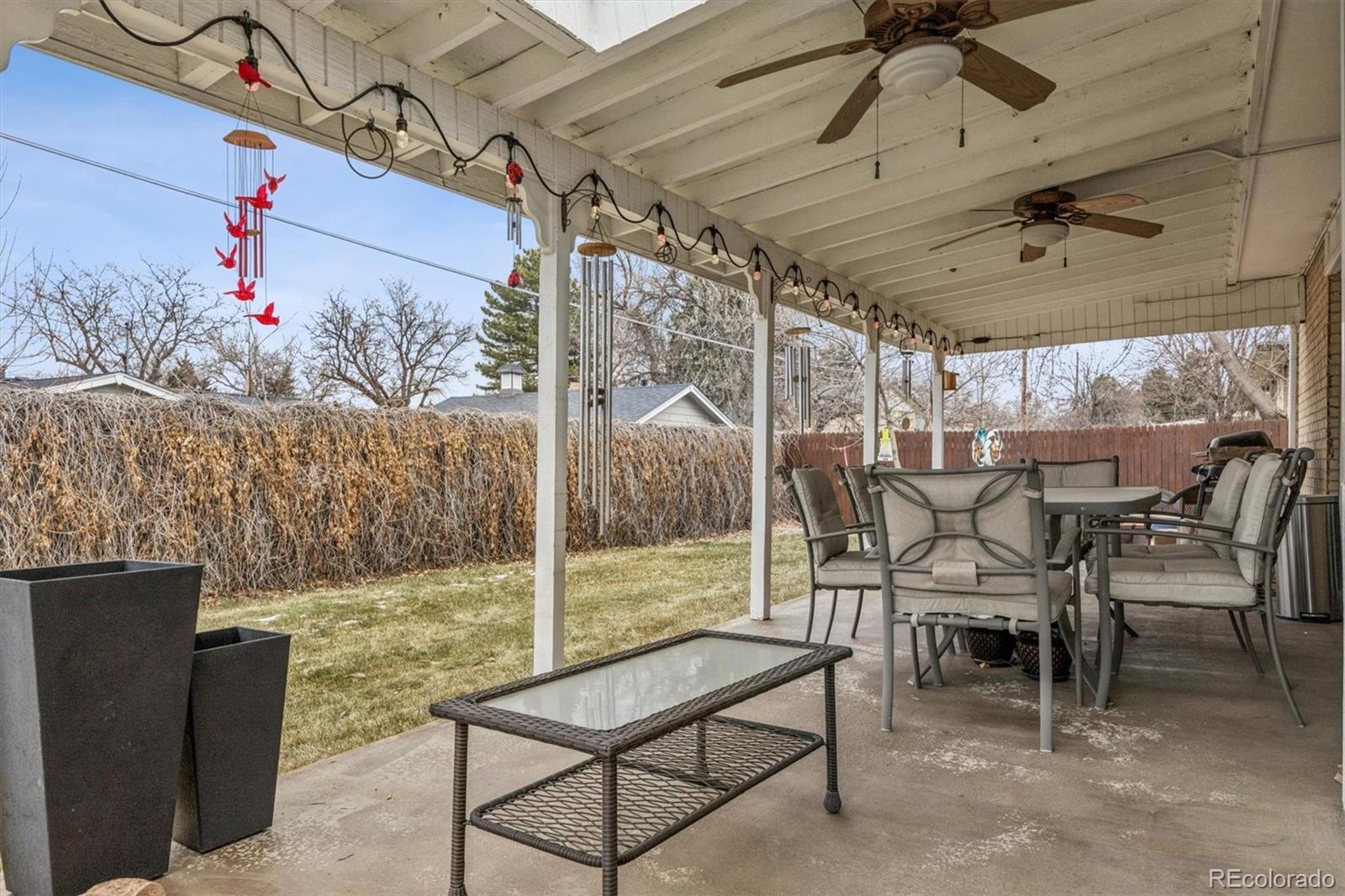 Welcome to this beautifully updated, south-facing ranch home in the heart of the Aurora Hills subdivision. Set on a generous .186-acre lot, this home offers a rare combination of space, updates, and outdoor living—just minutes from Expo Park and Aurora Hills Golf Course. The main level features a classic ranch floorplan filled with natural light and thoughtful details, including a bay window with window seat, French doors, closet organizers, and a cozy family room with a combination gas/wood-burning fireplace. Recent updates include a kitchen remodel including new cabinets, granite countertops, tile backsplash and luxury vinyl plank flooring, blending modern finishes with everyday comfort. The primary bathroom and main level hall bathroom have also been remodeled for your enjoyment. A partially finished basement expands your living space with a dedicated craft room (organizational systems stay), two non-conforming bedrooms with closets, and a stylish wet bar complete with granite countertop, track lighting, and ceiling fan—perfect for hobbies, guests, or entertaining. Outdoor living shines here. Enjoy a private yard with a covered front porch and an impressive covered back patio measuring approximately 9.7' x 30', featuring two ceiling fans—ideal for relaxing or hosting gatherings. A backyard shed adds extra storage, while the two-car attached garage includes an insulated door, opener, exterior keypad, and built-in shelving, plus a full driveway for additional parking. Located in the Cherry Creek School District, this move-in-ready home offers comfort, flexibility, and location; an exceptional opportunity in one of Aurora’s most established neighborhoods.