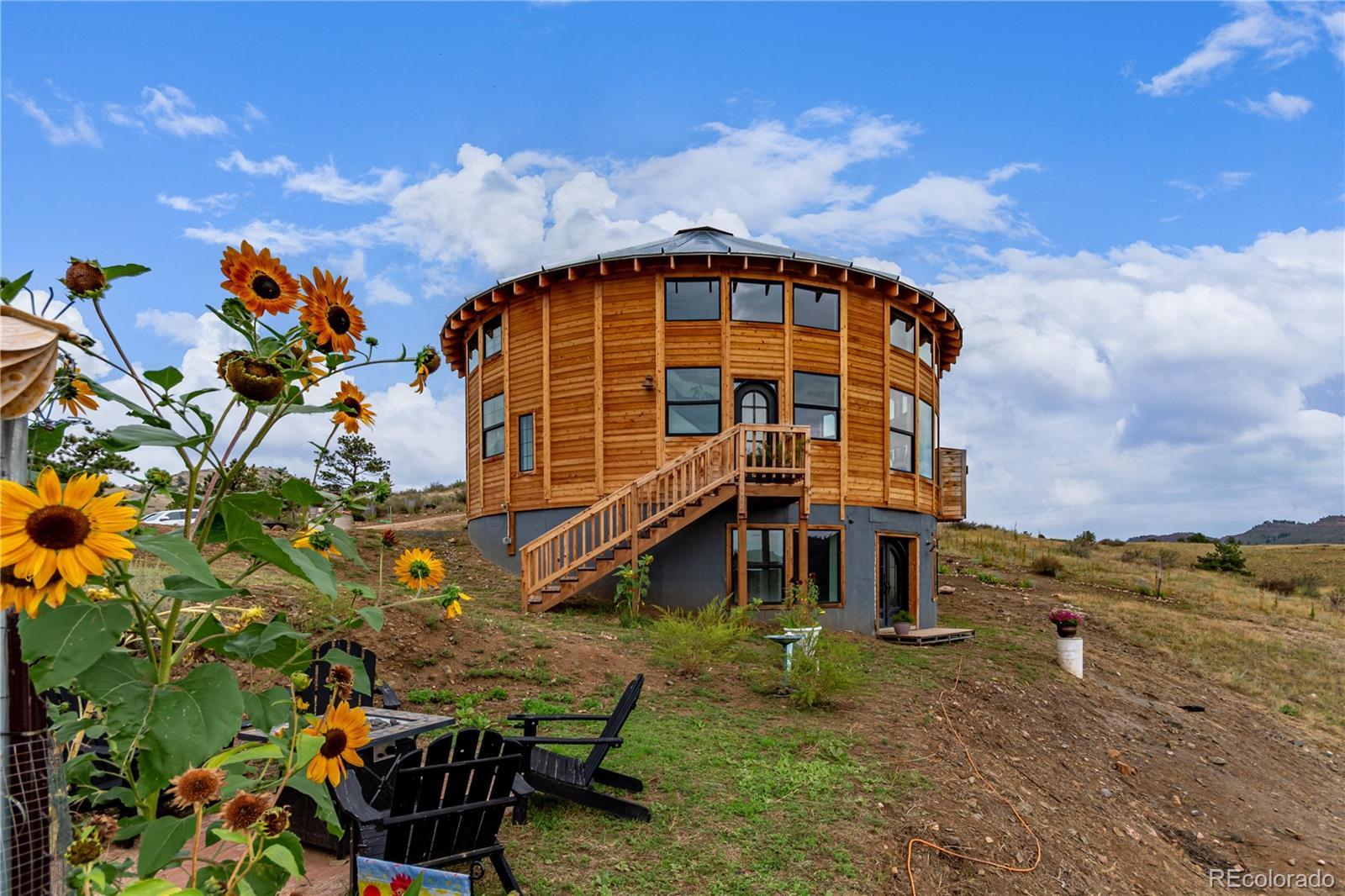 Experience unparalleled tranquility on this 35-acre mountain Elk Run Estates! Nestled just 11 miles from Boulder, this secluded gem is surrounded by the canyons and the majestic Rocky Mountains, offering 360° panoramic views. A rare and exclusive parcel of land/ horse property in the charming city of Lyons, which has a potential of building a second dwelling on it. *** Custom built in 2024 with top-notch interior finishes, including chef’s kitchen with custom cabinets and ZLINE Autograph Appliance Package - 48 Inch Gas Range, Range Hood, Dishwasher, Refrigerator in Black with Champagne Bronze Accents. Upgraded engineered floors throughout the main floor and the basement. *BLACK DIAMOND IRON DOORS $22,000. ***Energy Efficiency Entire House e3 Power *New well and septic tank. Perfect round floor plan construction for the best wind sustainability - Engineered Roof & Walls Sheathing for winds @160 MPH ***ADDITIONAL INCLUSIONS & FEATURES: Work Shed, Steam Shower Wire Prep, Gas Fireplace with remote temp control, 2 wired for 220 Volt outside, RV electric hookups, RV waist hookup, 2nd build pad, back-up propane generator, Roofing material for patio covering - on site, engineered roof trusses for garage - on site. ***2025 improvements: new-built deck on the back of the house and front landscaping improvements ***The dirt road is maintained year round by the city, which provides access to the property. *** Perfect as a vacation retreat or a serene haven for a family seeking complete privacy and a peaceful lifestyle. ***