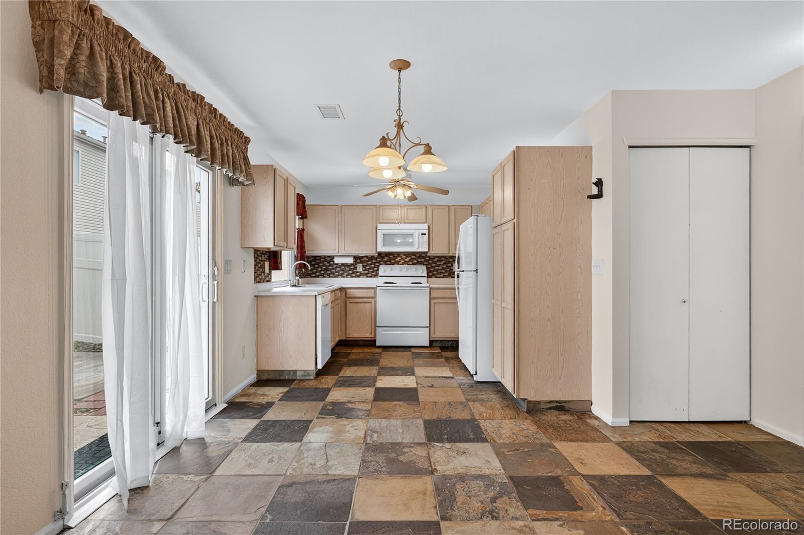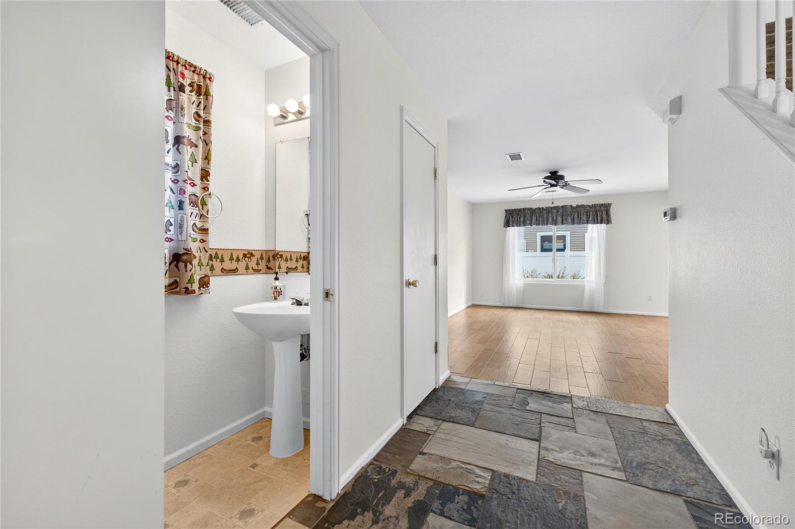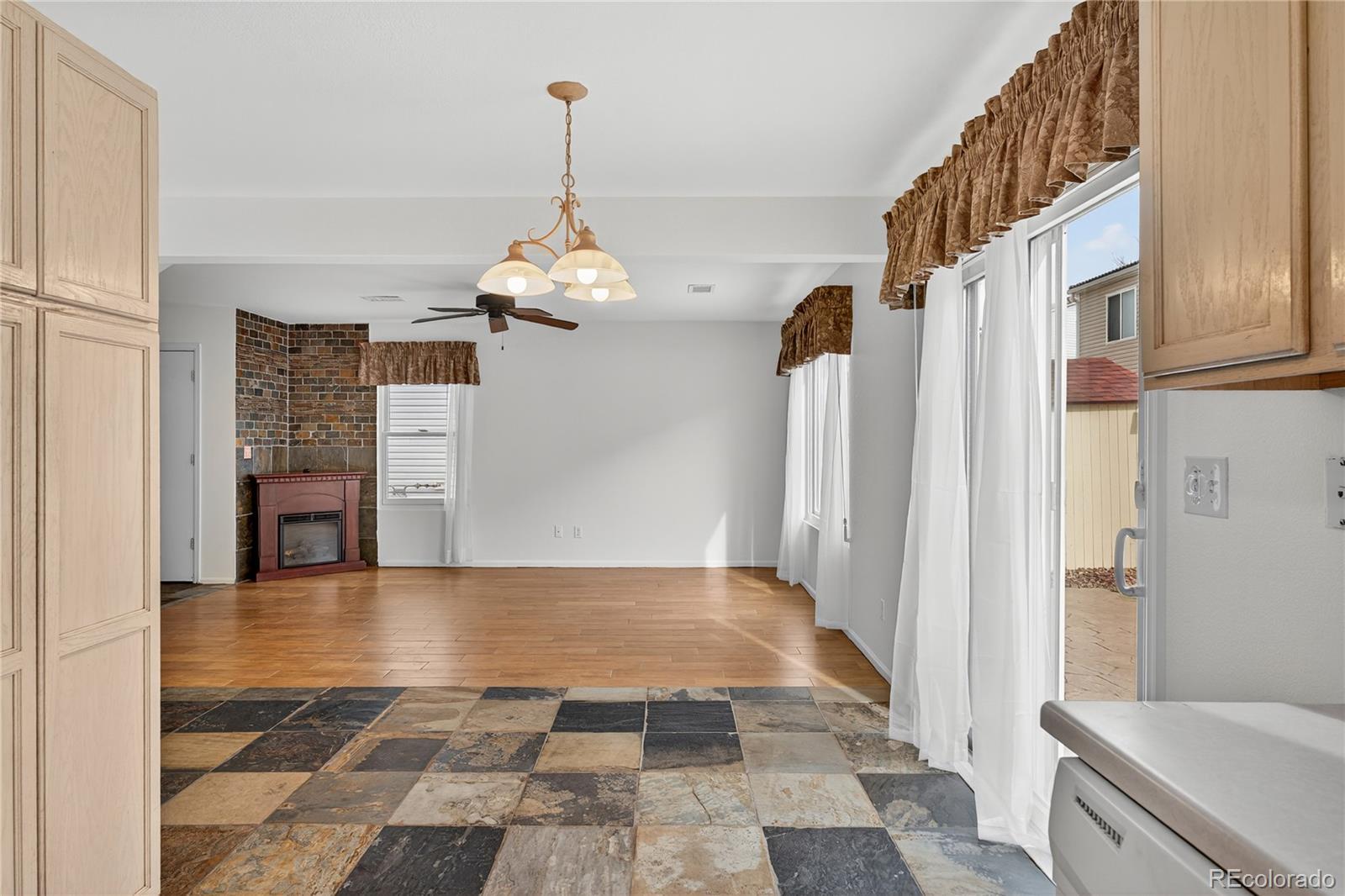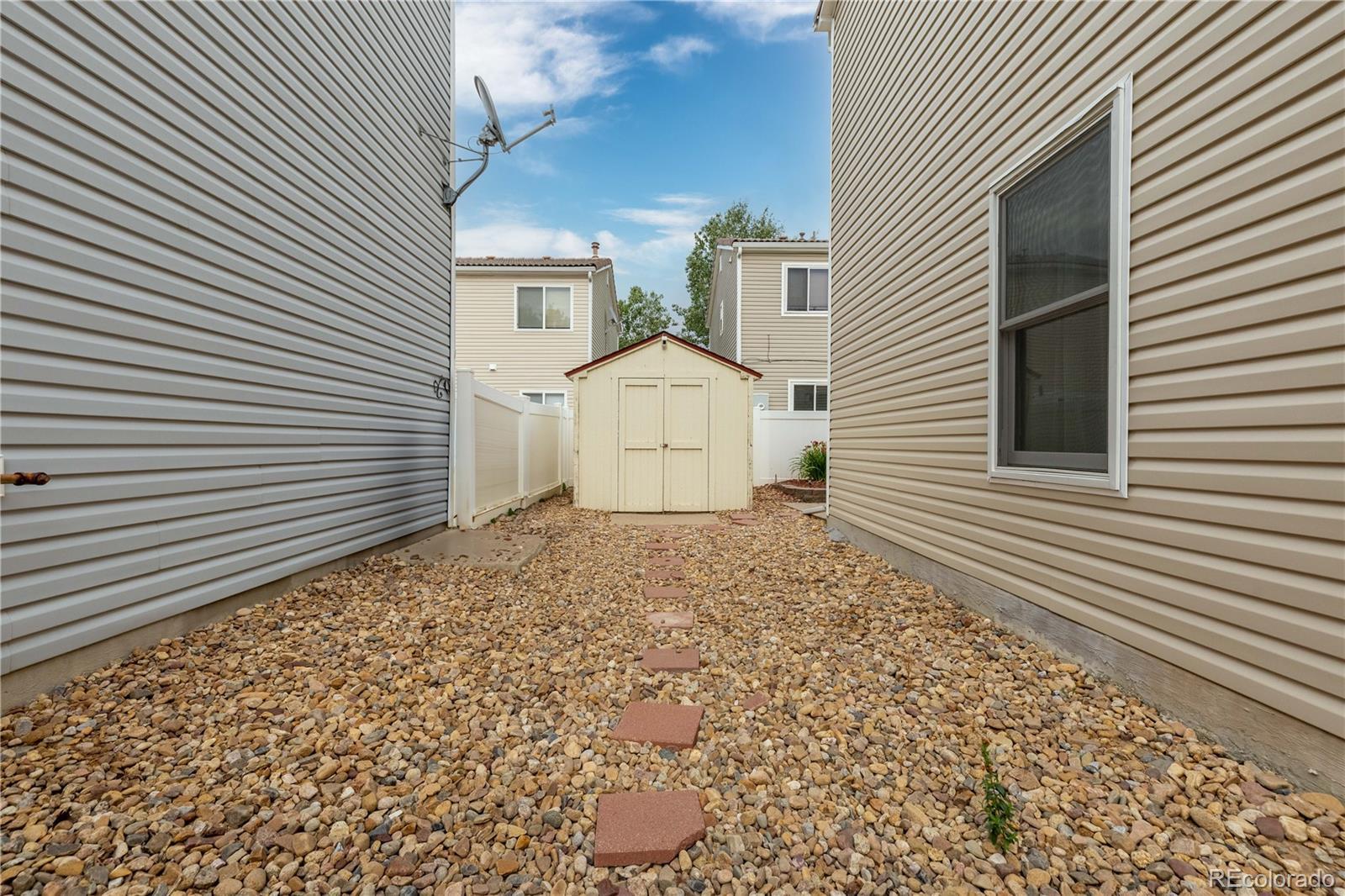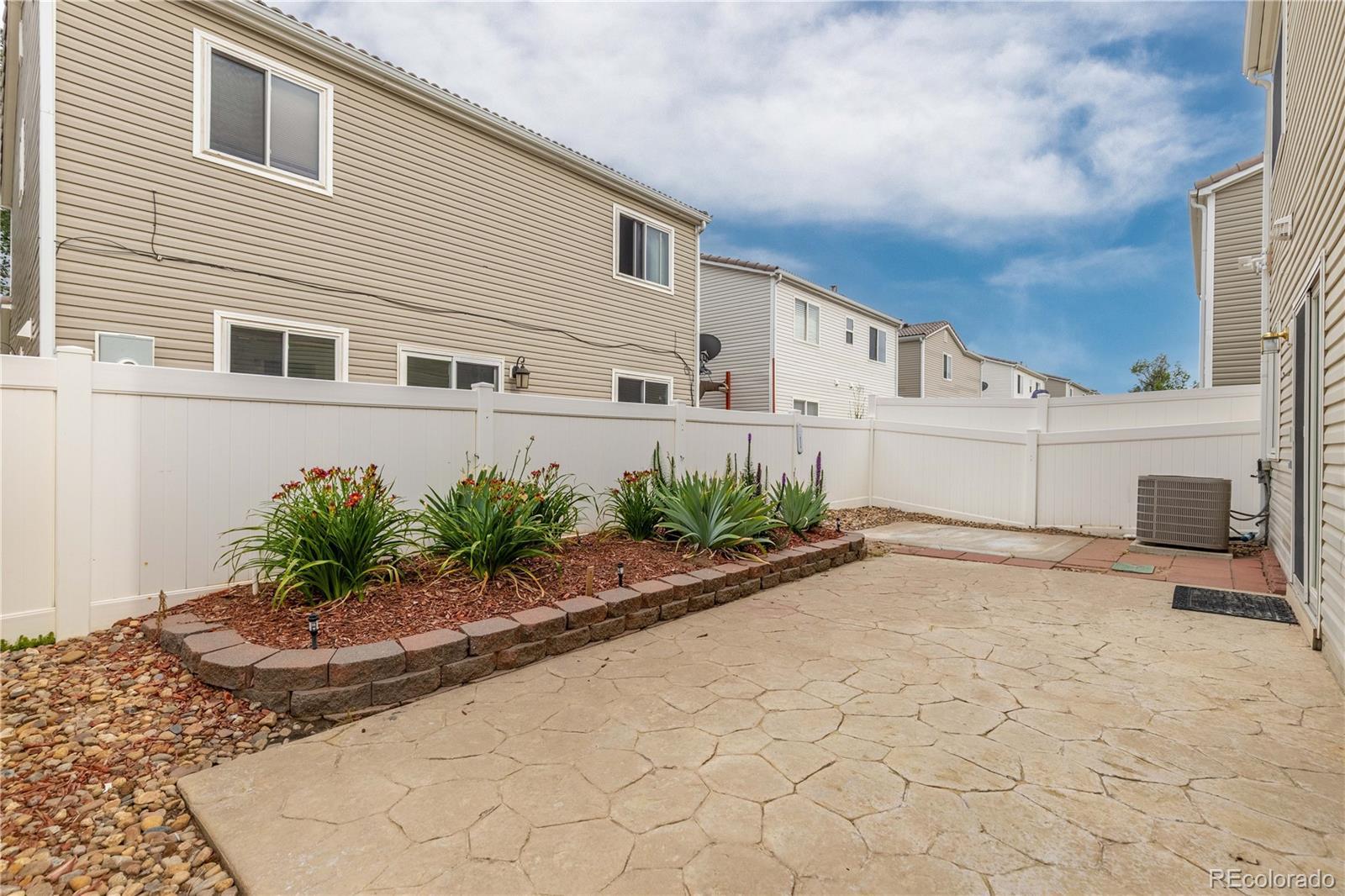 Welcome to this beautifully maintained residence in Denver’s vibrant Green Valley Ranch community. A charming front porch accented by garden boxes offers a warm welcome and sets the tone for the thoughtfully designed interior—perfect for both everyday living and entertaining. The open-concept main level showcases durable wood tile and slate flooring throughout, with spacious living and dining areas that connect seamlessly to the kitchen. The kitchen features Whirlpool appliances, a highly functional layout, and sliding glass doors that open to a sunny back patio, creating effortless indoor-outdoor living. A convenient powder room and direct access to the attached two-car garage complete the main floor. Upstairs, a versatile loft provides flexible space ideal for a home office, media room, or play area. The generous primary suite includes a walk-in closet and private en-suite bath, while two additional bedrooms and a full bathroom offer comfortable accommodations for family or guests. A dedicated laundry area includes a matching Whirlpool front-loading washer and dryer for added ease. Outside, enjoy a fully fenced backyard with low-maintenance landscaping, colorful flower beds, a relaxing patio, and a storage shed for added functionality. Ideally located with easy access to Denver International Airport, major highways, shopping, and dining, this move-in-ready home offers comfort, convenience, and modern living in one of Denver’s most sought-after communities.