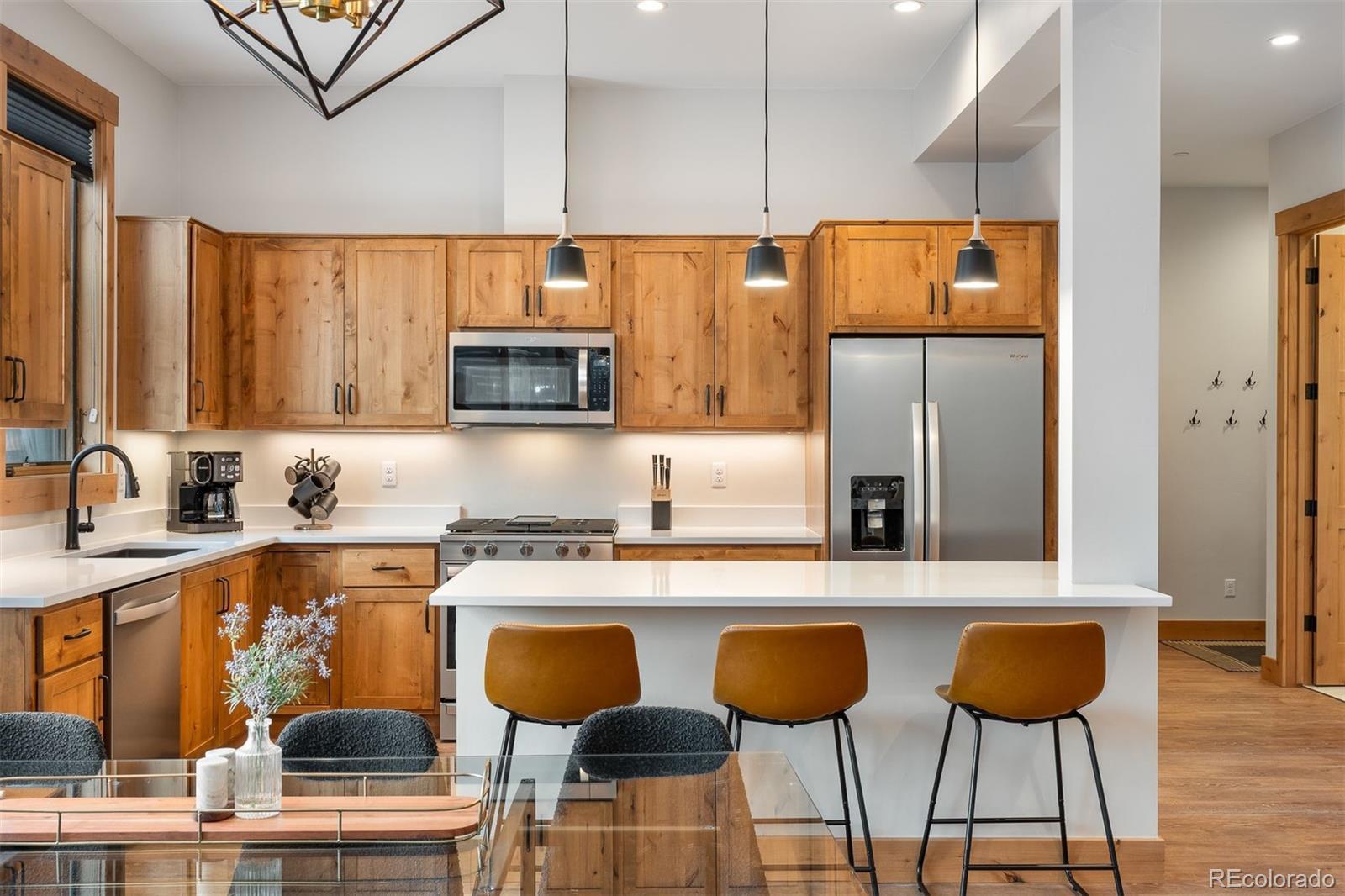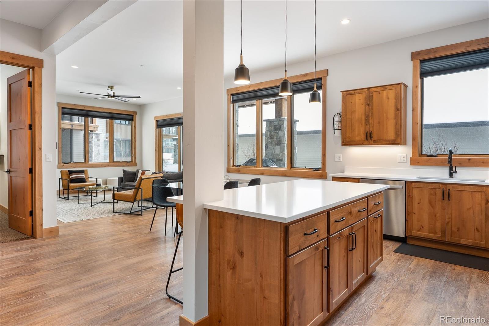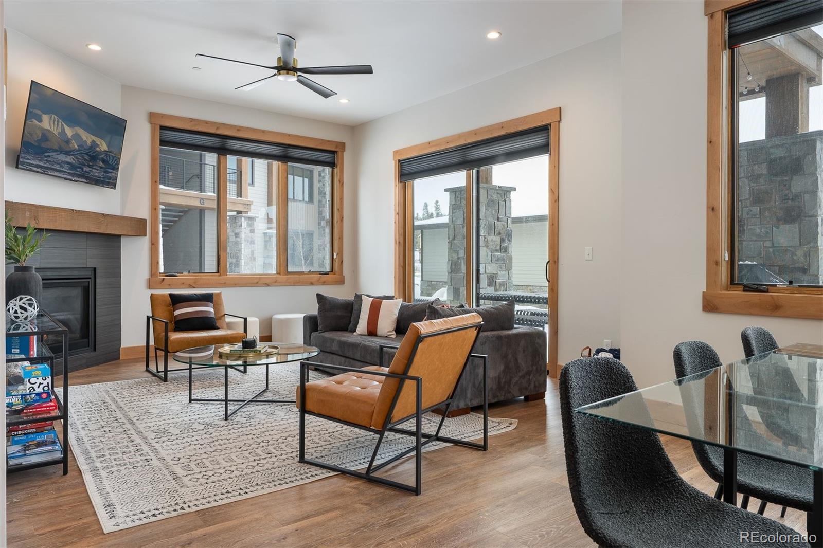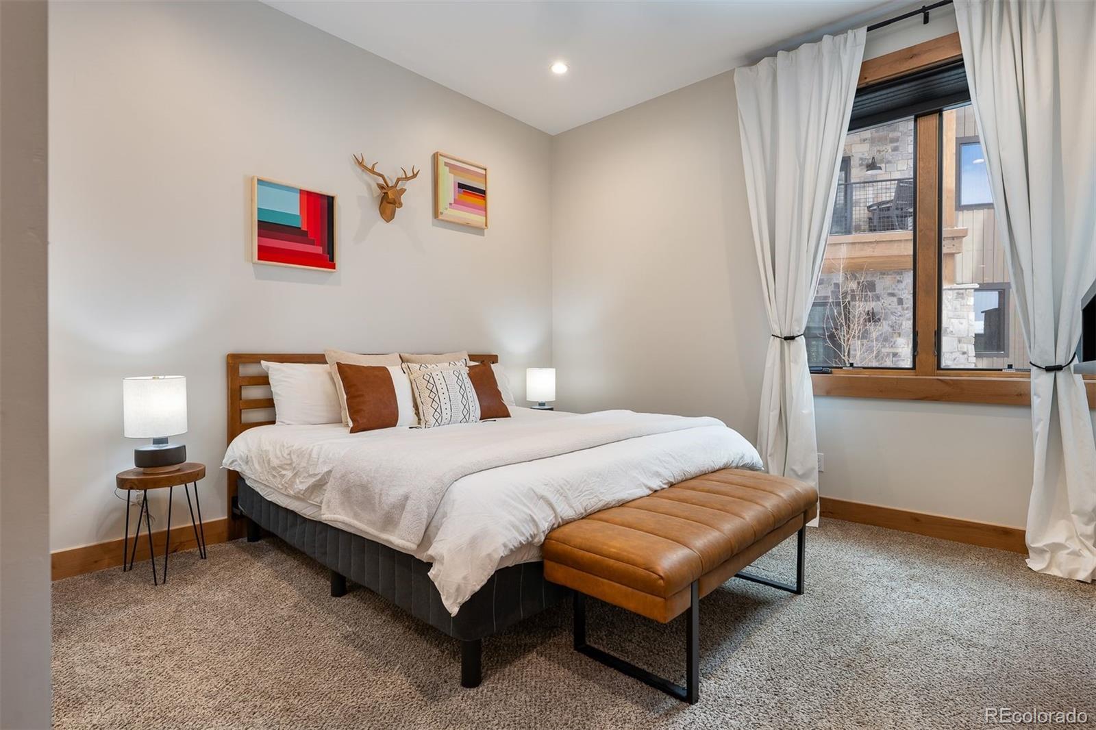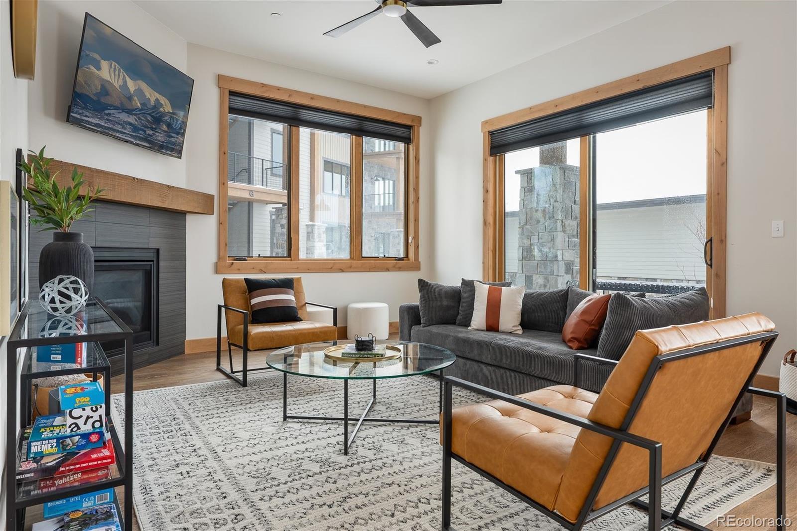 Fully furnished 3-bedroom (one non-conforming) luxury condo in Grand Park! A sought-after community known for its easy access to a variety of amenities including the Rendezvous event center at Hideaway Park, restaurants, shops, movie theatre, bowling, recreation center and complimentary shuttle just steps from your door. This unit offers a highly desirable floor plan with two bedrooms plus a den, currently serving as a third bedroom/bunk room. The layout is optimal for entertaining with a spacious kitchen, featuring an oversized quartz island, and formal dining area. Adjacent to the kitchen resides a comfortable living room with a gas fireplace and access to the wrap-around patio. The generous outdoor space is ideal for grilling, with a built-in gas line, and relaxing after a day of recreation in the private hot tub. A convenient ski locker, located outside the front door, completes this perfect mountain getaway! Garage available for purchase.