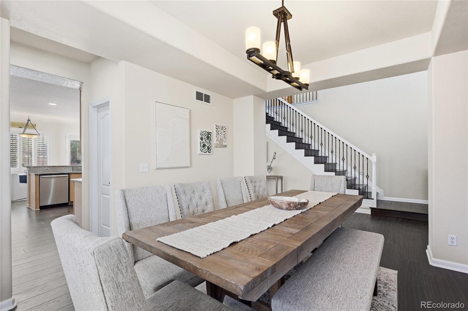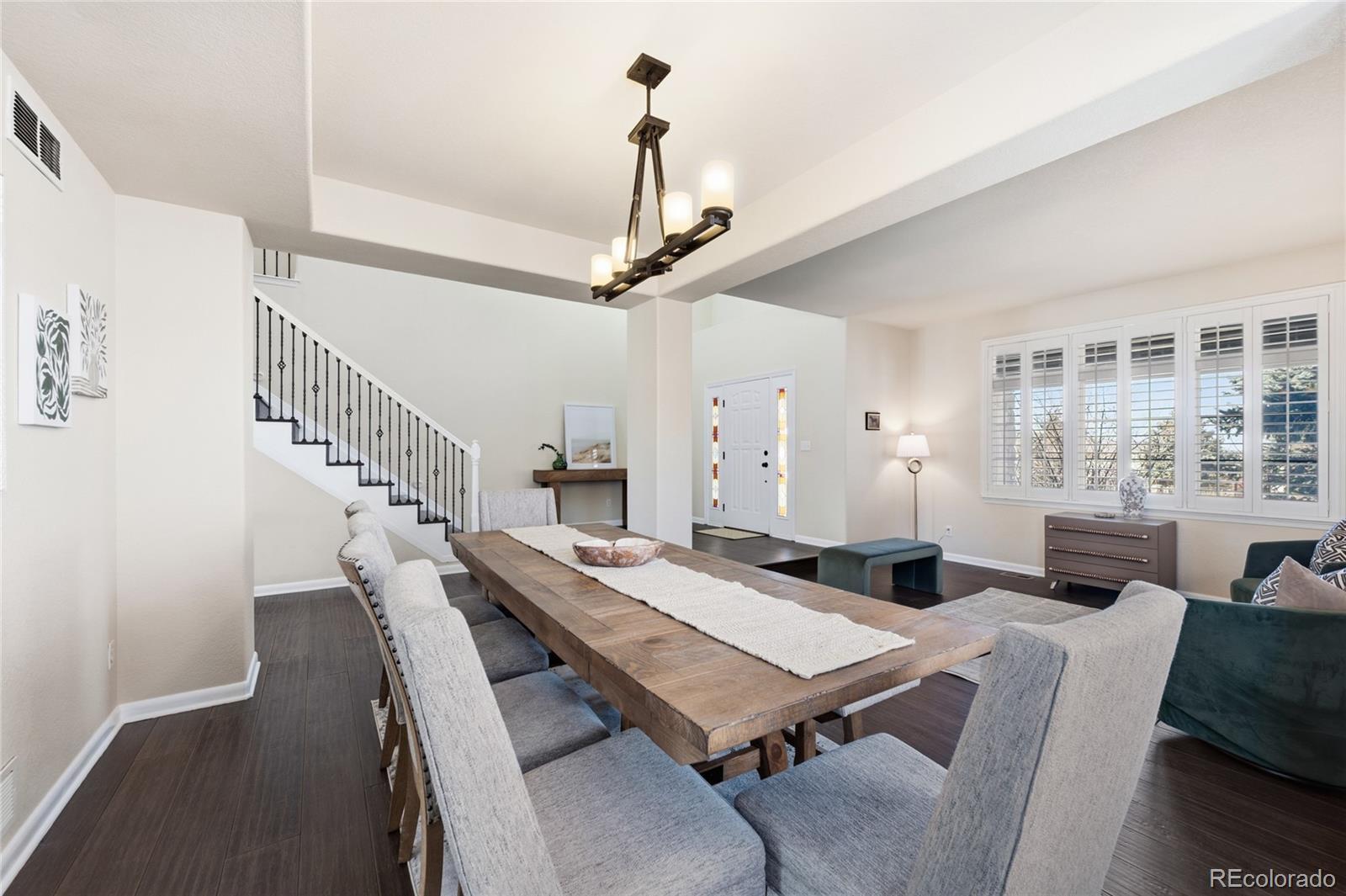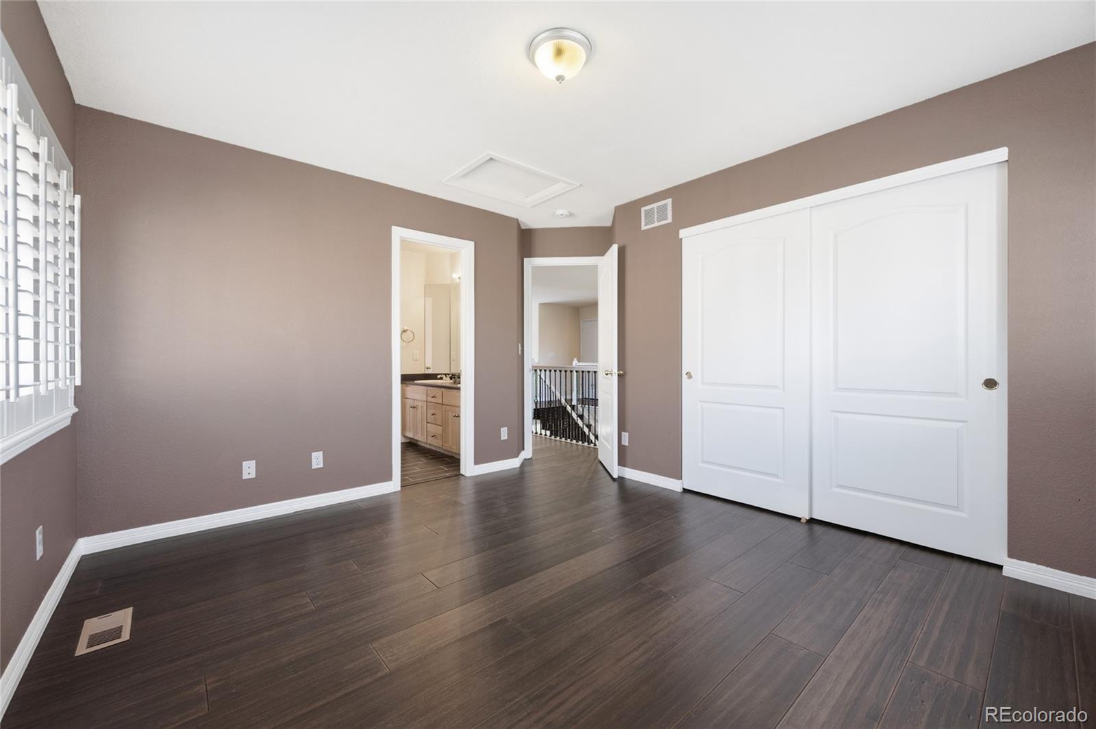 Welcome to this well-maintained home in the highly desirable Saddle Rock community of Aurora. Located near the Saddle Rock Golf Course, this property offers convenient access to recreational amenities, and a neighborhood park is located just across the street with nearby mailbox access. Situated within the Cherry Creek School District, this residence offers a functional layout with thoughtful features throughout. Upon entering, you’ll find plantation shutters, abundant natural light, and an inviting main-floor living and dining area. The pantry hallway provides extensive storage, and the open kitchen and family room create a comfortable space for daily living. The main-floor primary bedroom offers convenience with a spacious walk-in closet and private en-suite bath. The laundry room and mudroom are located nearby for easy access. The upper level includes three additional bedrooms, a Jack-and-Jill bathroom, and a generous loft suitable for a variety of uses such as an office, play area, or additional living space. The flagstone patio leads to a spacious backyard, offering room for outdoor enjoyment. Additional highlights include an open main-floor layout, a well-appointed kitchen, and close proximity to parks and community amenities. The unfinished basement provides an opportunity to create a recreation area or expand the living space to meet future needs.