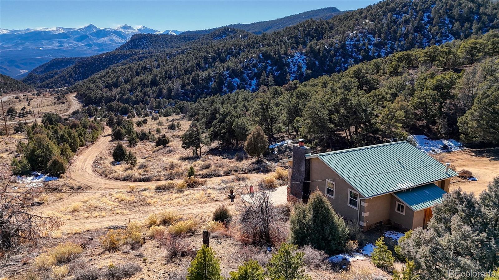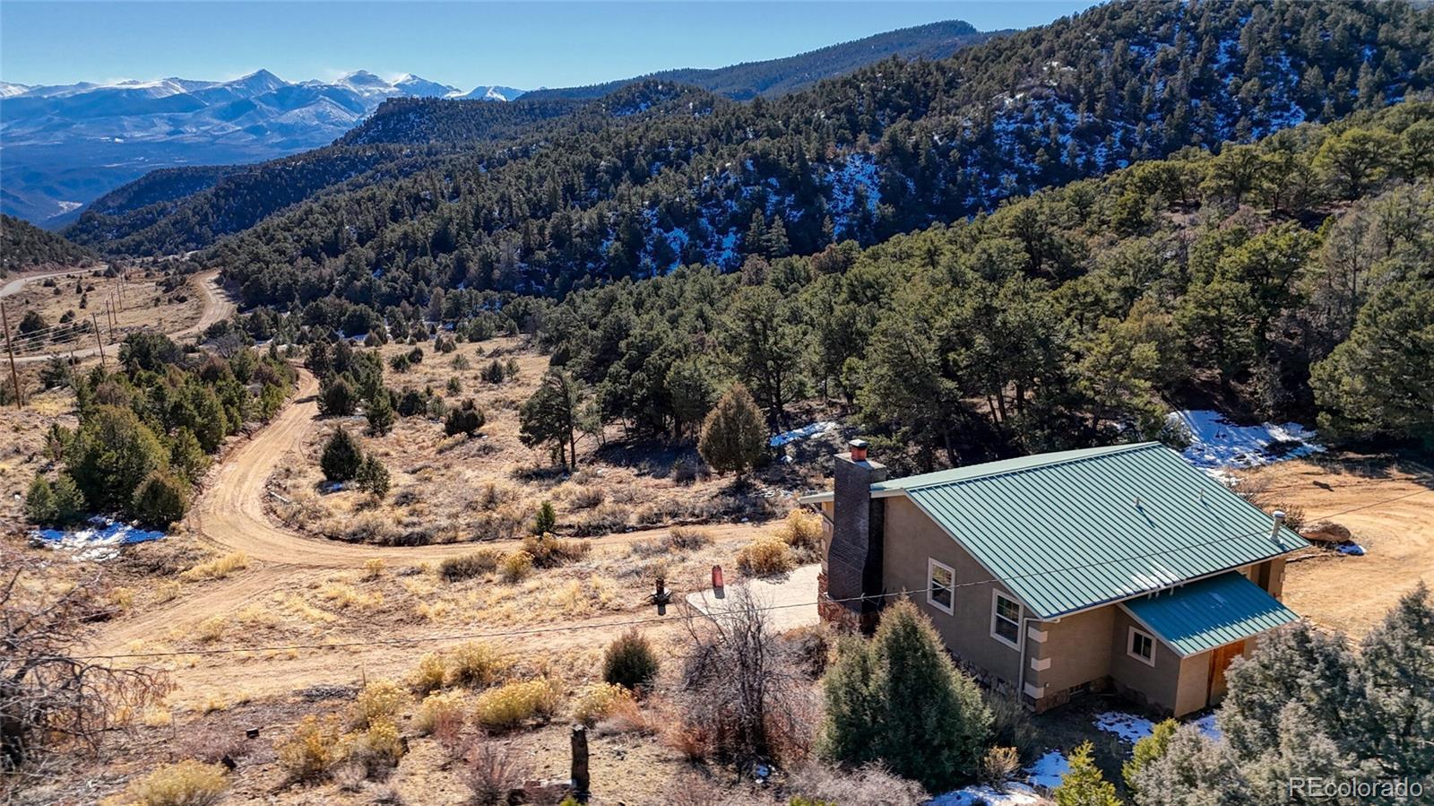 Experience breathtaking, ever-changing views of the Sangre de Cristo Mountains from this fully remodeled, private retreat set on 15 acres with direct access to surrounding BLM land. Peaceful, secluded, and rich with natural beauty, this property offers a rare blend of modern comfort and true mountain living. The newly updated home features new flooring, fresh interior paint, solid wood doors, updated electrical, and a newer boiler and hot water heater, ensuring both style and efficiency. The main level offers an open kitchen, living, and dining area, a inviting living room with a wood-burning insert, one bedroom, and a full bathroom. Step outside onto the spacious deck and take in the views—colorful sunsets, brilliant blue skies, and dramatic cloud formations that change daily. Wildlife is abundant, with sightings of hummingbirds, deer, bobcats, and the occasional bear, adding to the property’s serene, nature-immersed atmosphere. The walk-out basement is a private master retreat facing south to frame the stunning views. It includes in-floor heating, a custom ¾ bathroom, and a large walk-in closet. A spacious third bedroom also faces south for optimal views, along with a bonus room ideal for secure storage or flexible use. An attached 14x7 storage room with a 220V outlet is perfect for a deep freezer or additional equipment. Completing the property is a huge detached shop (approx. 24 x 36 ft/ 864 square feet) with space for six or more vehicles, ideal for hobbies, storage, or workspace. Built for comfort and efficiency, the home stays cool naturally without air conditioning, and propane usage is so minimal it typically requires refilling only once per year. This is a one-of-a-kind mountain haven offering unmatched privacy, unbeatable views, and modern upgrades throughout. Don’t miss the opportunity to own this extraordinary retreat.