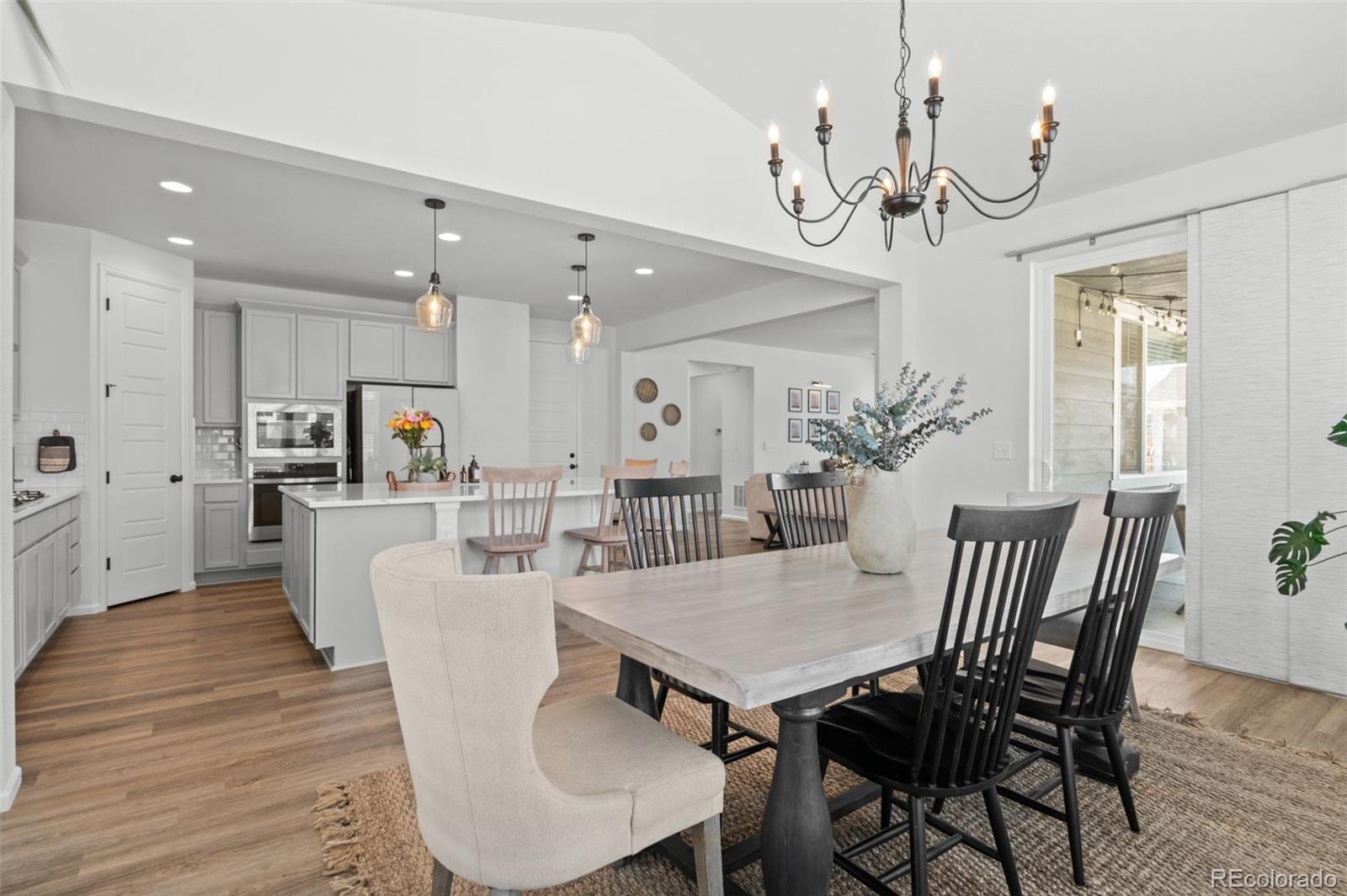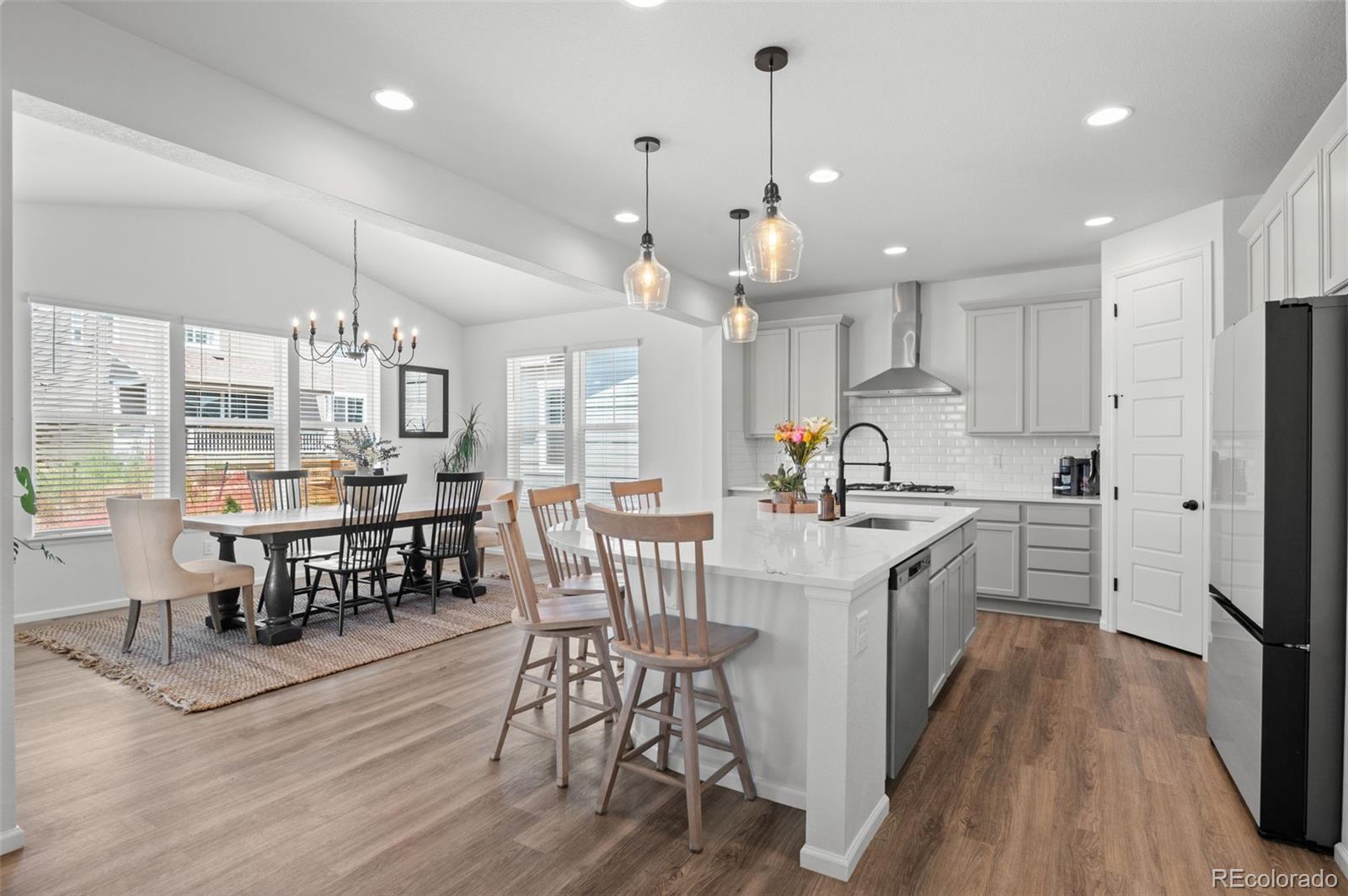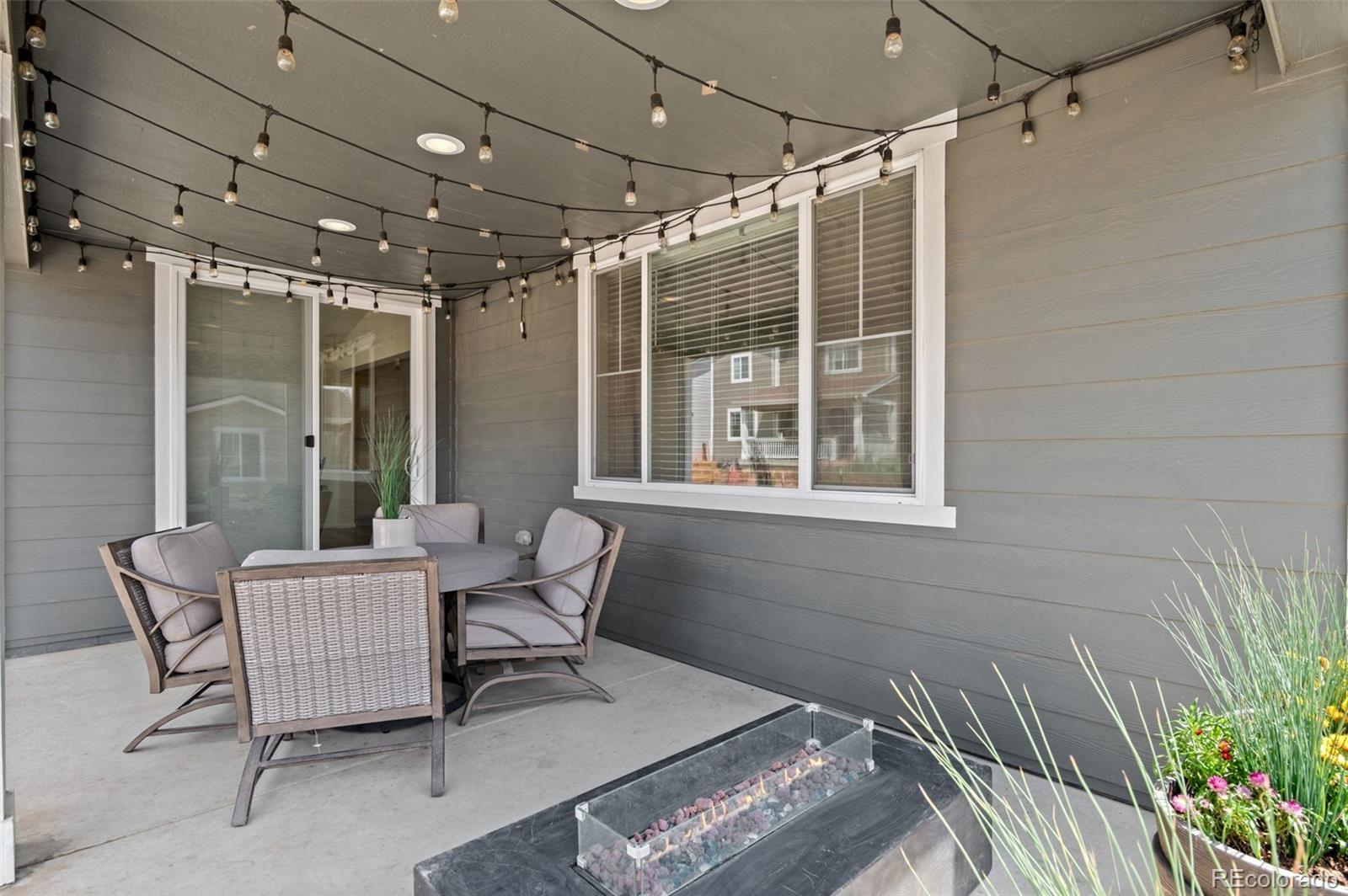 Why wait to build when you can have it all right now? This barely lived in, fully finished home in The Aurora Highlands delivers the best of new construction without the dust, delays, or added costs. Seller is offering a $15,000 concession that can be used toward closing costs or a temporary rate buy down, creating an estimated payment around $4,010 per month for qualified buyers. Built in 2023 and thoughtfully upgraded throughout, this 5 bedroom, 4 bath home offers modern design, flexible living spaces, and true move in ready comfort. From the moment you enter, you will notice the elevated finishes including luxury vinyl plank flooring, soaring ceilings, 8 foot doors, and designer lighting. The open concept layout flows effortlessly from the gourmet kitchen to the dining and great room, creating an ideal space for everyday living and entertaining. The kitchen is both beautiful and functional, featuring quartz countertops, soft close cabinetry, roll out shelves, a sleek hood vent, and GE stainless appliances including a 36 inch gas cooktop and wall oven. Step outside to the covered patio and extend your living space for summer dinners, morning coffee, or weekend gatherings. Upstairs, you will find four generously sized bedrooms, including a serene primary suite with a spa inspired bath and massive walk in closet. Convenient upstairs laundry adds everyday ease. The finished basement offers incredible versatility with a large rec room wired for surround sound, perfect for movie nights, game days, workouts, or a second living area, plus a private fifth bedroom and full bath ideal for guests or multi generational living. Additional highlights include quartz countertops in every bathroom, custom window coverings, ceiling fans in every room, and a gas line for your BBQ. Every detail has been thoughtfully completed so you can simply move in and start enjoying. Located in the vibrant Aurora Highlands community, this home offers space, style, and convenience.