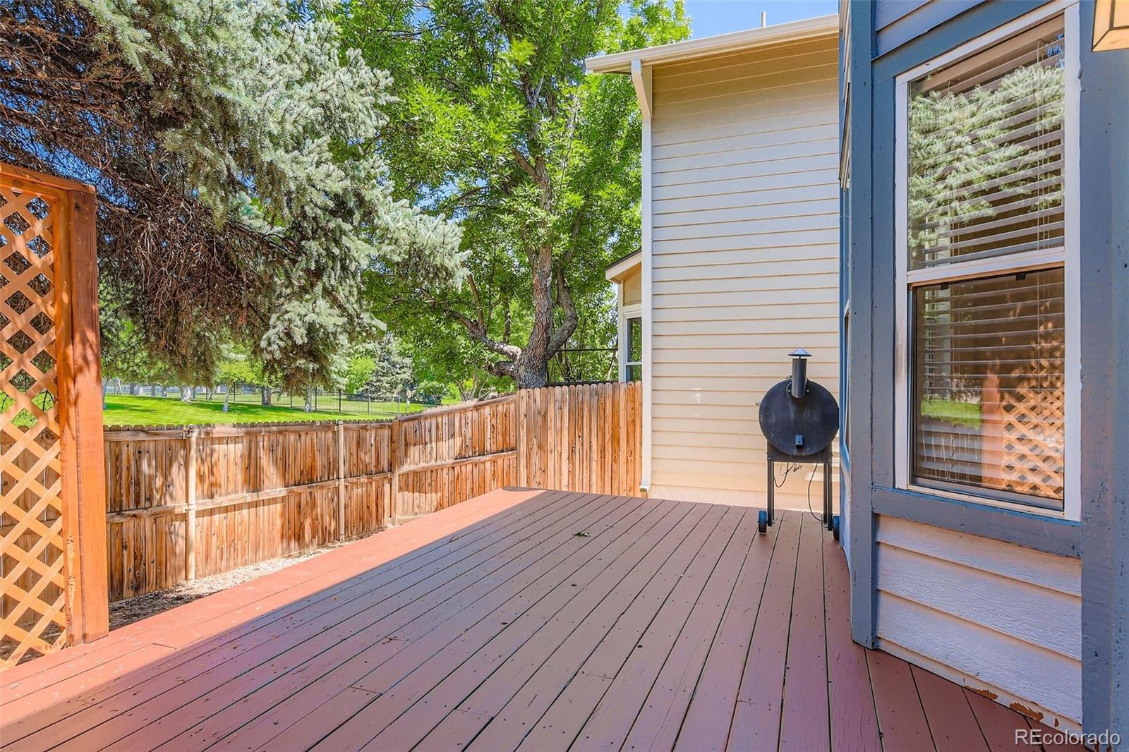 Great location! This fabulous 2-story is on a corner site and features 3 bedrooms (2 upper / 1 non-conforming basement), 3.5 baths, living room, kitchen, breakfast nook, finished basement (could be a bedroom/family/craft room, bath) and 2 car attached garage. Each bedroom boasts an en-suite bathroom. A 2-story ceiling in the living room and many windows throughout allow the natural light to cascade in - bright and cheerful. The finished basement is perfect for guests or that teen wanting their own space. A fenced yard area offers privacy to entertain on your private deck or grill and chill. Numerous, mature trees offer ample shade. Hardwood floors on the main level, tile in the baths and carpeting in the bedrooms. Beautiful slab granite counters and stainless steel appliances in the kitchen. Adjacent to Four Lakes open space/park/tennis courts. Close to dining, shopping, entertainment and other amenities. Don't miss your opportunity. Welcome Home!