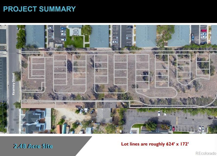 2.48ac, fully entitled for 44, 3-story, townhomes. Each has a separate entrance for auxiliary studio. (Potential for 88 rental units). Sale includes entitlements, feasibility studies, and building permits. Close proximity to Dick's Sporting Goods Park and Rocky Mountain Arsenal National Wildlife Refuge. 97,400 +/- livable square feet. Flat topography. Quick access to multiple highways. Reports available upon request: • Environmental Phase I • Geotech/soils • Approved PUD • Final Plat Approved and Recorded • Master Models for buildings 1-3 are fully compliant with newest vertical code requirements • Master Models for buildings 4-10 are duplicable, allowing for an efficient and fast construction rollout as needed • Permits, Drawings, Submittals, Approvals, Renderings • 2025 Appraisals • Water Information • Parking Information • Rental/Sales Analysis The Seller offers the option to acquire 17 of the 44 parcels for $2.0 million. Buyers seeking full project control may acquire all 44 parcels, either through a phased two-step acquisition (higher price) or in a single transaction at $4.0 million, subject to pricing adjustments in the event of multiple offers or a competitive "bidding" process. There should be no requirement or obligation for a buyer to acquire all 44 parcels if they don't want. Full offering memorandum in Supplements. Project video: https://www.youtube.com/watch?v=g10oE6EwjGI Please note that the project address is also known as 6320 Kearney Street, Commerce City, CO