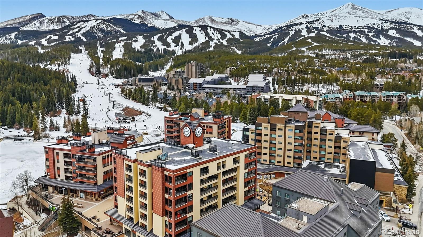 Location, location, location! Welcome to your Breckenridge mountain retreat with true ski-in/ski-out access and no short-term rental restrictions - a rare opportunity in the heart of town. Just steps from the Quicksilver Lift and perfectly positioned at the top of Main Street, this light-filled corner unit offers exceptional mountain convenience. Enjoy a cozy fireplace, private balcony overlooking the Blue River, and immediate access to Breckenridge's dining, shopping, and nightlife. Ideal as a personal getaway or income-producing investment, this property allows short-term rentals with potential to gross $60K annually. Resort-style amenities include pool, hot tubs, fitness center, steam room, sauna, media and game rooms. An unbeatable year-round location in the heart of Breckenridge.