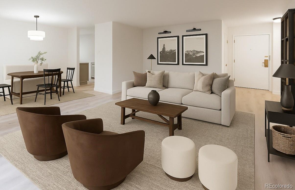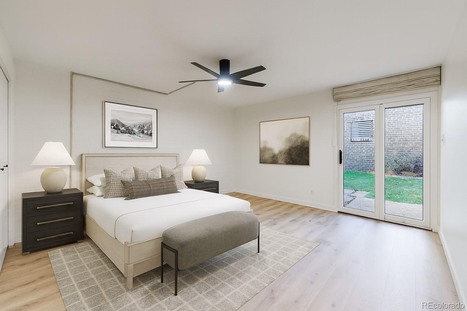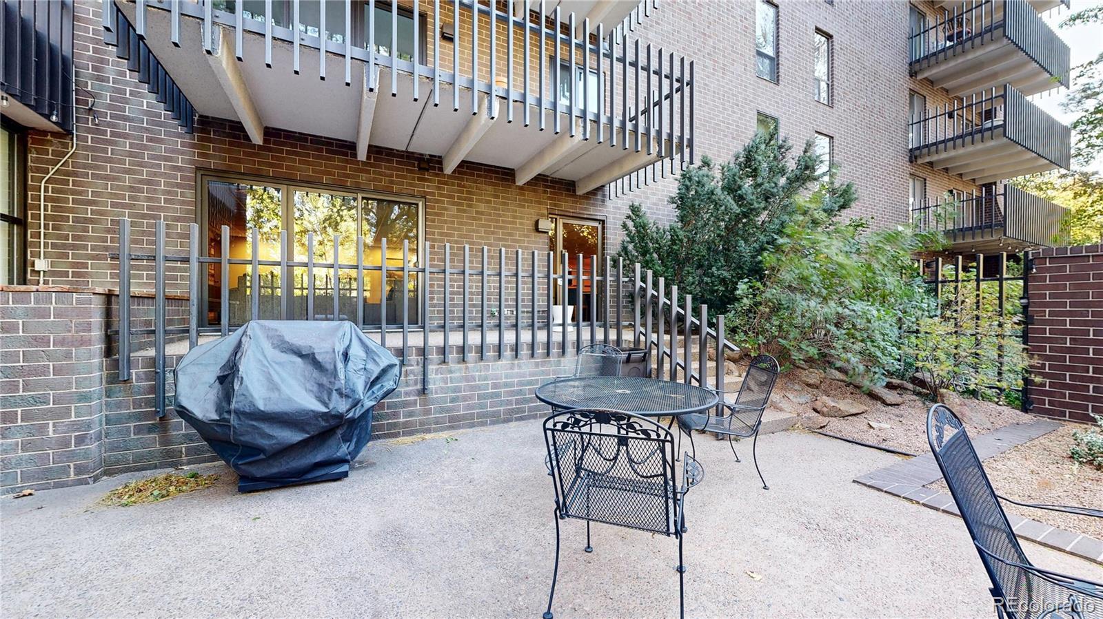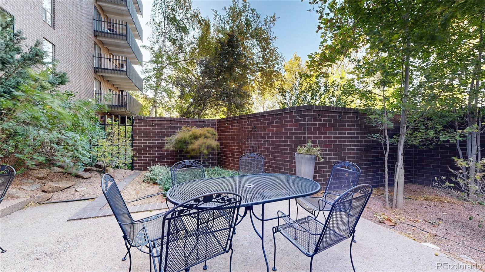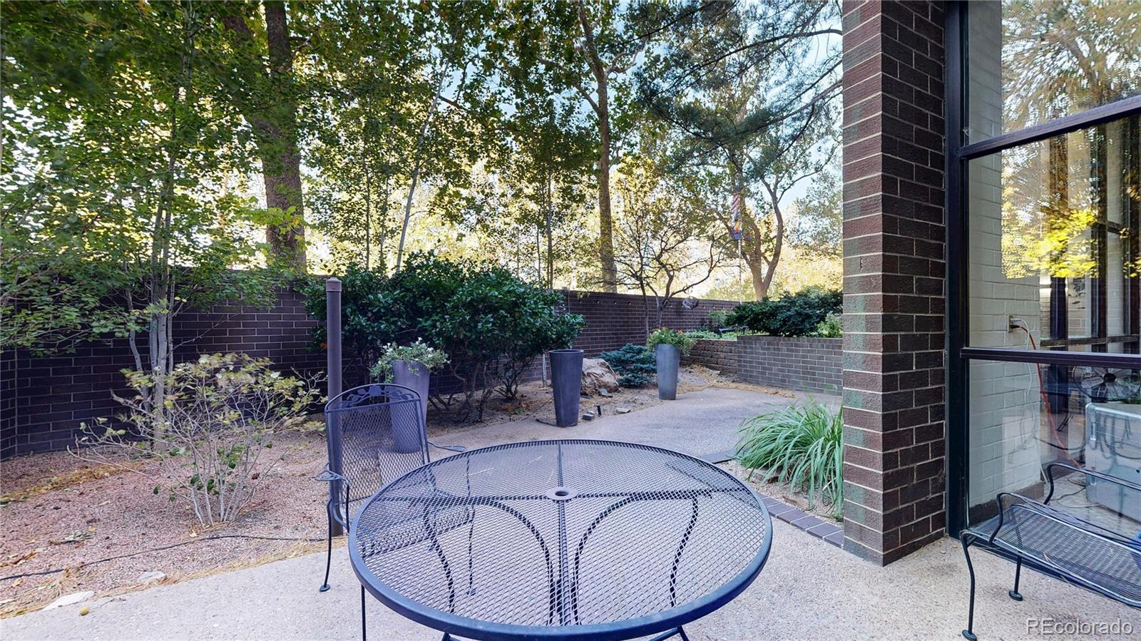 Welcome to this fully remodeled and ultra rare ground-level condo, perfectly situated in Denver’s Washington Park neighborhood — just steps from local coffee shops, restaurants, and boutiques. This turnkey home blends modern upgrades with timeless charm and provides a flexible floorplan ideal for comfortable city living or investment. Step inside to brand new light oak laminate vinyl plank flooring and a spacious family room that opens to a private patio and the communal courtyard—ideal for entertaining or relaxing outdoors. The dining area features a stunning new chandelier and a classic painted brick accent wall that adds warmth and character. The updated kitchen offers generous counter space, quartz countertops, new stainless steel appliances, a smart fridge with touchscreen, and a charming brick wall nook—perfect for a coffee bar or prep station. The large primary bedroom also has direct patio access and courtyard views. The bathroom is thoughtfully updated with a stylish vanity, white penny tile shower pan, and designer floor-to-ceiling vertical tile for a spa-like feel. Enjoy excellent building amenities including an indoor pool, rec room, study/work area, pool table, ping pong, and dedicated concierge with secure entry. Residents enjoy one of Denver's most iconic green spaces as a daily luxury plus centrally located near downtown Denver, DTC, local universities, and public transportation.