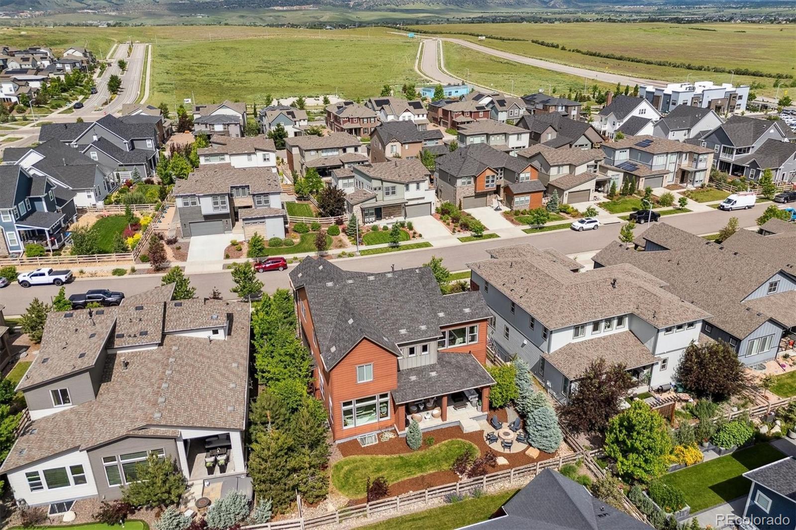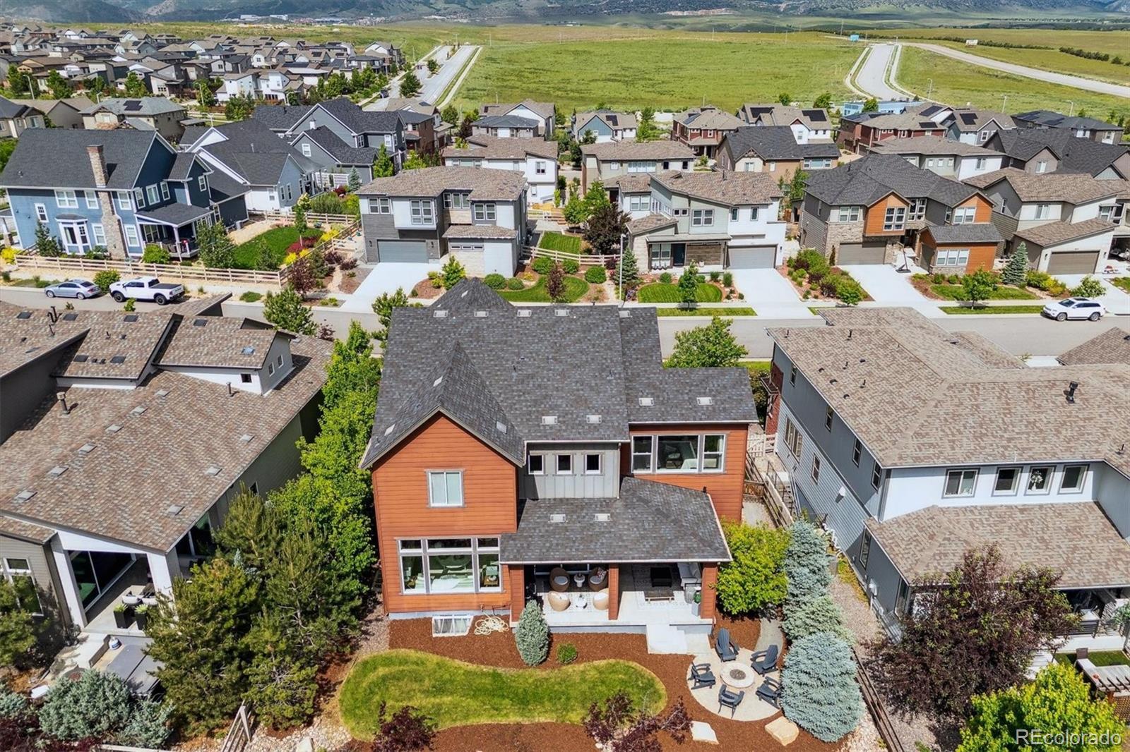 Rare Former Popular Wonderland "Oriole" Model Home. Step into this 5 bed, 5 bath home with a 3 car tandem garage— where luxury meets lifestyle in the heart of Sterling Ranch. With almost 4800 finished sq. feet, and over $300K in upgrades, this striking 5-bedroom home boasts 3-level, grand entry staircase with mountain views through a wall of windows, 12'-14’ ceilings, soaring windows, 8' doors, dark wood flooring, custom barn doors, expansive walls of glass (over 35' of sliding glass) that connect indoor and outdoor living, and a gourmet kitchen with granite counter tops, stainless appliances, sleek white cabinets, large pantry and center island, designed to entertain. The private owner’s suite on its own wing, features a HUGE bathroom with a freestanding tub, oversized 100' sq. foot shower, and custom closet the size of most bedrooms. Additionally on the upper level, a dedicated loft/play area, 3 additional bedrooms with walk-in closets, 3 full baths and laundry room with mountain views. The newly finished basement features a huge living area, wet bar, additional bedroom and a 3/4 bath. This great home also has 2 new A/C Units, and a newer roof. Open all the sliding glass to enjoy those fine Colorado days and evenings in your professionally landscaped, fenced yard with a gas fire pit. Located in the Douglas County School district, this community also features, coffee shop, brewery, trails, parks, community events, a club house and pool all within walking distance. Do NOT Miss this great home schedule your showings today.