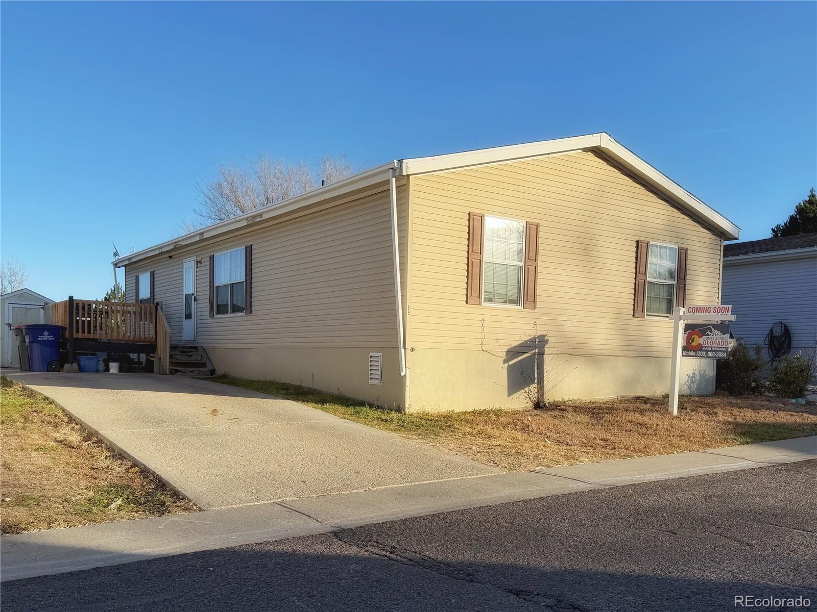 Showings start 11/26/25. SELLER OFFERING 10K TO BE USED TOWARD LOT PREMIUM PAID FOR NEW BUYER OR CLOSING COSTS Welcome to this spacious double-wide, 4-bedroom, 2-bath home in Redwood Estates. Offering over 1,400 sq ft of living space, this home features an open layout, a formal dining area, and a large primary bedroom with private bath. Enjoy a front deck for relaxing or visiting with company, plus access to community amenities including a clubhouse, swimming pool, basketball court, soccer field, dog park, and playground. Conveniently located near Water World, shopping, restaurants, and quick highway access for easy commutes to Denver and surrounding areas. Buyer must apply and be approved by the community for lot lease transfer prior to closing. Contact the Redwood Estates Office at (303) 427-1761 or visit www.bayshorehomesales.com/communities/redwoodestates for approval information. Financing options are available through Vanderbilt Mortgage, ANB Bank, 21st Mortgage, Credit Human, and Triad Financial Services. Sold as-is and priced to sell. Showings begin November 20, 2025.