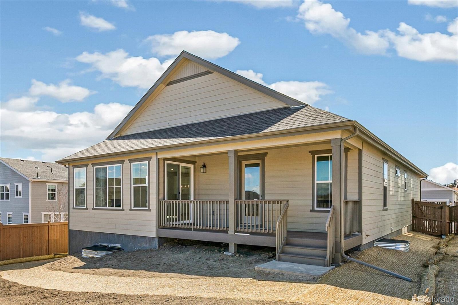 This beautiful one story home has everything you will love about Terrain Oak Valley in Castle Rock. The full finished basement has an large recreation room with a bedroom and bathroom. Inside, discover an open floor plan with 9ftceilings. This spacious great room for friends and family gatherings as you are able to walk directly out to the covered deck which is an extension of living space. For privacy to work, read, or relax enjoy the office space with beautiful double doors. The stylish kitchen boasts of a large island, 42-in. Timberlake Barnett standard overlay Linen stained upper cabinets, Soapstone Metropolis quartz counter tops and stainless steel GE appliances, including a gas range and refrigerator. On the main floor the primary suite showcases large walk-in closet, and a connecting spacious primary bathroom with a large linen closet,oversized dual sink counter, and a sit down shower. Front landscaping is included. Welcome home as it is both nature and city, work and play, adventure, and leisure. Nature is right out your door. You can enjoy walking and hiking trails that wind through the entire community. If you just want to sit and relax, within walking distance is the Swim Club/pool. The Swim Club (Clubhouse ) is a warm gathering space, big screen TV, and fireplace. Terrain also offers the Dog Bone Park where you can unleash your 4-legged family members and let them run free. Also enjoy Wrangler Park with tennis courts, a picnic pavilion, playgrounds, and play fields. Centrally located on the plateau is Ravenwood Park with spectacular views, playground, and a long in-ground slide. 5k towards financing. Team Lassen represents builder/seller as a Transaction Broker.