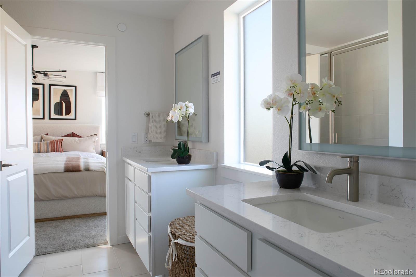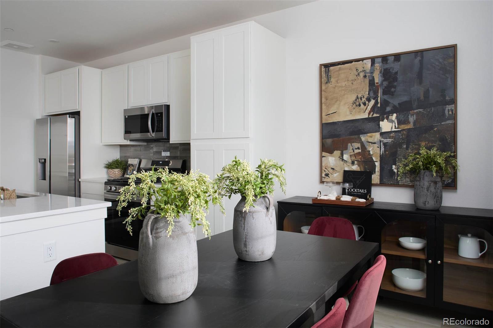 New construction townhome by Lokal Homes in Lone Tree’s highly sought-after Lyric at RidgeGate, a vibrant master-planned community designed for modern, walkable living. Residents enjoy access to Lyric’s parks, trails, gathering spaces, and nearby dining and shopping, all just minutes from I-25 and Park Meadows, making commuting and everyday errands effortless. This move-in-ready 2-bedroom, 2.5-bath townhome blends smart design with contemporary finishes and low-maintenance convenience. The open-concept main level features 9-foot ceilings and a light-filled great room that flows seamlessly into a stylish kitchen with quartz countertops, a large center island, Samsung appliances, and Kohler fixtures—ideal for entertaining or relaxed daily living. Central A/C and energy-efficient construction provide year-round comfort. Upstairs, two spacious bedroom suites offer privacy and flexibility. The primary suite includes dual vanities and a generous walk-in closet, while the secondary suite features its own full bath and walk-in closet—perfect for guests, roommates, or a dedicated home office. An oversized two-car garage adds valuable storage and convenience. Step outside to your private deck to enjoy Colorado sunshine, or explore the surrounding Lyric community with its thoughtfully planned green spaces and pedestrian-friendly design. With quick access to major highways, premier retail at Park Meadows, and Lone Tree’s growing mix of restaurants and amenities, this home delivers an exceptional blend of location, lifestyle, and modern comfort. Ask about special below market financing available! Photos represent a model home with the same floor plan. Finishes and views may vary. Decorative elements not included.