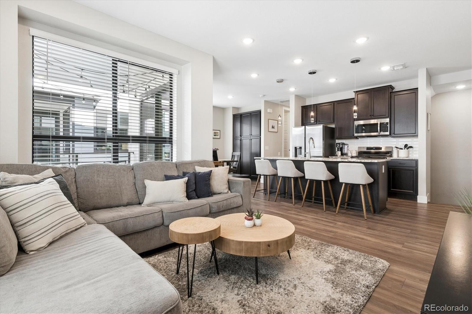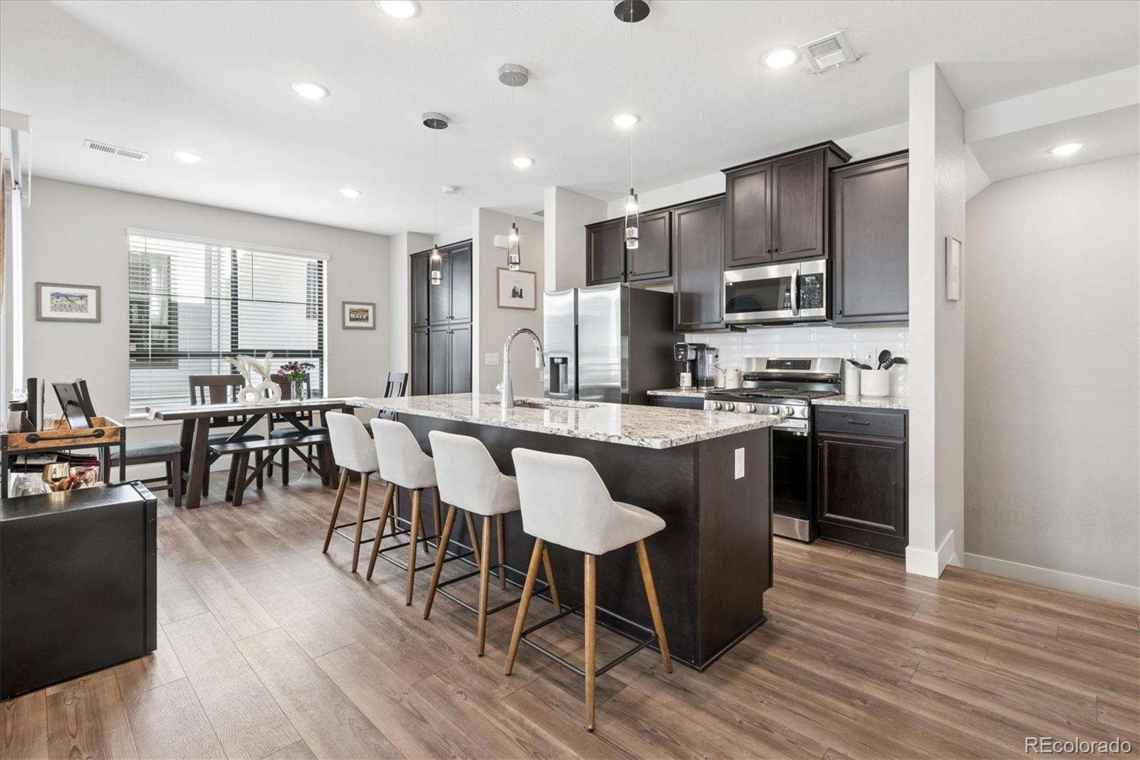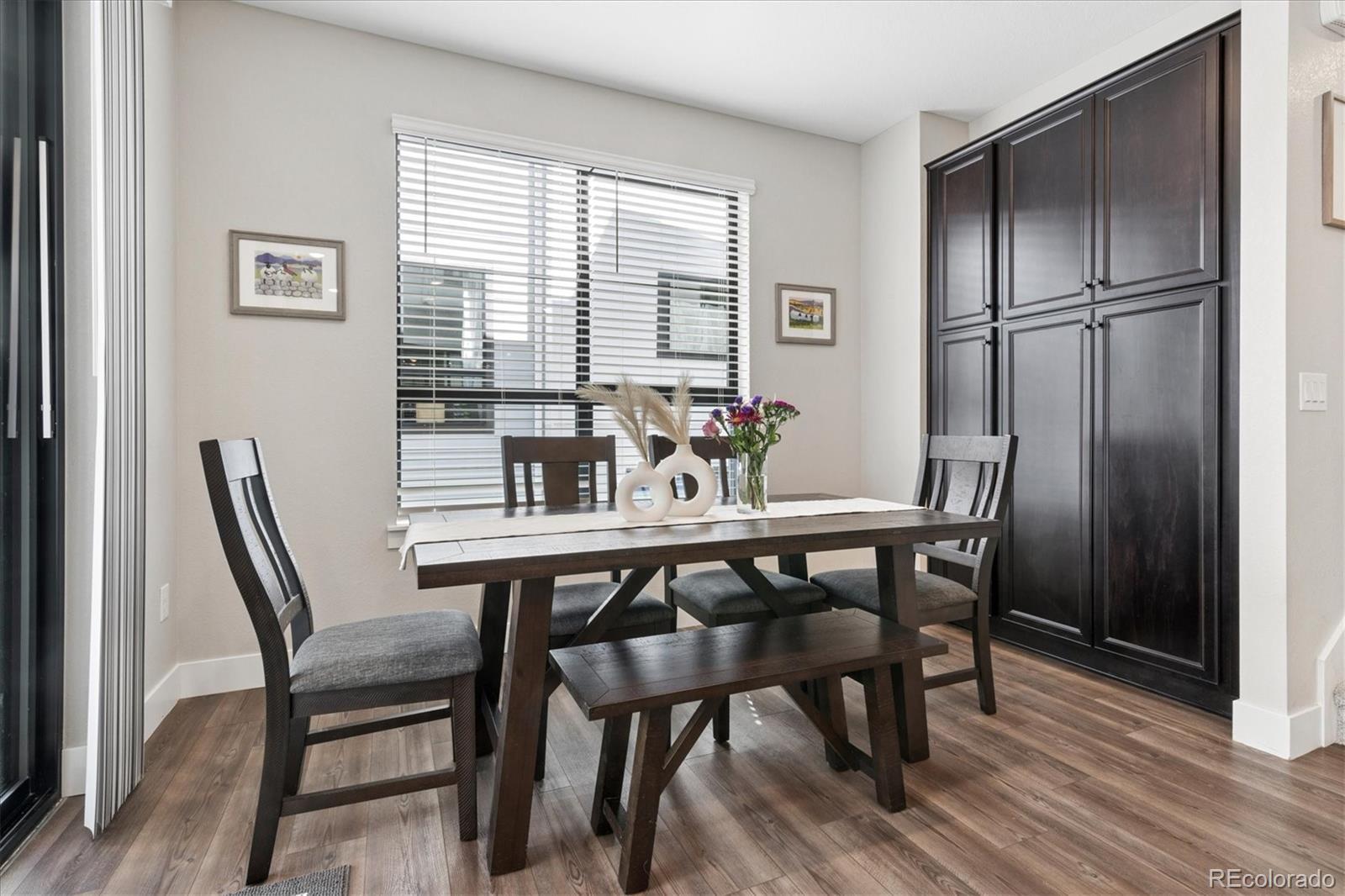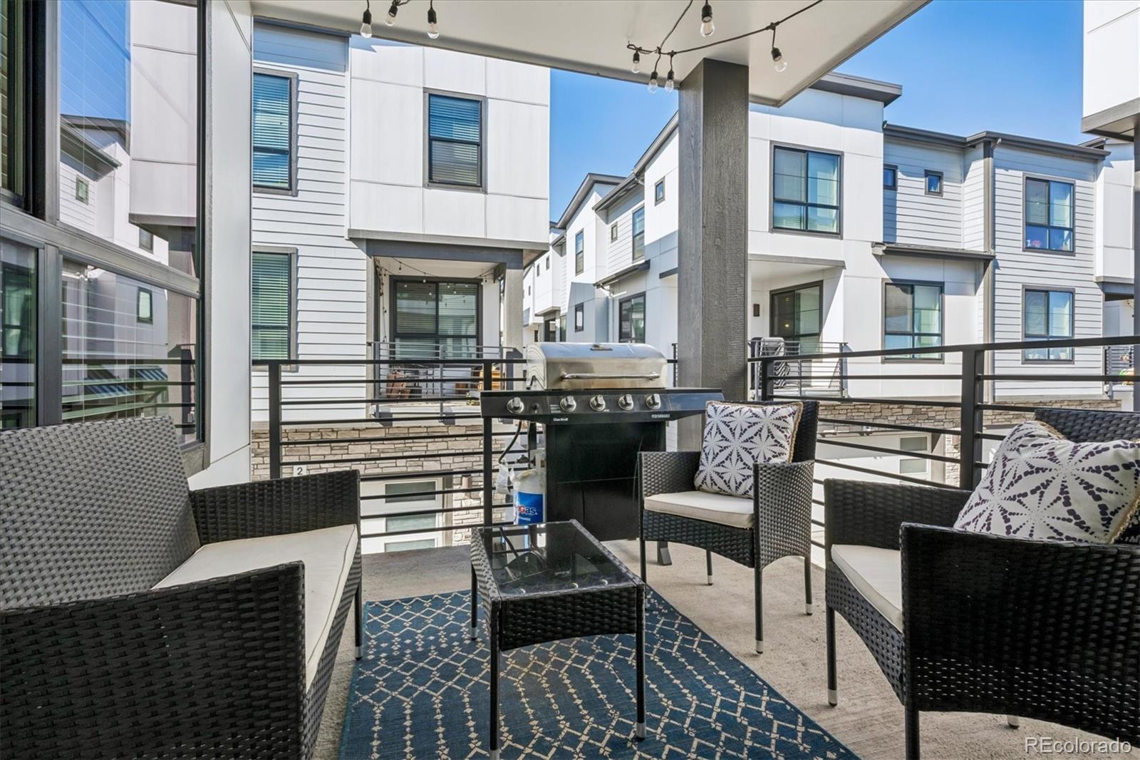 Better-than-new and beautifully upgraded townhome in the highly desirable Virginia Village neighborhood! This three-story floorplan offers 1,291 square feet of modern, low-maintenance living with thoughtful design and premium finishes. Flooded with natural light, step inside to the main level that features a bright, open-concept great room that flows seamlessly to a spacious dining area and contemporary kitchen with an oversized center island, stainless steel appliances, and designer finishes. Sliding glass doors extend the living space outdoors to a generous patio, perfect for relaxing or entertaining. Upstairs, enjoy centrally located laundry access, a secondary bedroom with spacious bath, and a luxurious primary suite with walk-in closet, dual vanities, and walk-in shower. Highlights inside the home include upgraded modern finishes, including window treatments featured in every room, updated ceiling fans, upgraded stair railing and vinyl plank floor. Located within The Hub at Virginia Village, this home offers urban convenience with quick access to Cherry Creek, downtown Denver, and top-tier shopping, dining, and recreation. Community amenities include a dog walking trail, BBQ picnic park, and bocce ball court. With move-in readiness, modern design, and select upgrades, this home blends comfort, style, and prime location perfectly. Don't miss the opportunity to call this home yours!