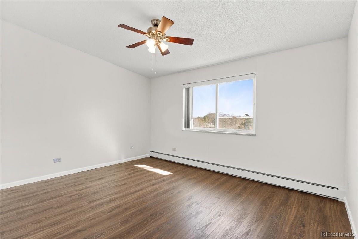Welcome to Windsor Gardens — Colorado's largest 55+ active adult community! This stunning top-floor end unit offers breathtaking golf course views, abundant natural light, and a thoughtfully updated interior featuring a refreshed kitchen, new laminate flooring, updated doors, and fresh paint throughout. With 2 bedrooms and 1 bath, this home is move-in ready and waiting for you. Here's what makes Windsor Gardens truly special — your HOA dues cover your heat, water, sewer, trash, building maintenance, and 24/7 community responders. Enjoy resort-style amenities including indoor/outdoor pools, hot tub, sauna, fitness center, billiards, library, craft rooms, and a 9-hole par 3 golf course. Dine at the onsite restaurant, explore the private walking trail along the Highline Canal, or join one of the many clubs and events offered every month. RTD bus stops throughout the community make getting around effortless. This is more than a condo — it's a lifestyle."