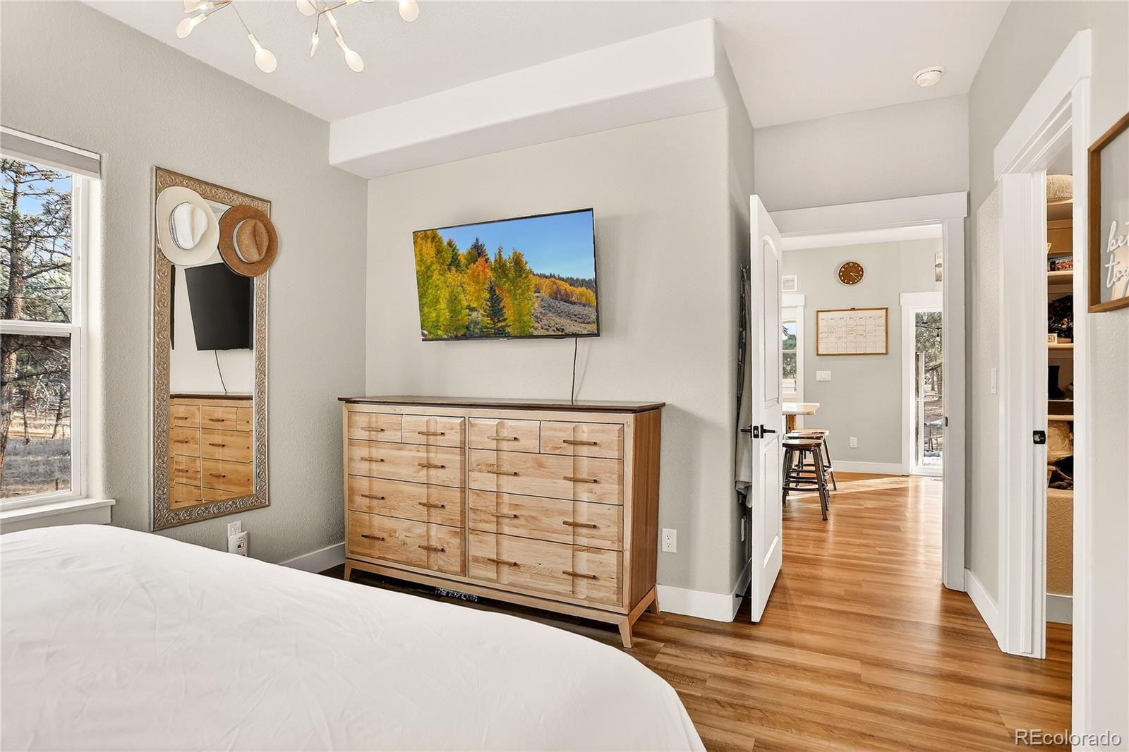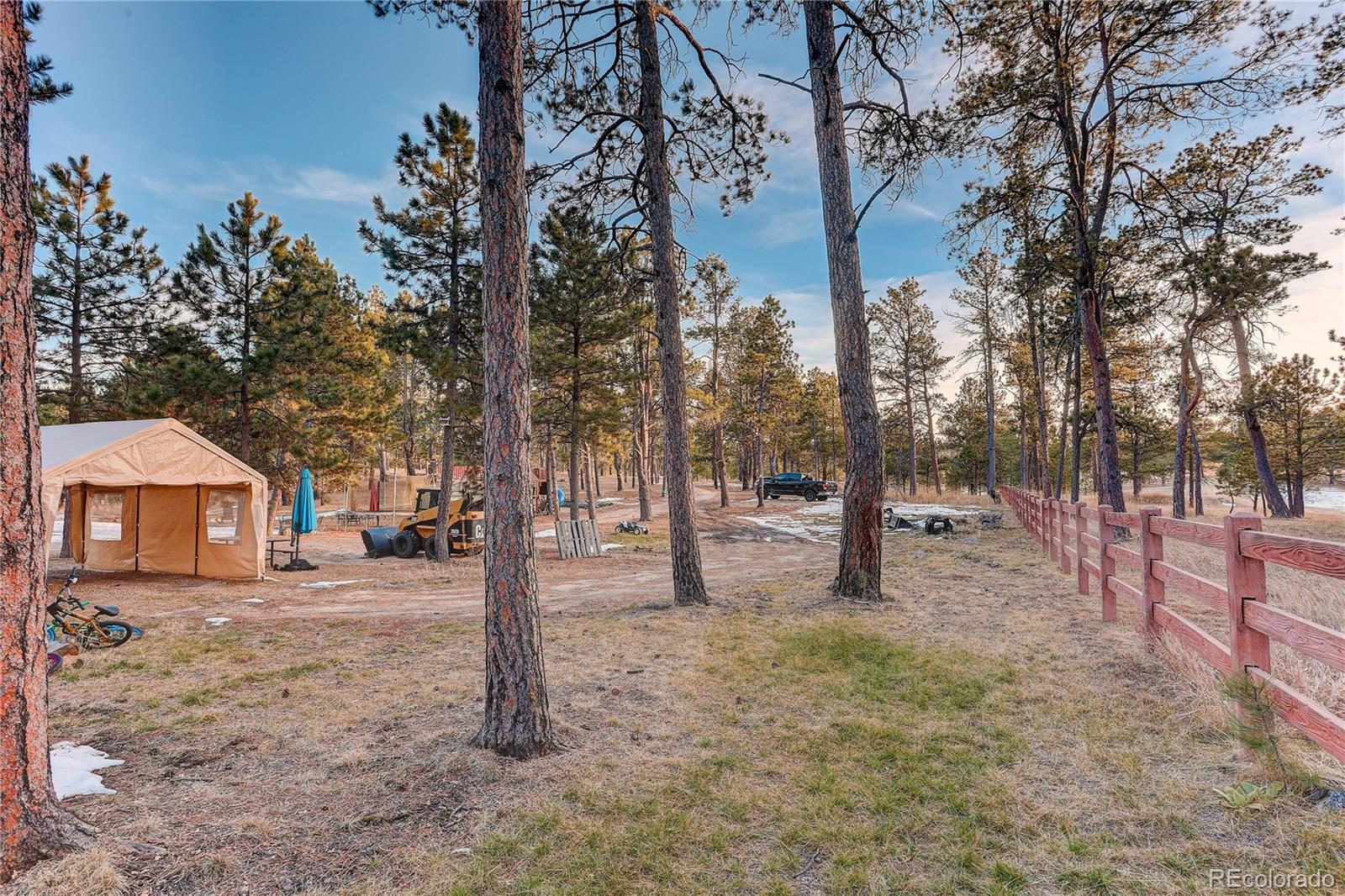 If your idea of home involves wildlife sightings, seclusion among the pines, and oversized living spaces, you’ve found the one. This 2019 3-bedroom, 2.5-bathroom custom home is situated in the peace and quiet of 8 acres of natural privacy, surrounded by thriving ponderosa pines. You can even use your VA eligibility to assume this attractive VA loan. Open-concept living areas leave the home feeling bright, with a kitchen that joins with the dining and family room (complete with a gas fireplace) for seamless hosting. The kitchen’s Samsung appliances and gas range allow for stress-free cooking. Find ease in your everyday routine with main-level living: the primary suite is located on the main floor with an ensuite bathroom flaunting modern fixtures. The exterior features of this home equip you for any outdoor hobby or homesteading goal you could dream of! Your outdoor oasis includes a play area, a shooting range, and an enclosure ideal for hobby farming. A fully-enclosed greenhouse turns your slice of Colorado into a year-round gardener’s paradise. The fenced chicken run with built-in roosts, electricity, and an automated coop door allows you to enjoy fresh eggs anytime. The large dog run provides a safe play space for your four-legged family members. Complete your projects in the 120 square-foot shed, complete with electricity. You’ll avoid citywide power and water disruptions since this home draws from a high-yield private well with a backup manual pump. The property’s well-maintained septic system has already been pumped and certified by the county. Your A/C, heating, cooking, and hot water needs are powered by natural gas service to keep costs low. Plus, this property comes complete with an RV electrical hookup with up to 50 amps. We don’t see properties like this often — come see this slice of Colorado paradise today!